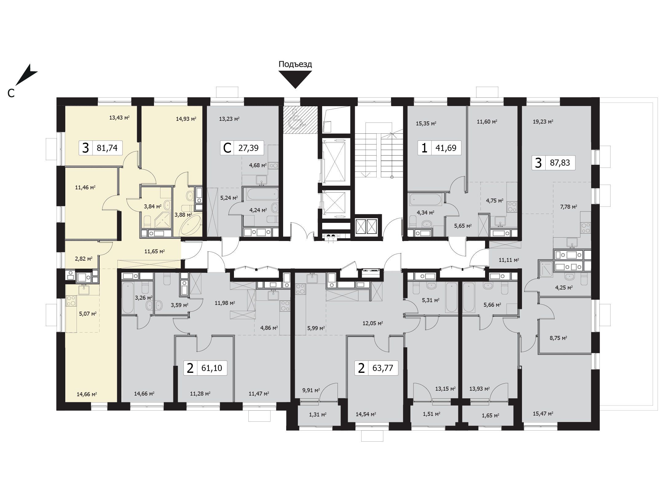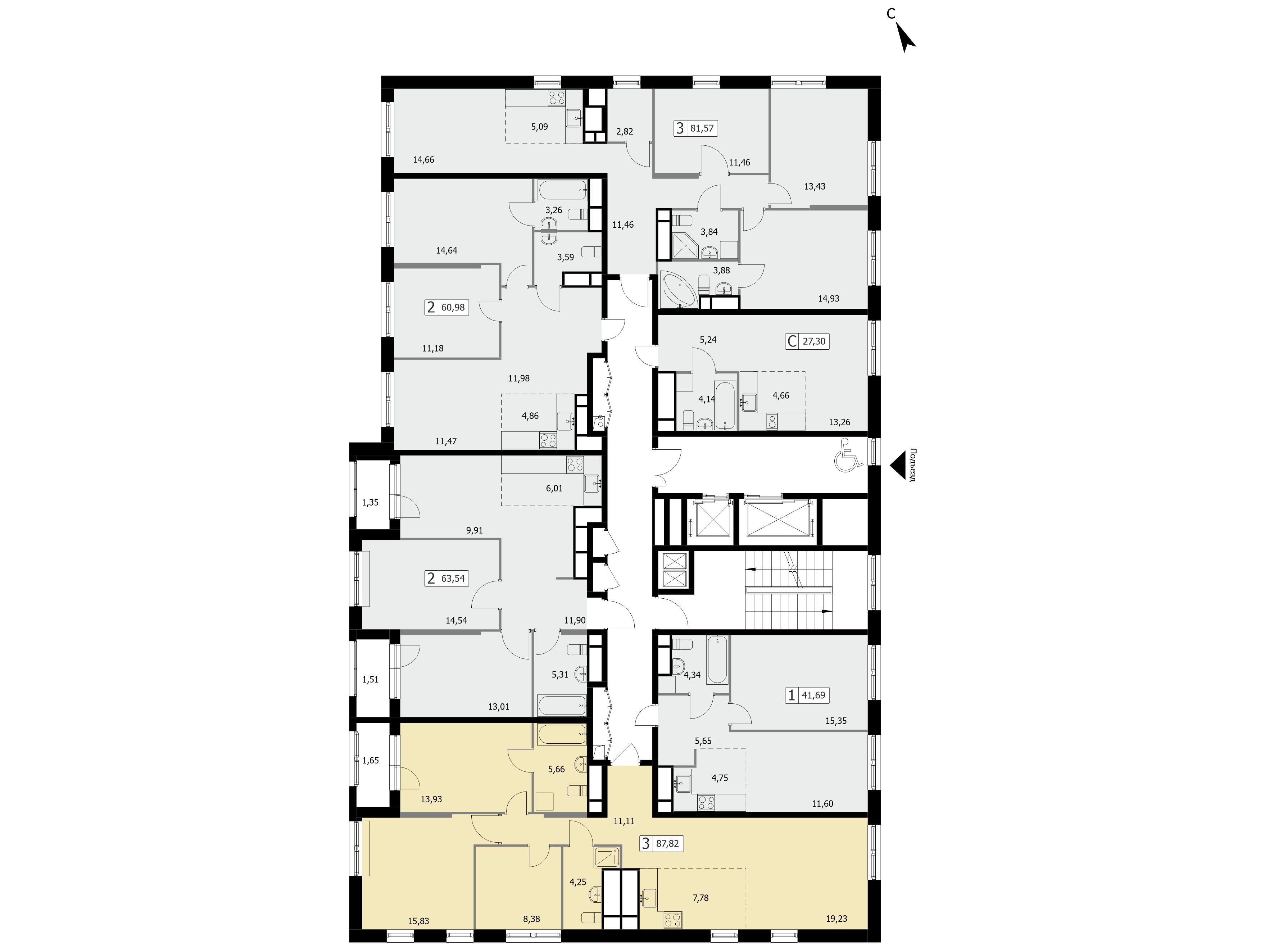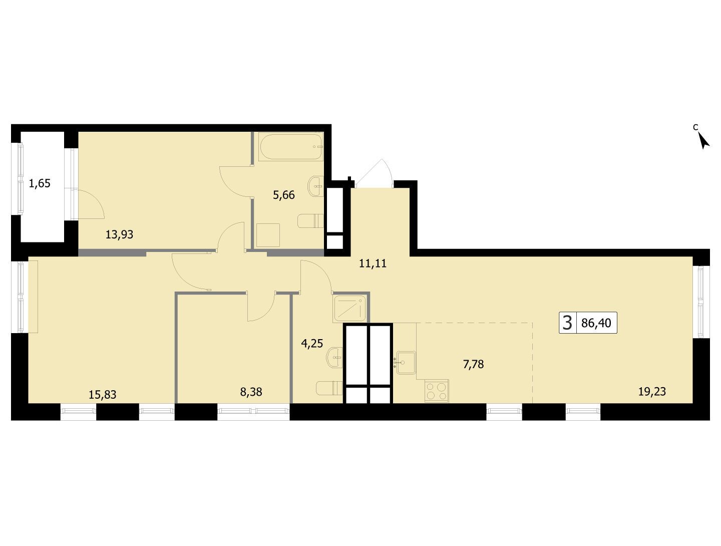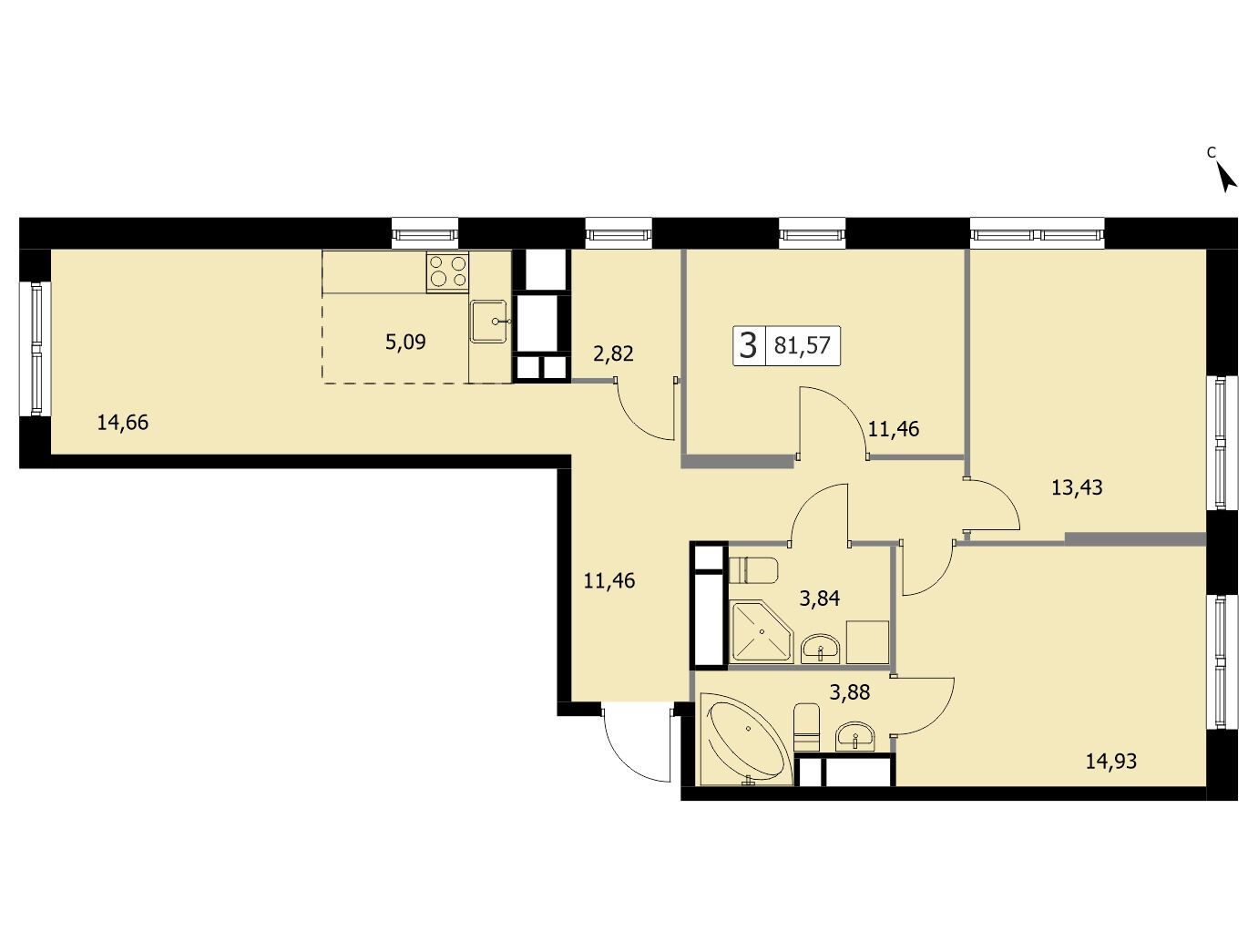 3-комнатная квартира, 82.50 м², 17 из 19 эт.