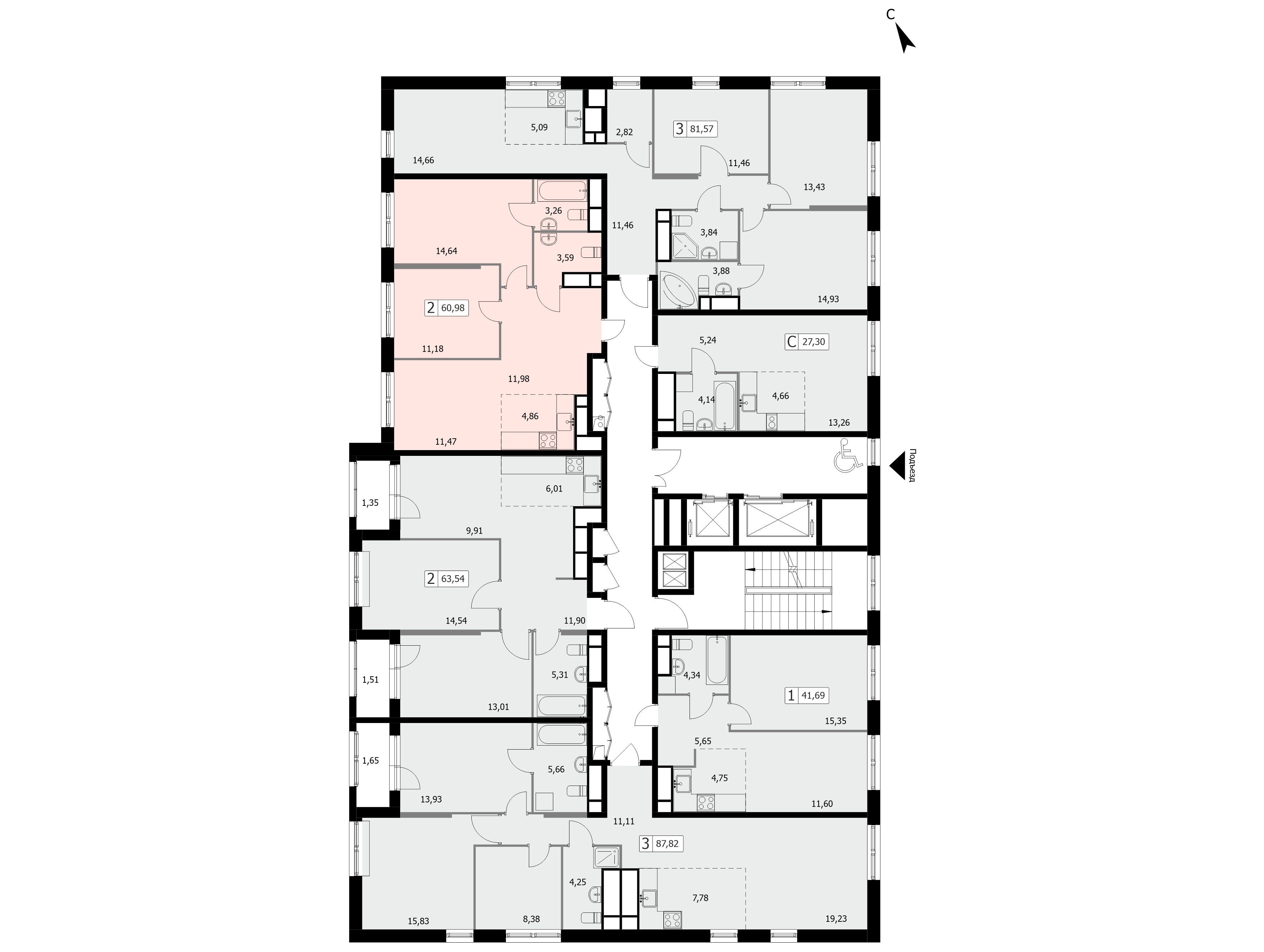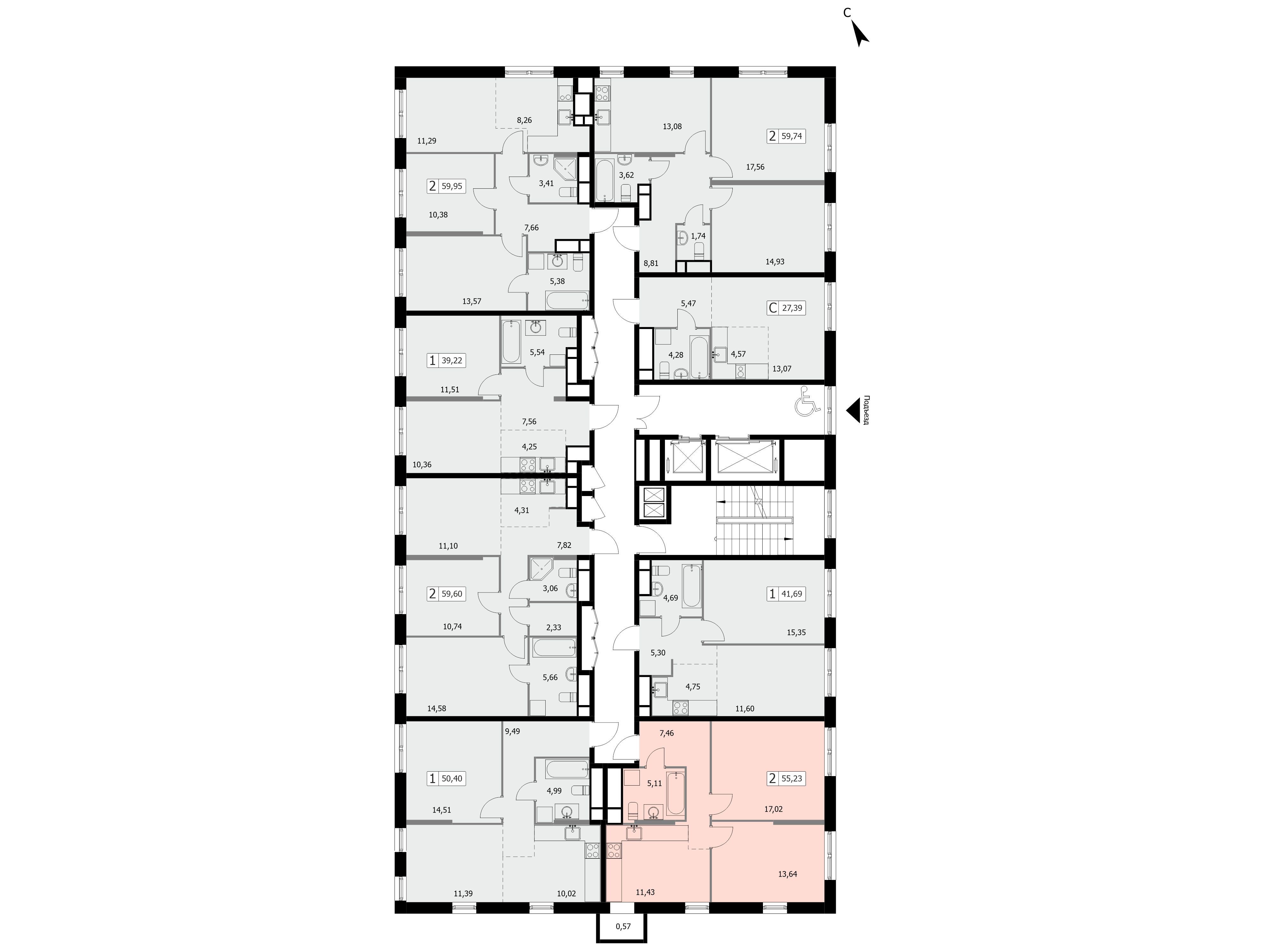 2-комнатная квартира, 60.50 м², 16 из 19 эт.