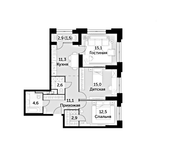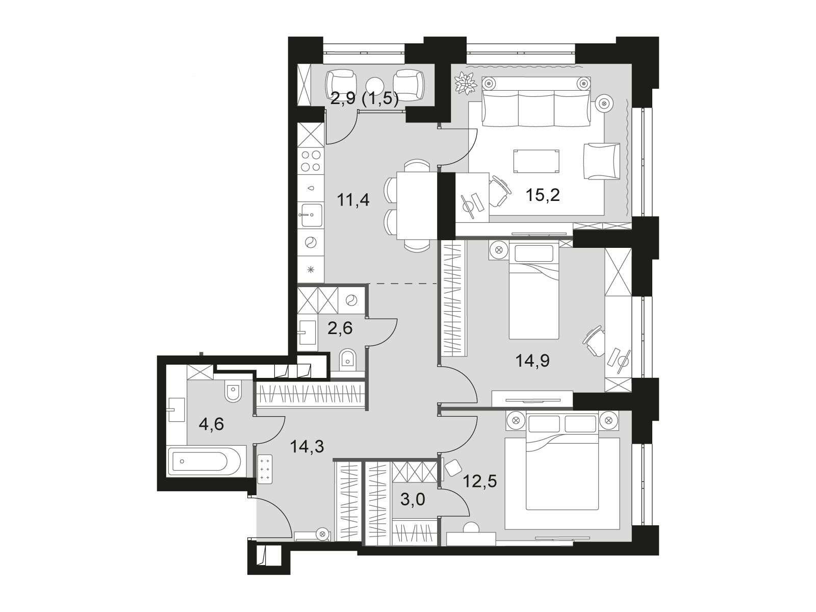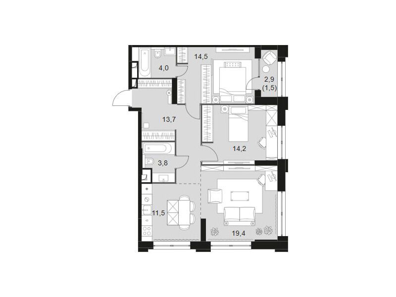 3-комнатная квартира, 81.60 м², 12 из 43 эт.