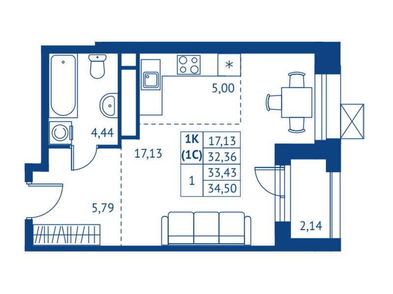 Студия, 31.50 м²