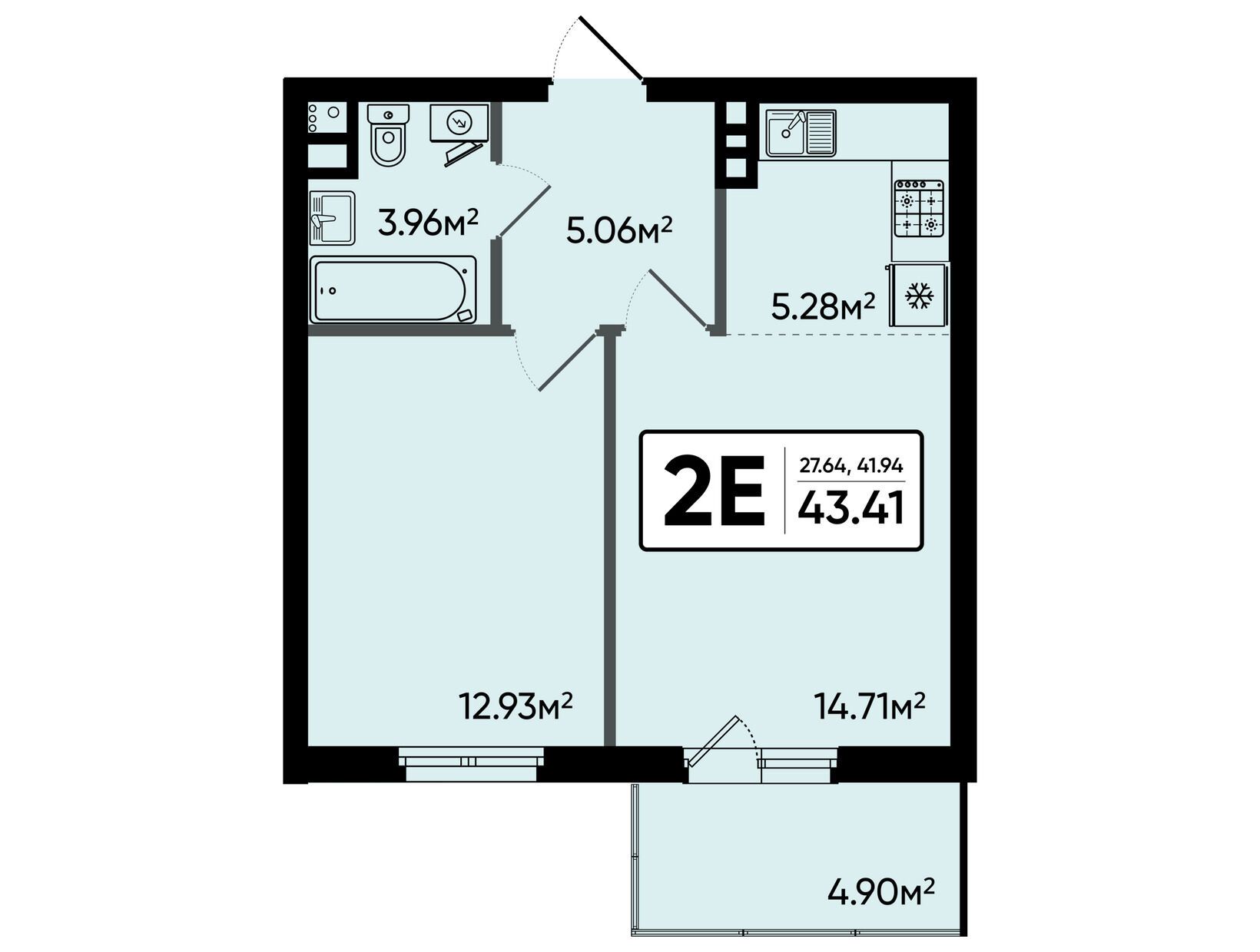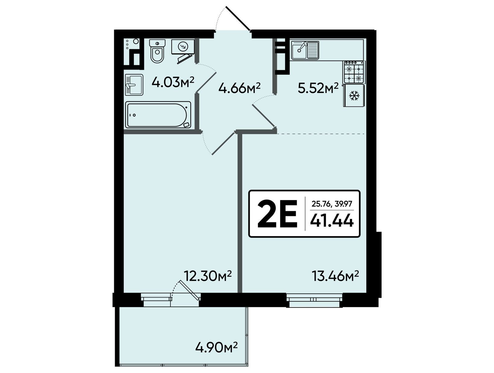 2-комн. квартира, 41.44 м²