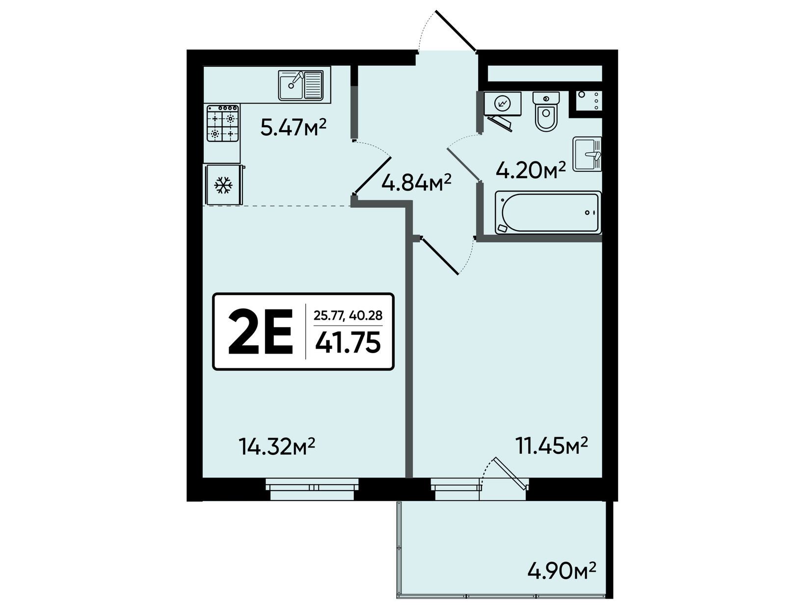 2-комн. квартира, 41.75 м²