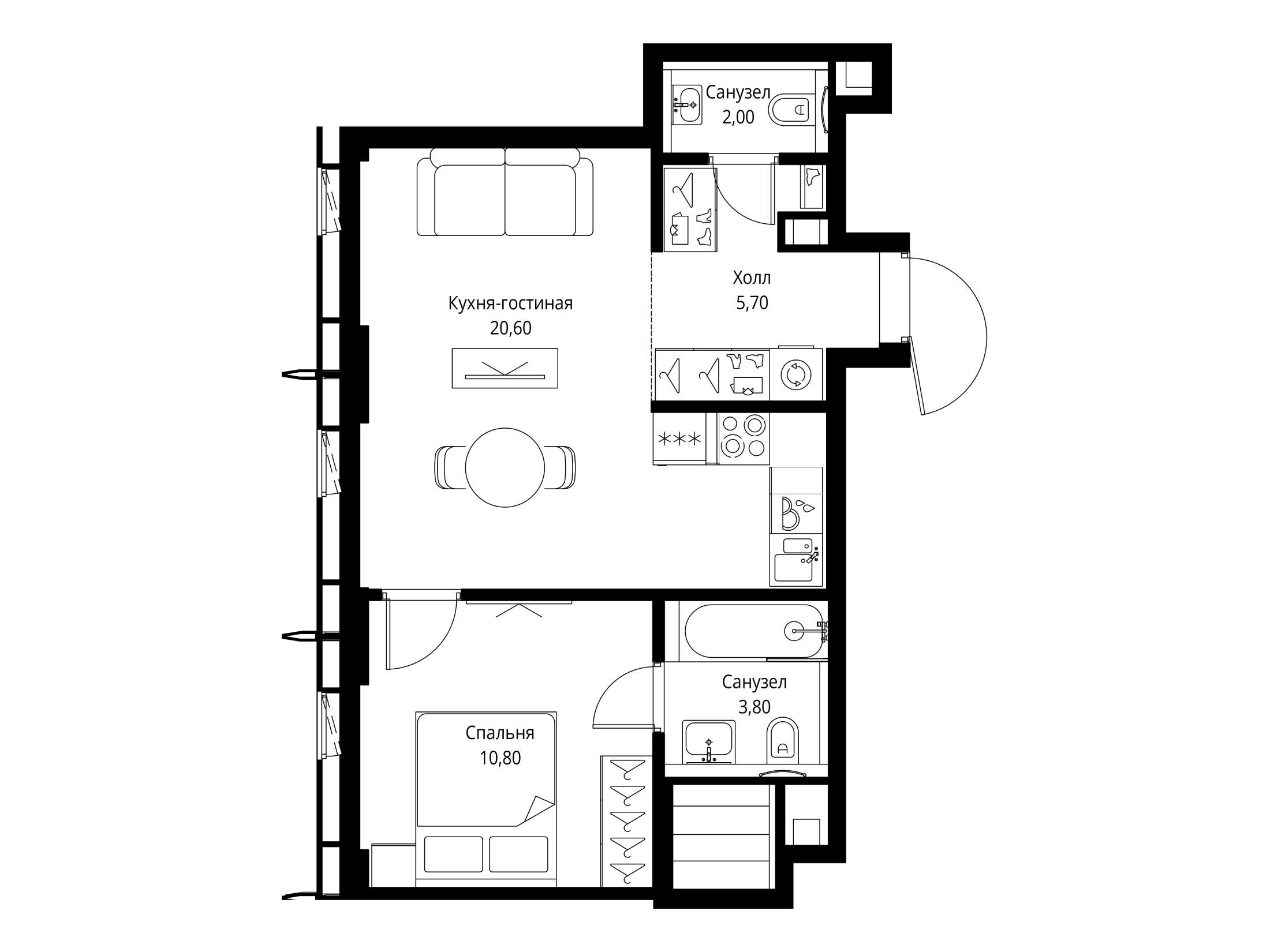 1-комнатная квартира, 49.90 м², 54 из 59 эт.