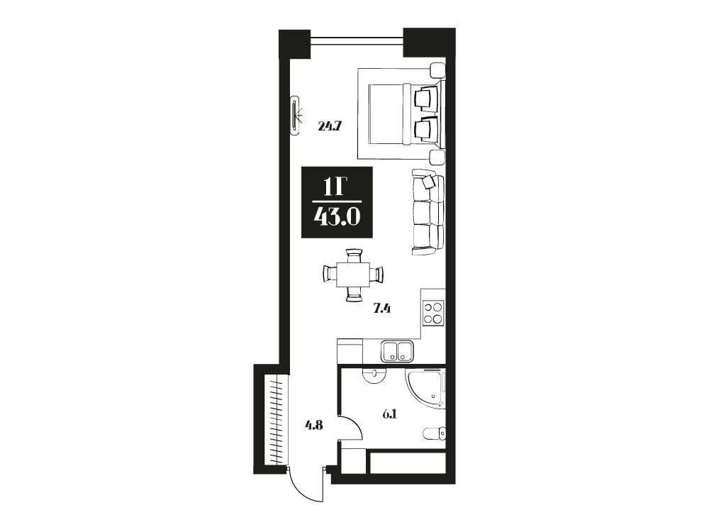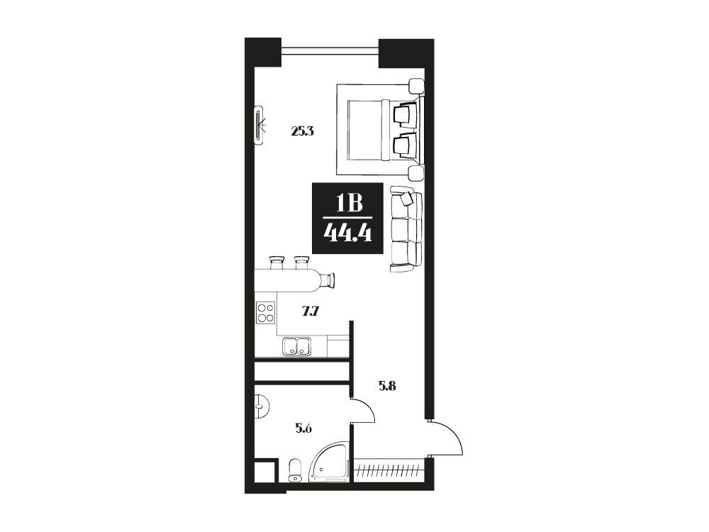 Студия, 44.50 м², 5 из 16 эт.