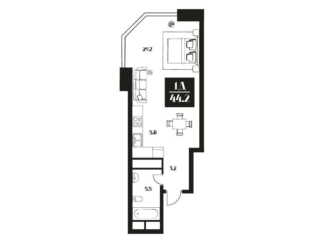 Студия, 43.00 м², 12 из 16 эт.