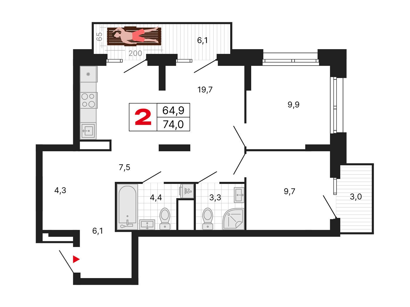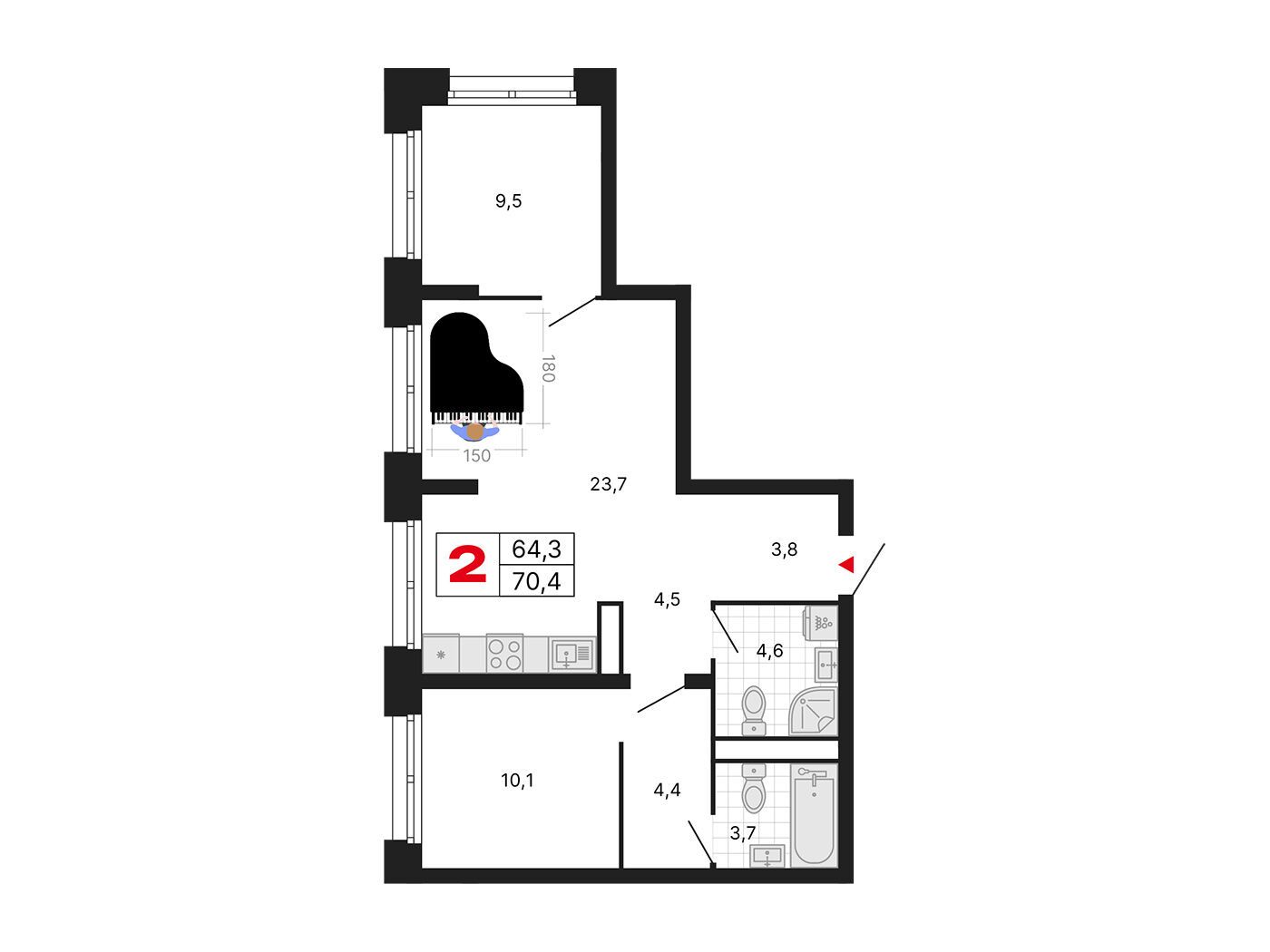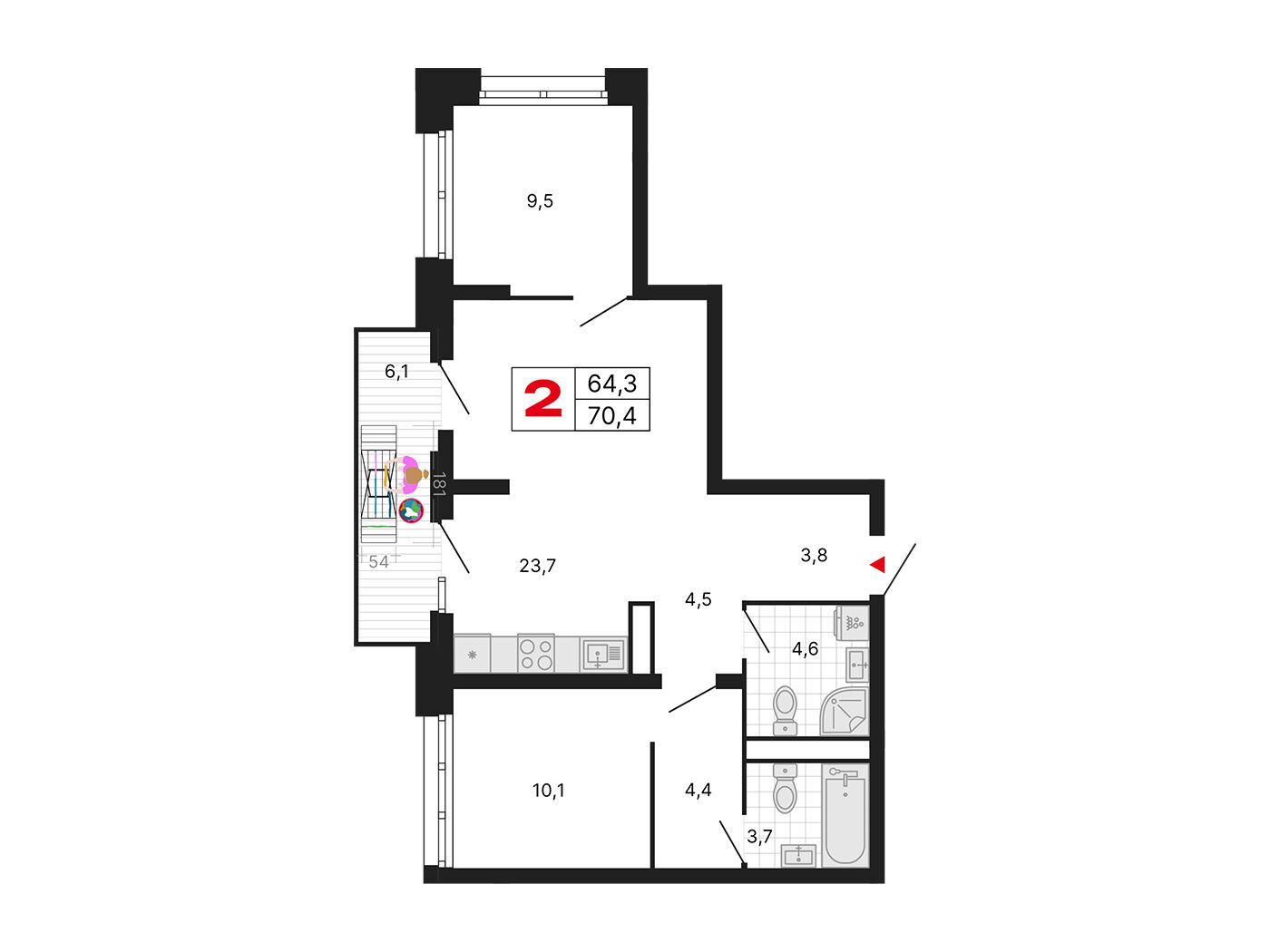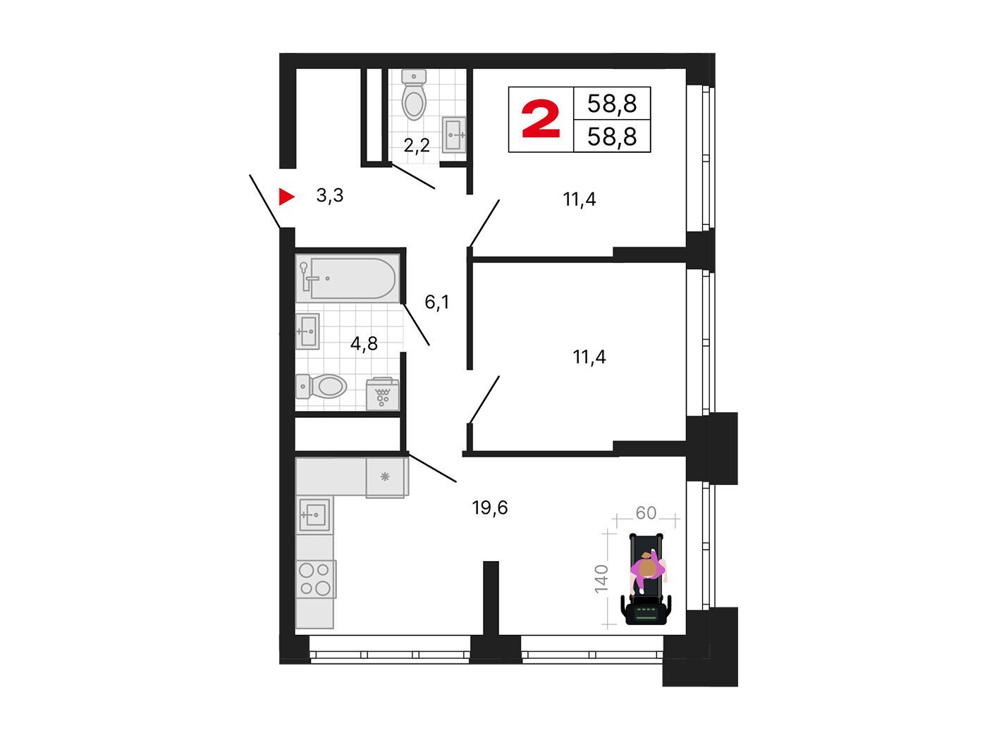 2-комнатная квартира, 55.10 м², 25 из 29 эт.