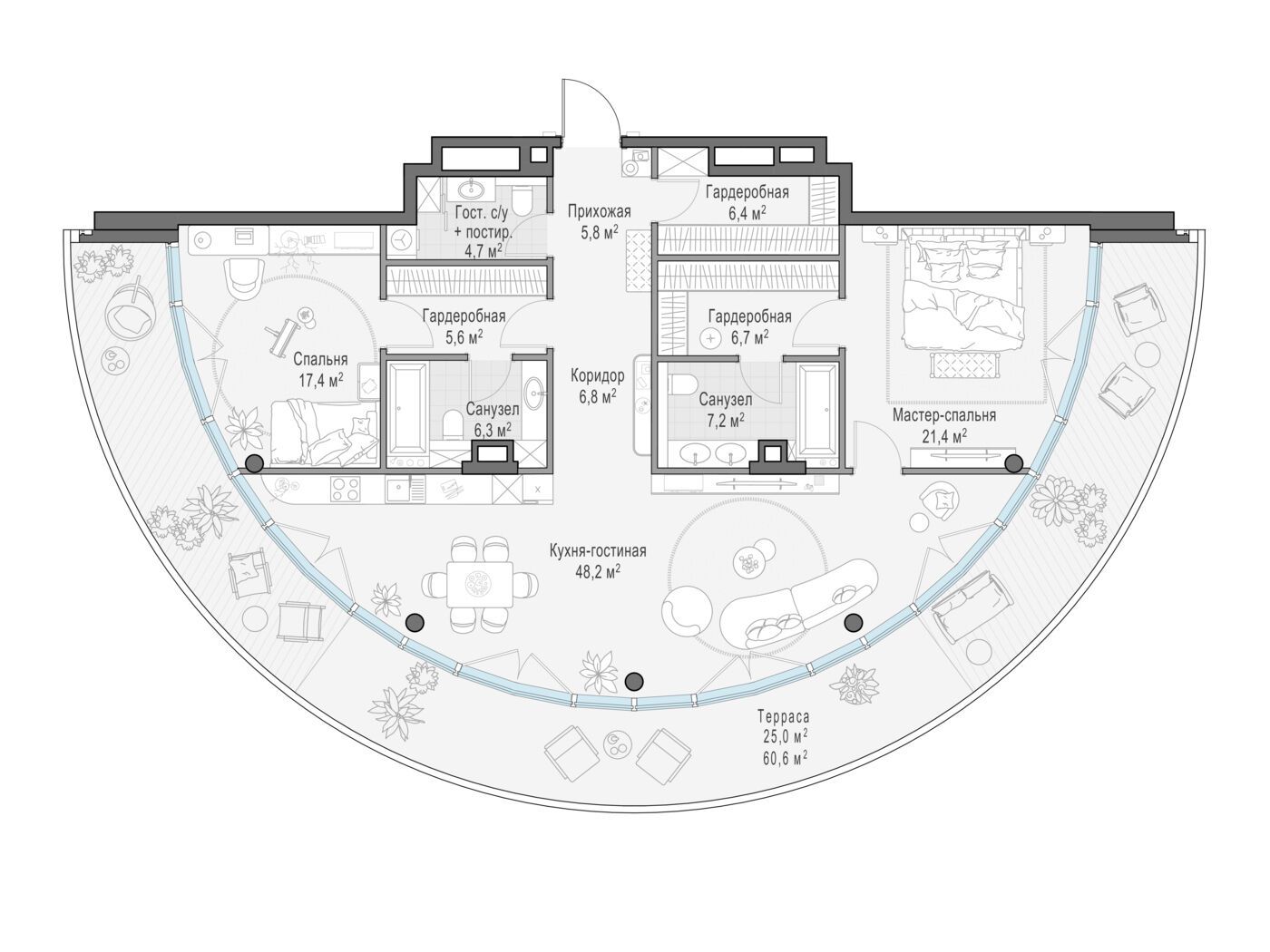 2-комнатная квартира, 143.90 м², 2 из 10 эт.