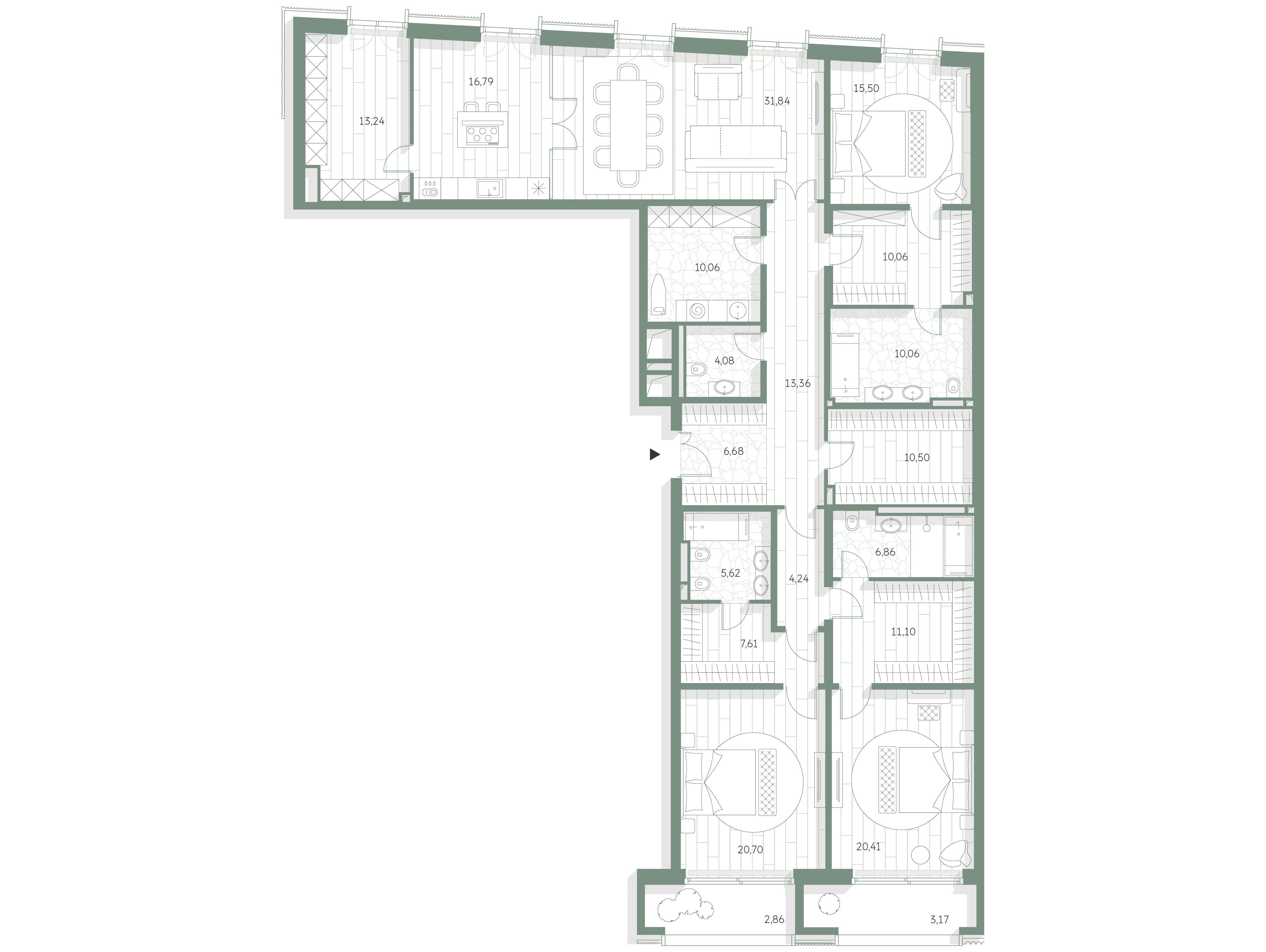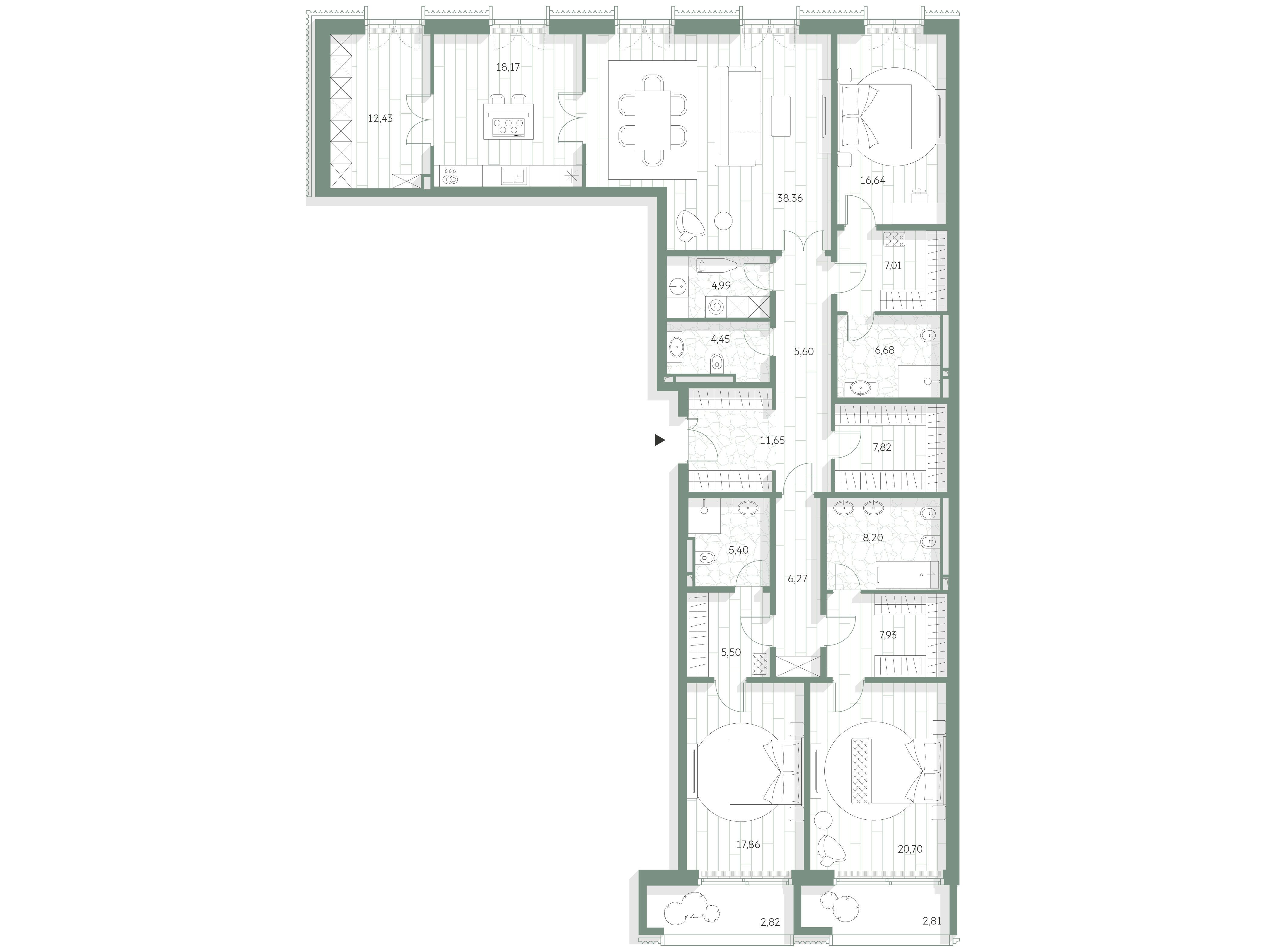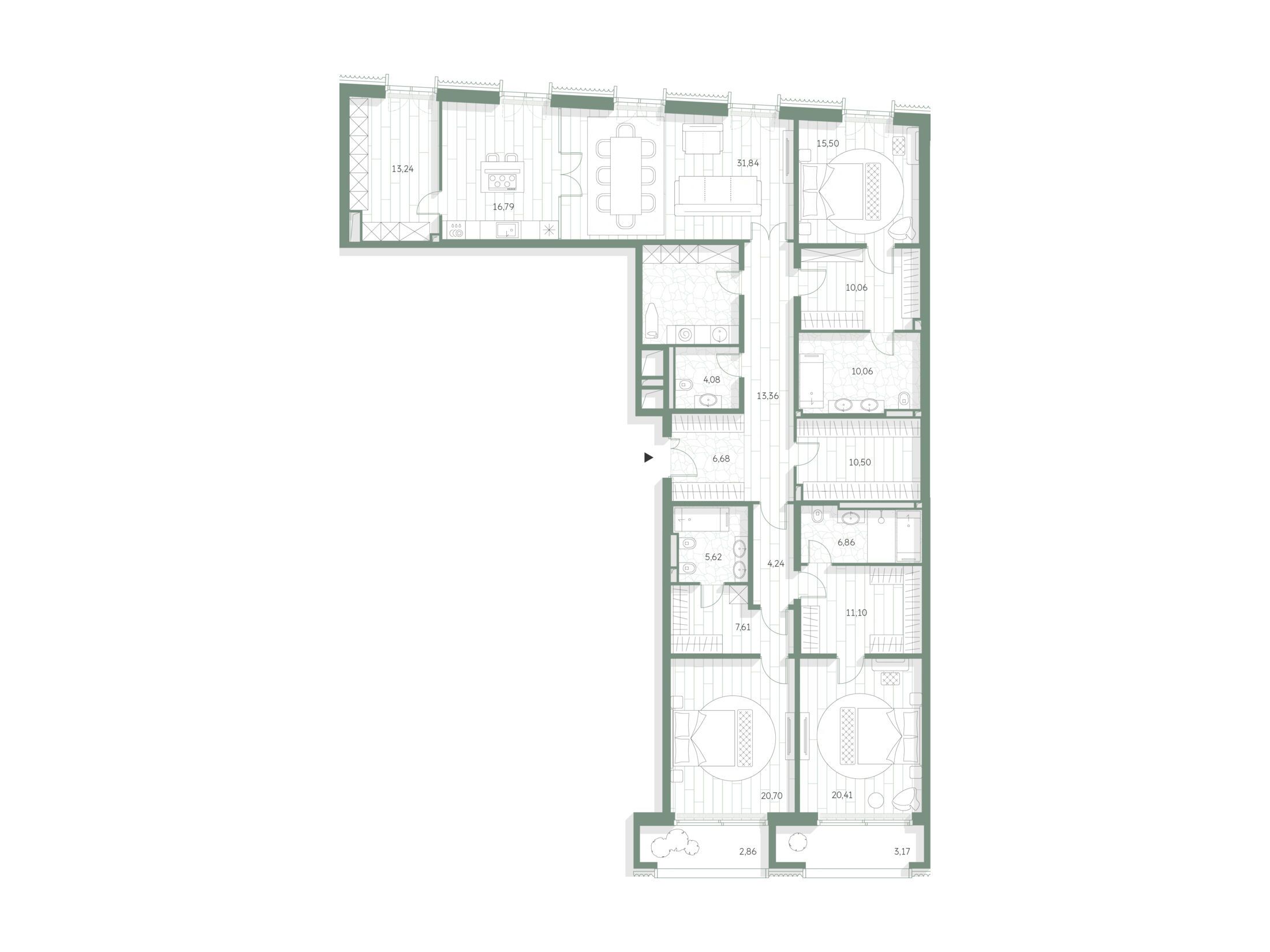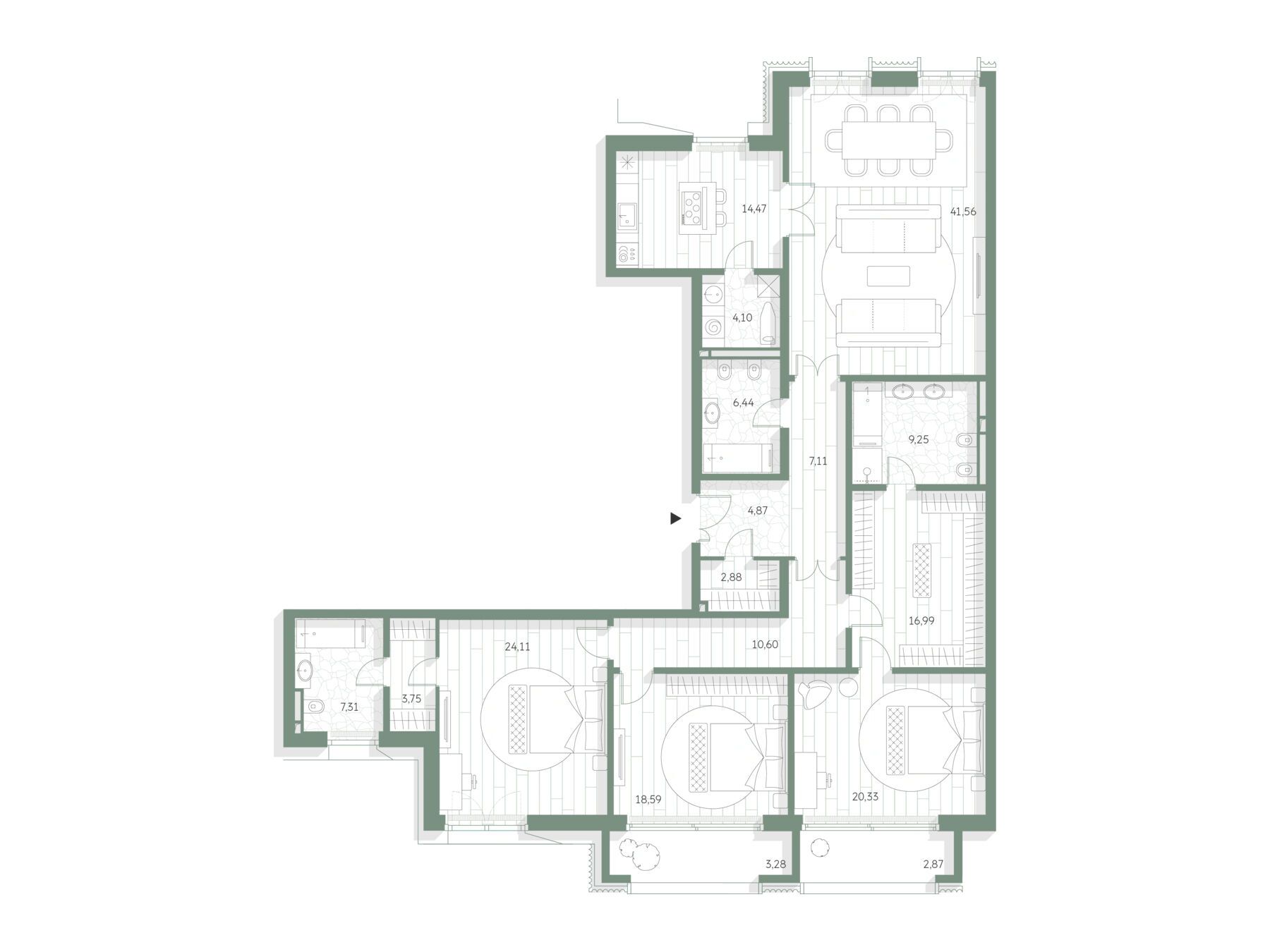 3-комнатная квартира, 198.51 м², 3 из 7 эт.