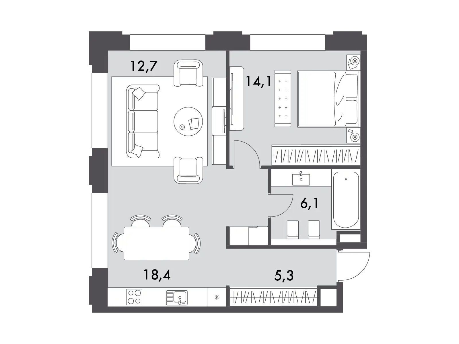 2-комнатная, 58.40 м²
