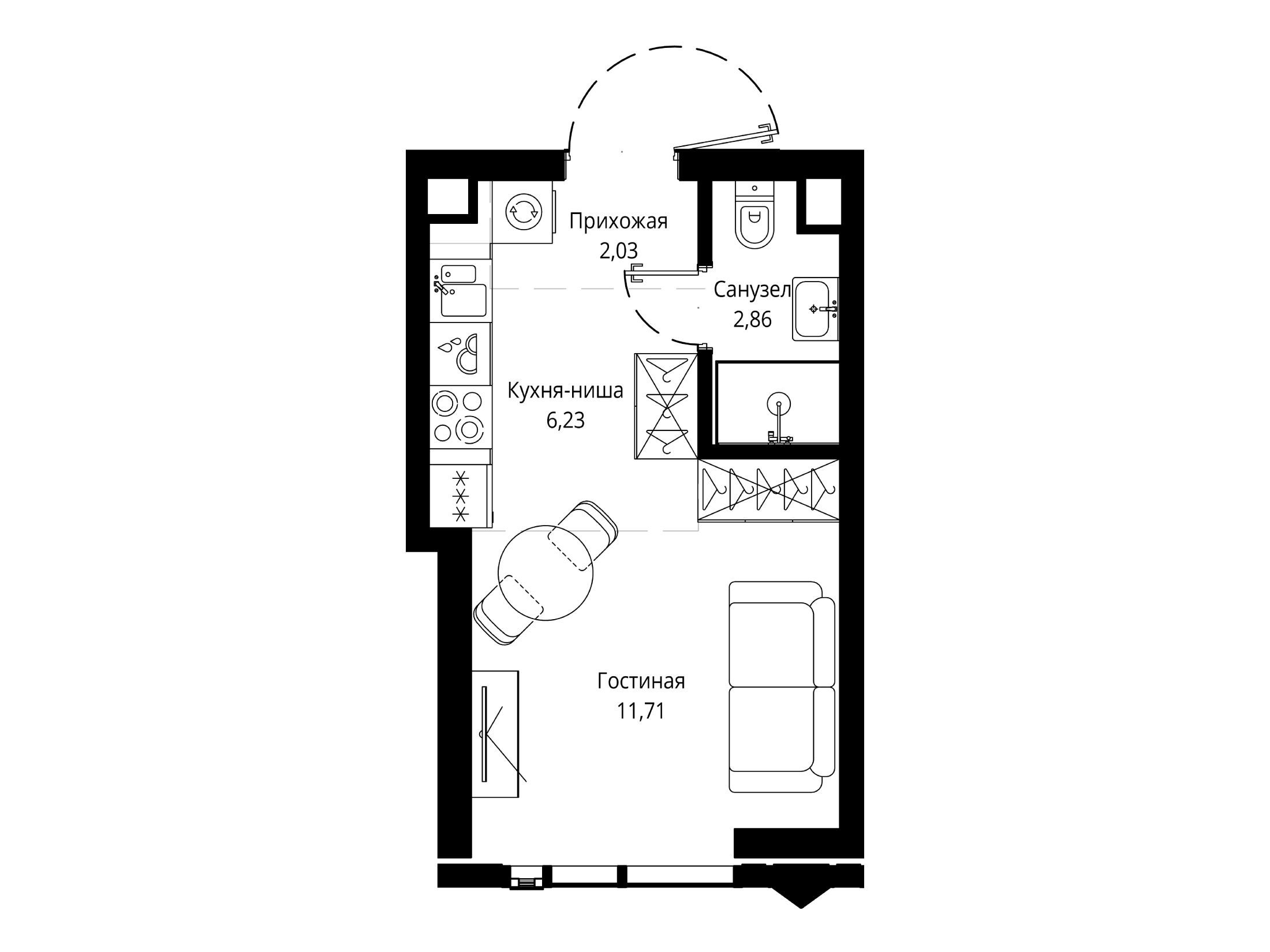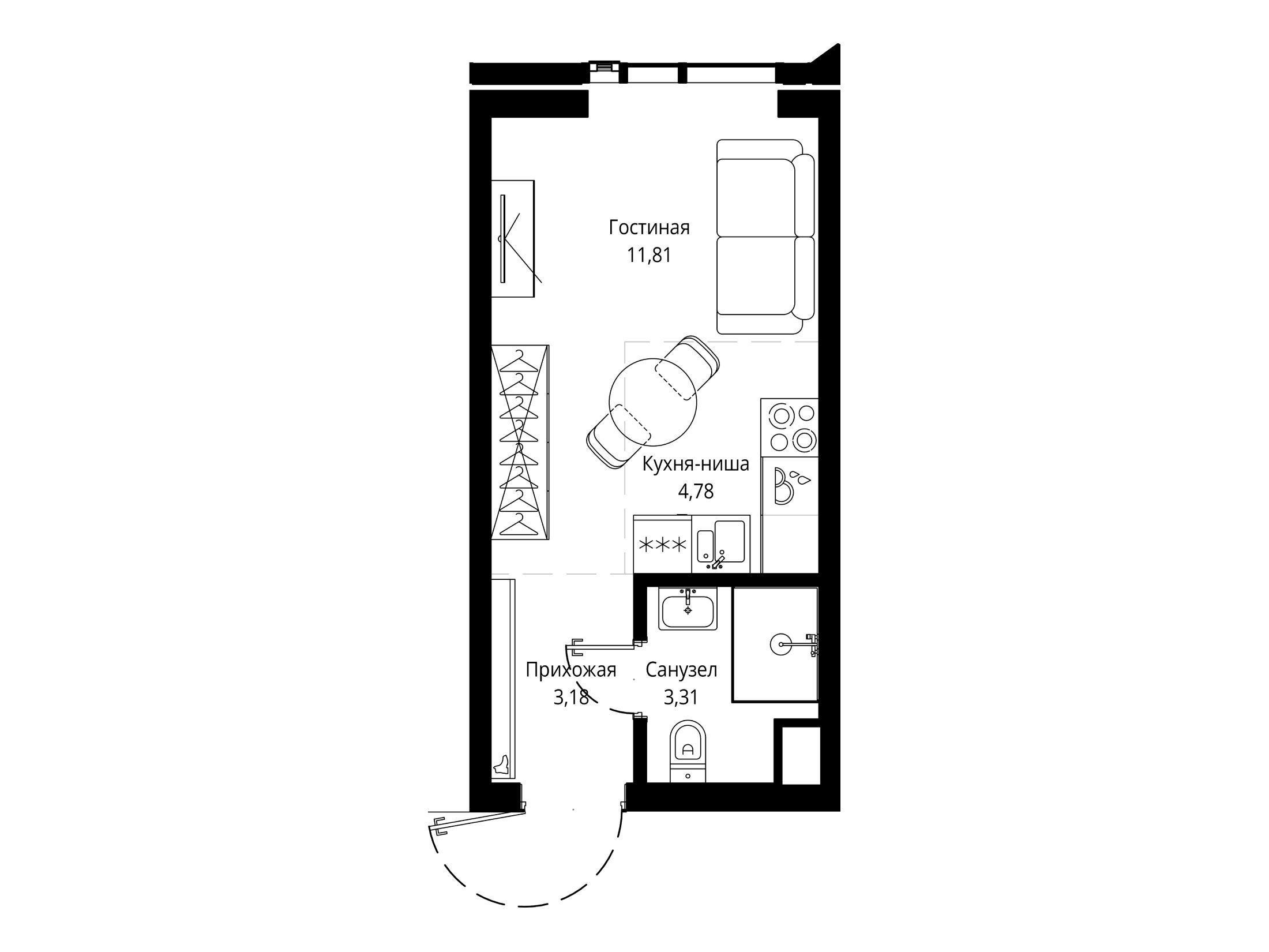 Студия, 26.78 м²