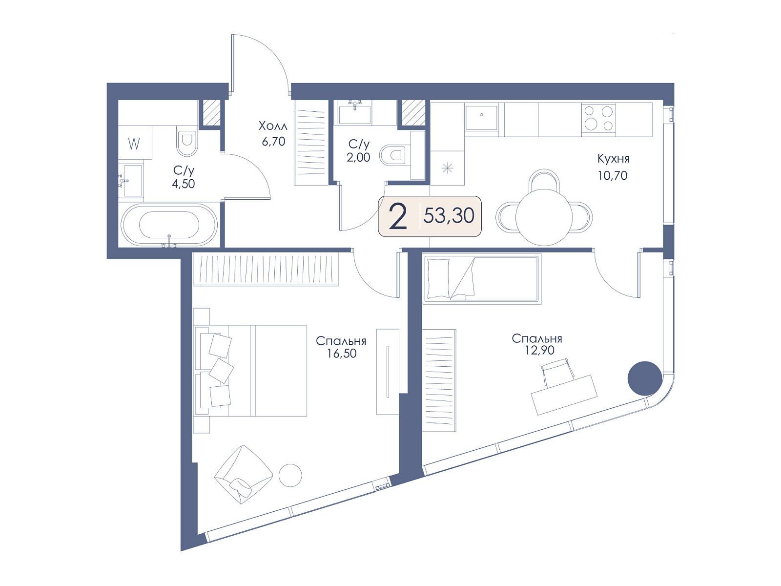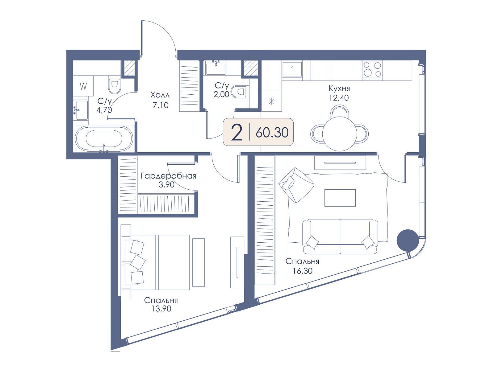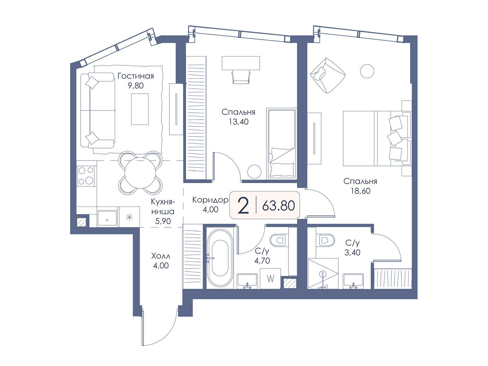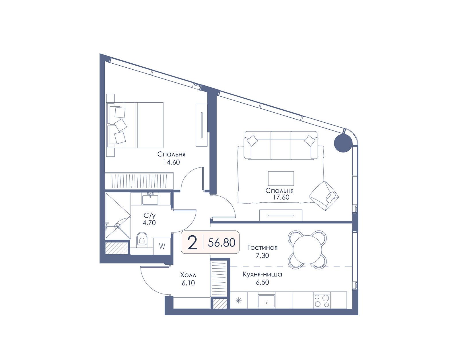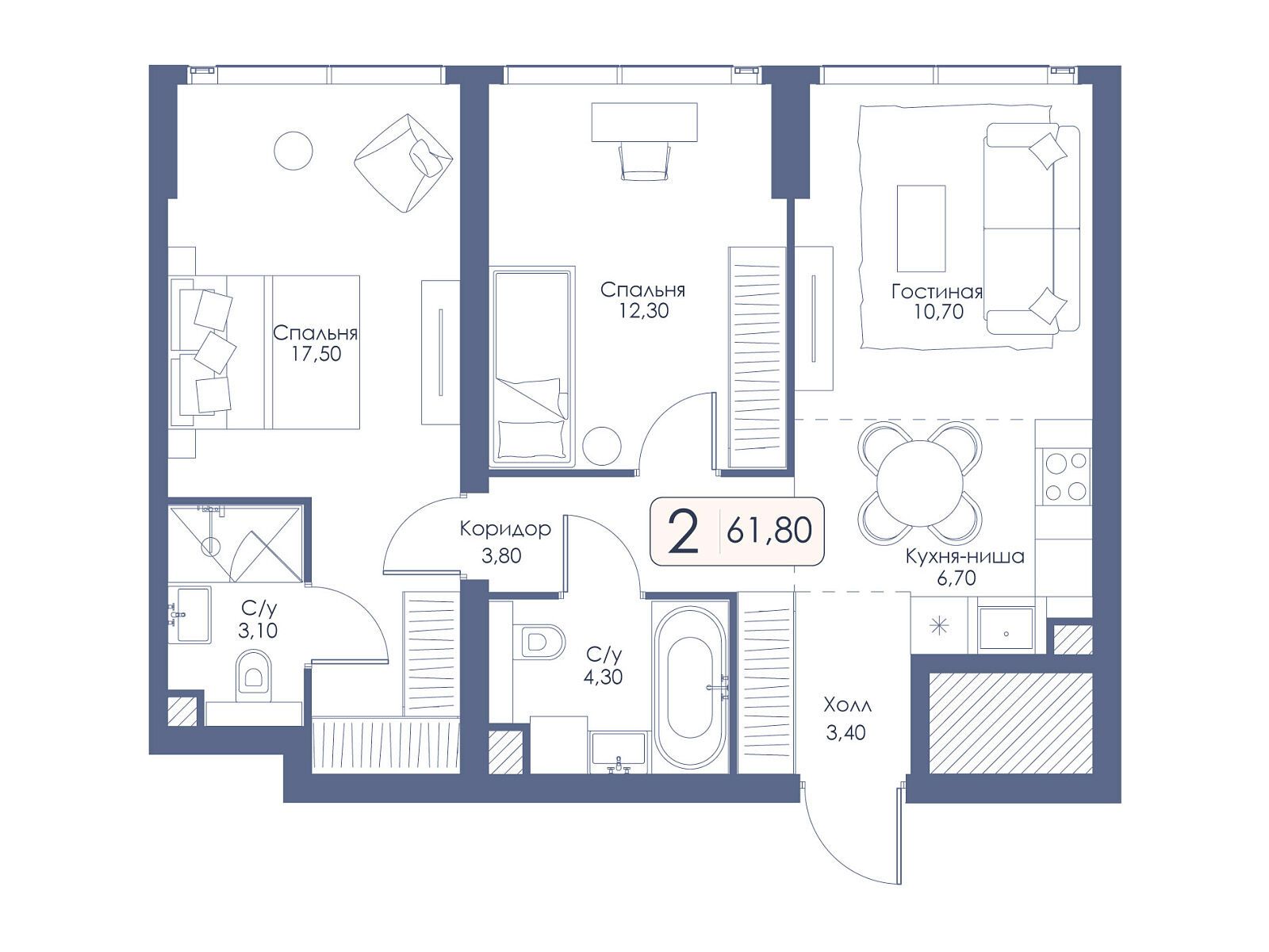 2-комнатная квартира, 66.50 м², 31 из 34 эт.