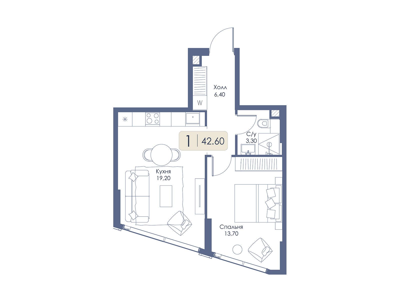 1-комнатная квартира, 45.80 м², 27 из 34 эт.