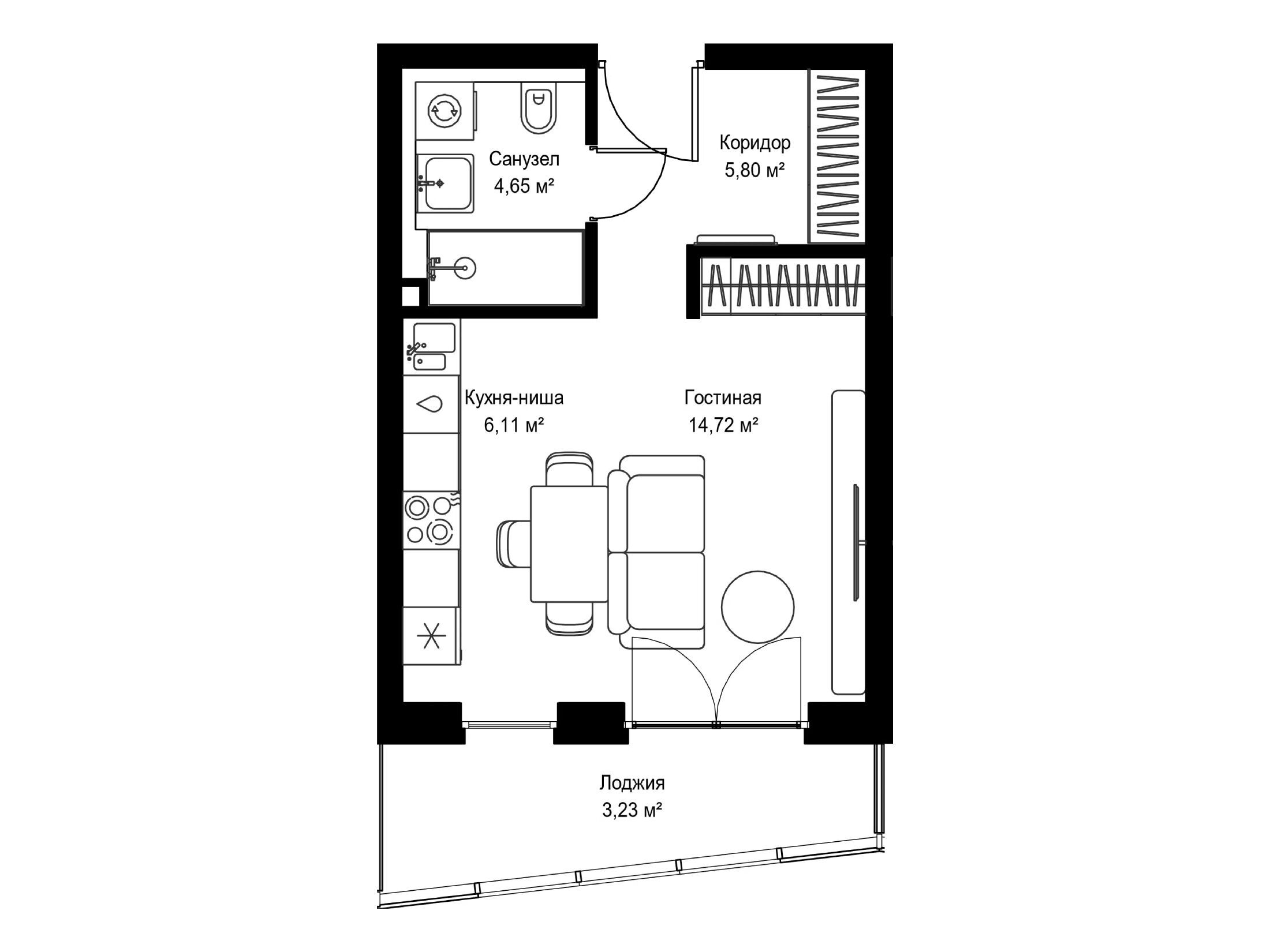Студия, 35.20 м²