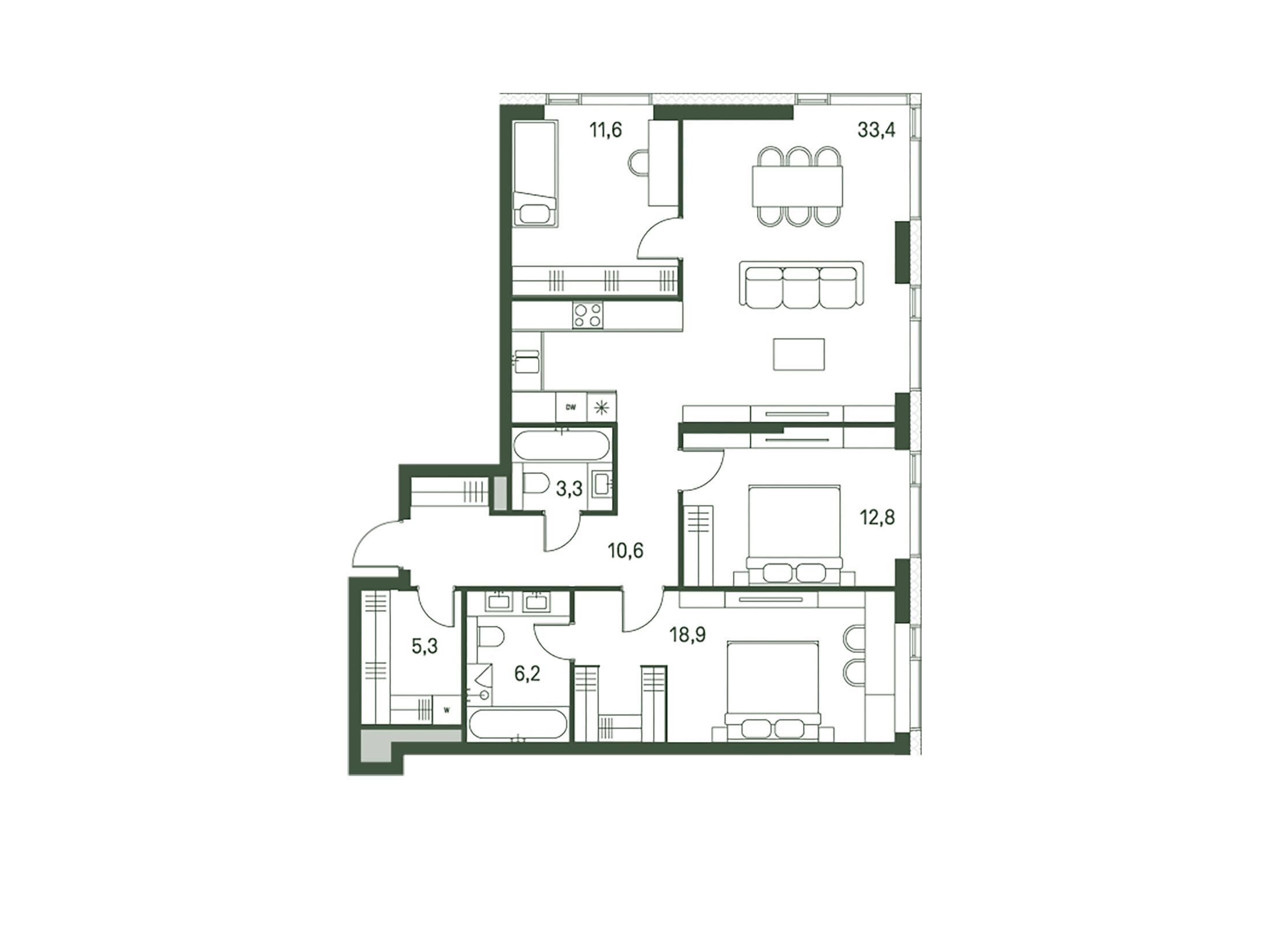 3-комнатная квартира, 101.60 м², 2 из 30 эт.