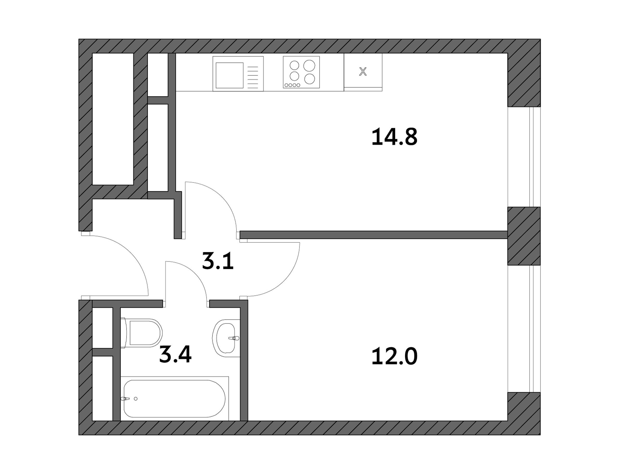 1-комнатная, 36.73 м²