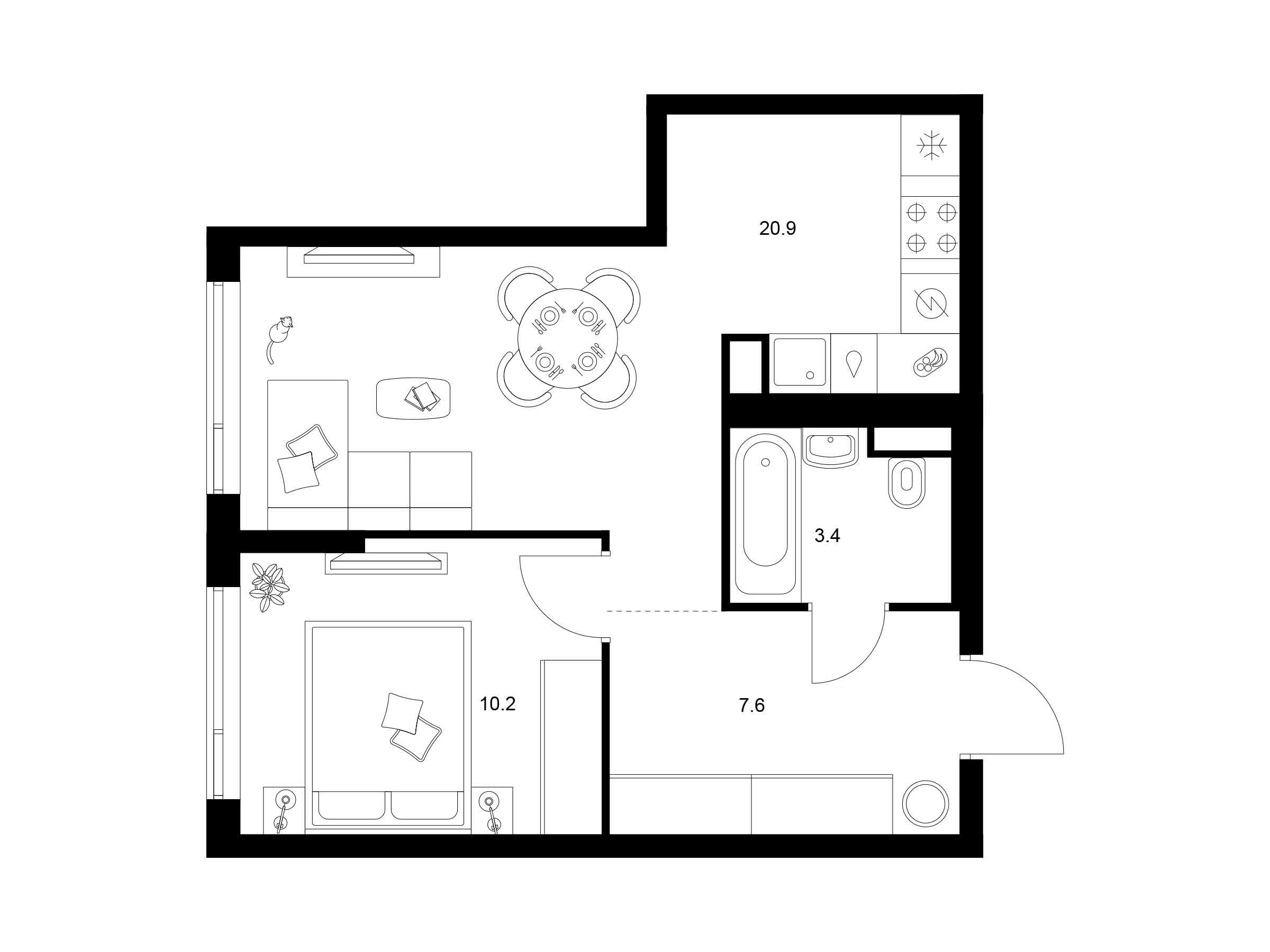 1-комнатная, 41.90 м²