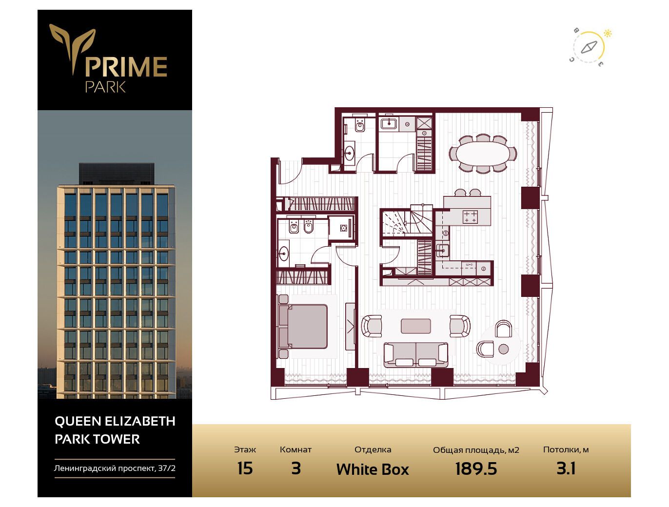 3-комнатная квартира, 103.60 м², 9 из 37 эт.