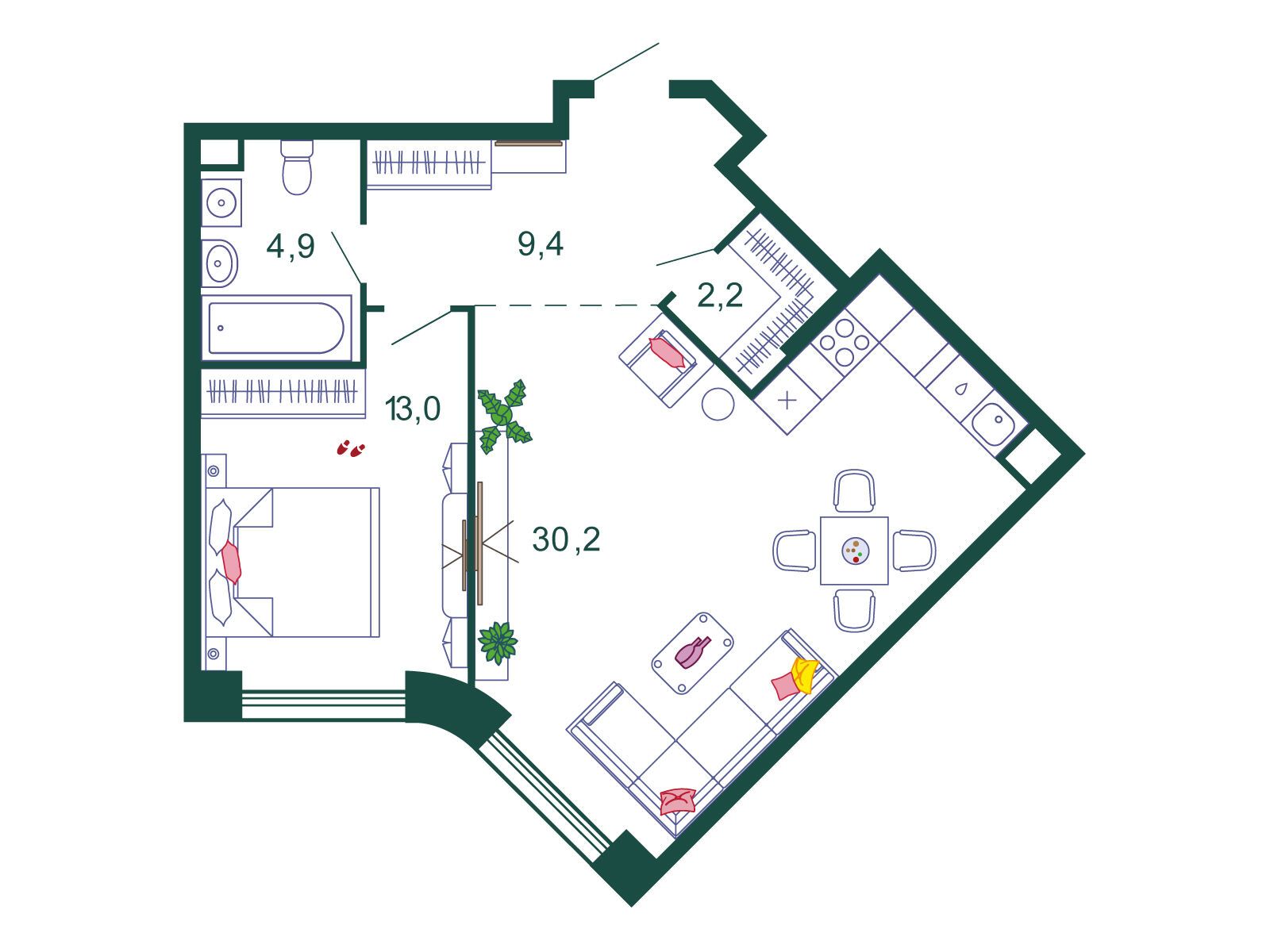 1-комнатная, 59.70 м²