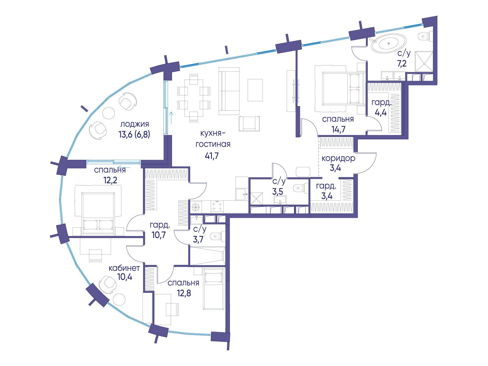 4-комнатная квартира, 134.90 м², 14 из 19 эт.