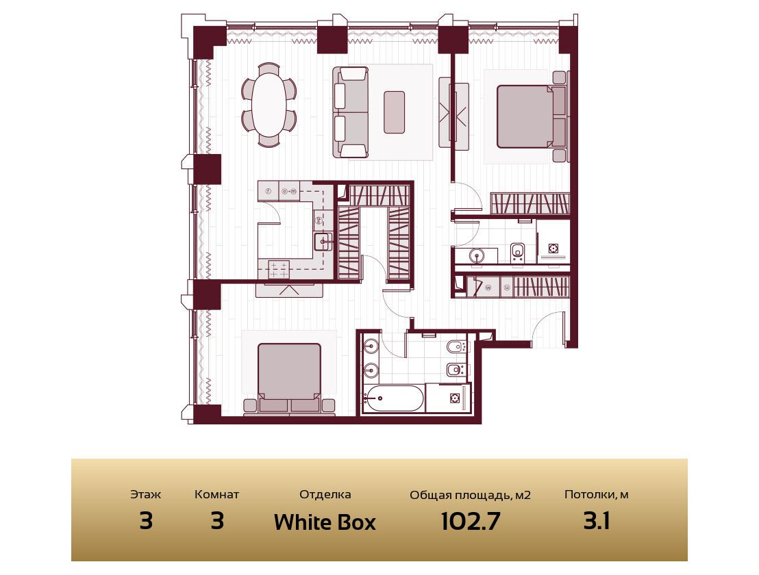 3-комнатная квартира, 103.40 м², 18 из 33 эт.