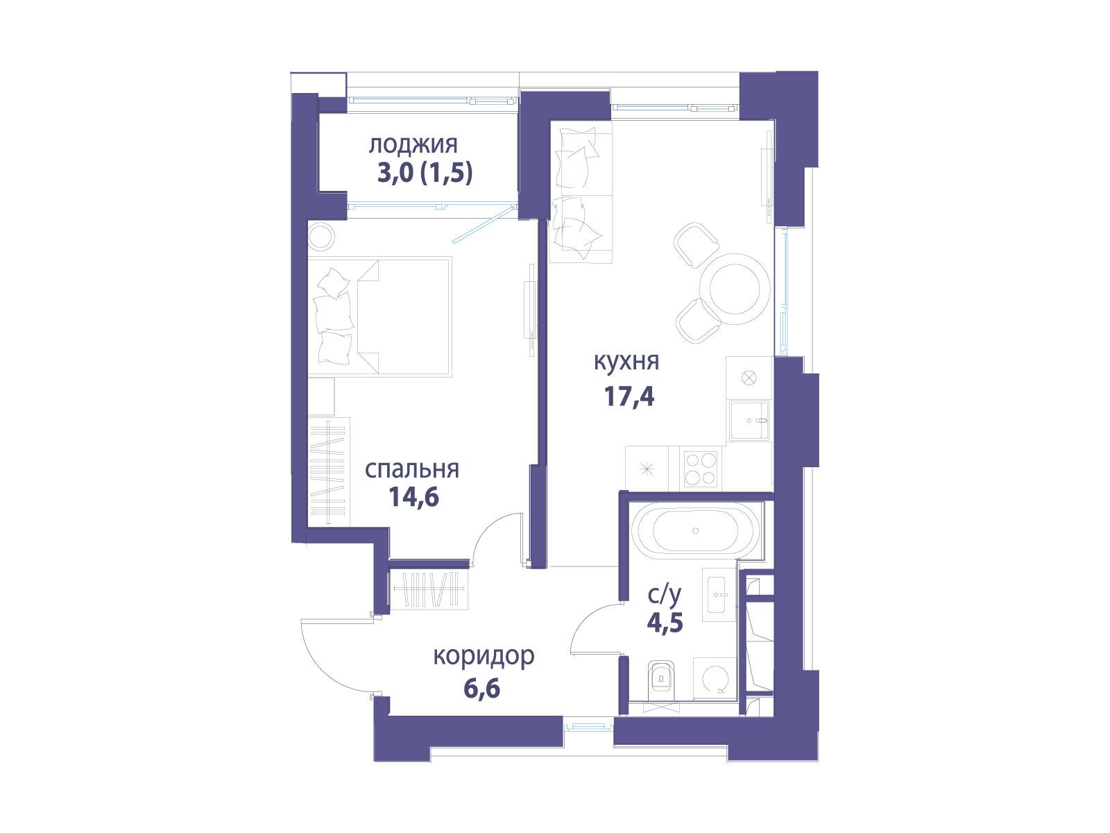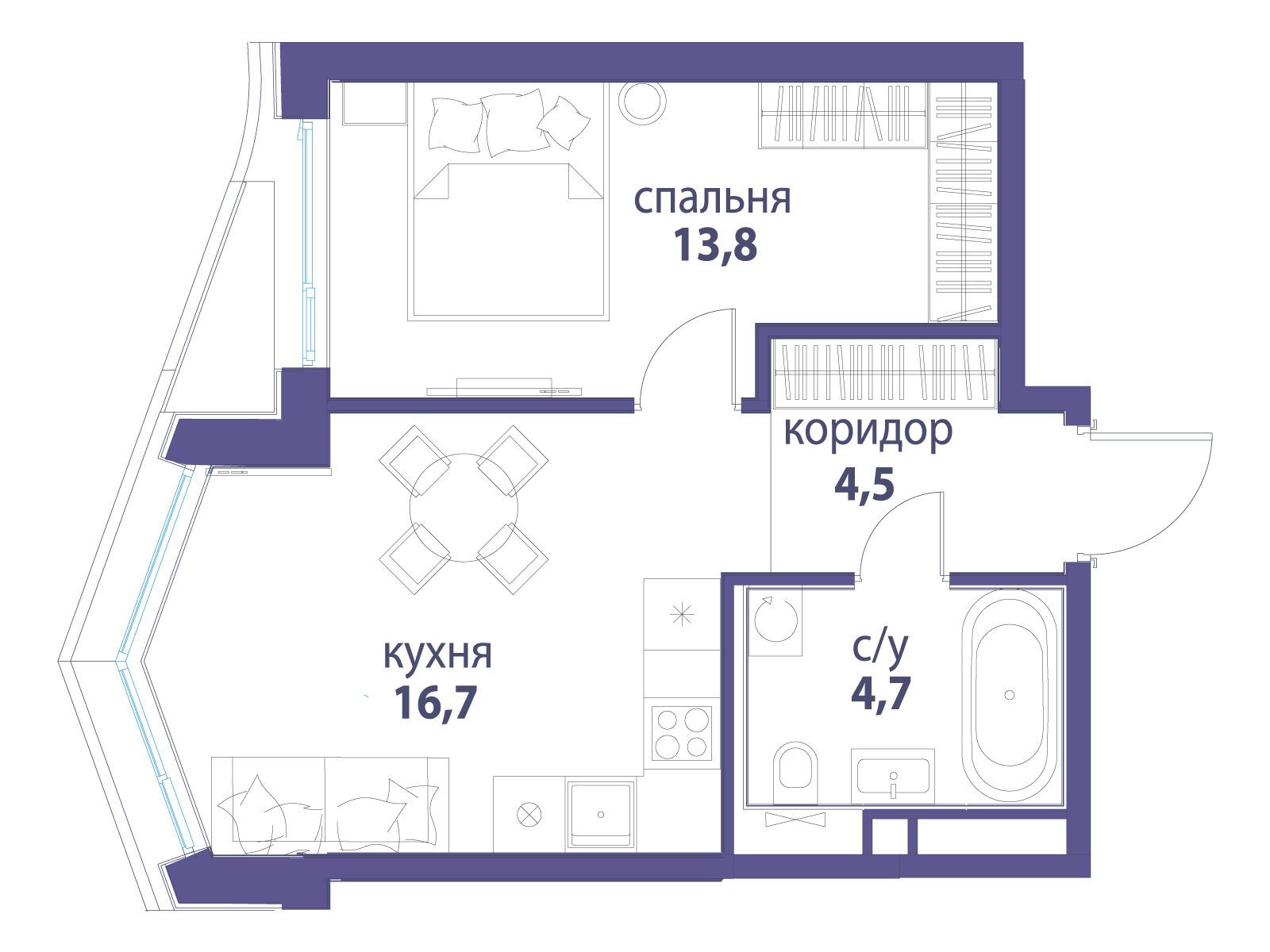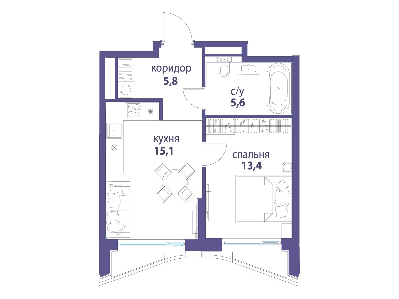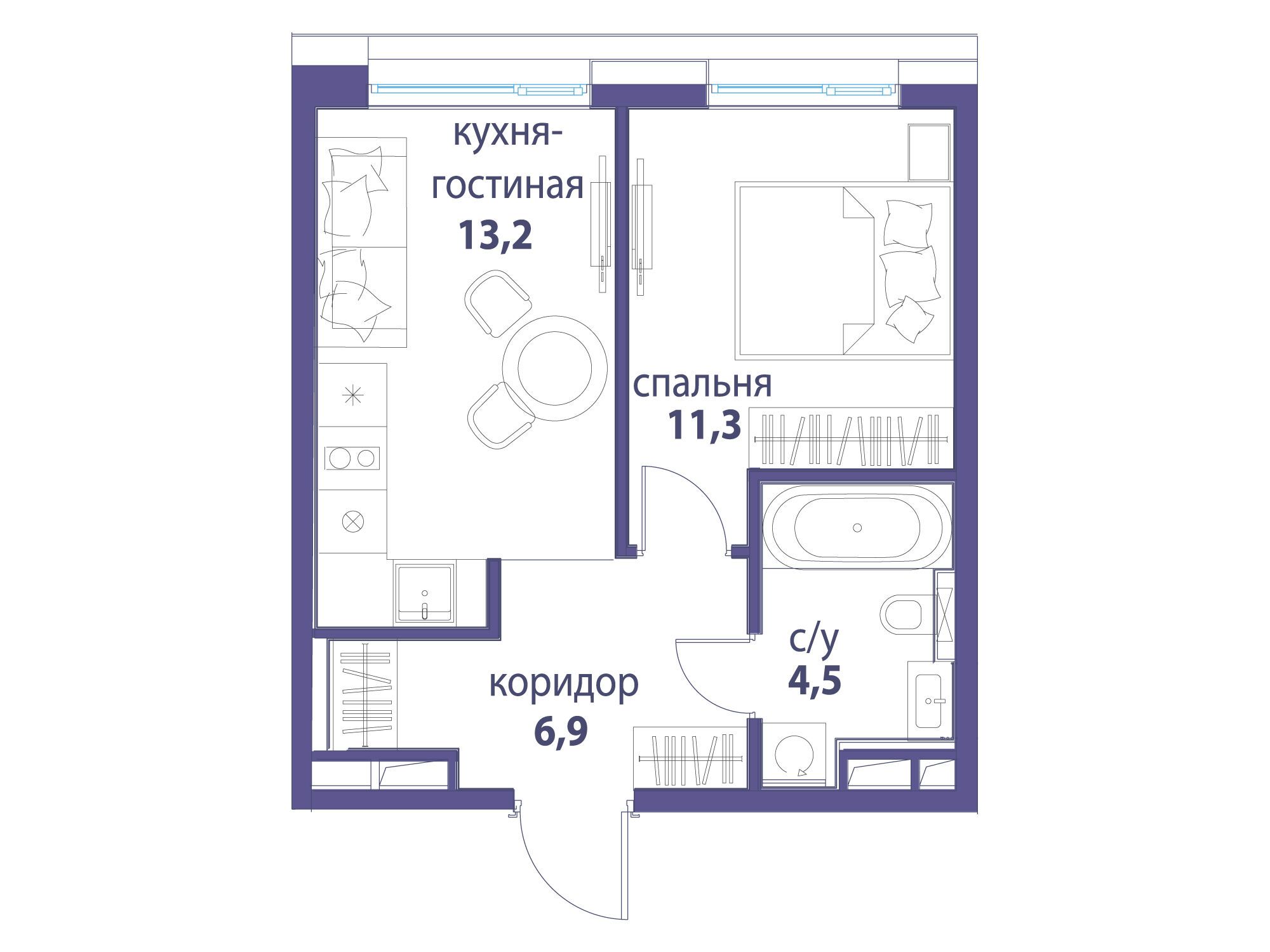 1-комнатная квартира, 35.60 м², 21 из 25 эт.