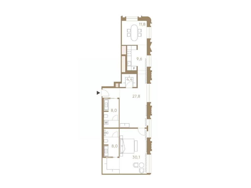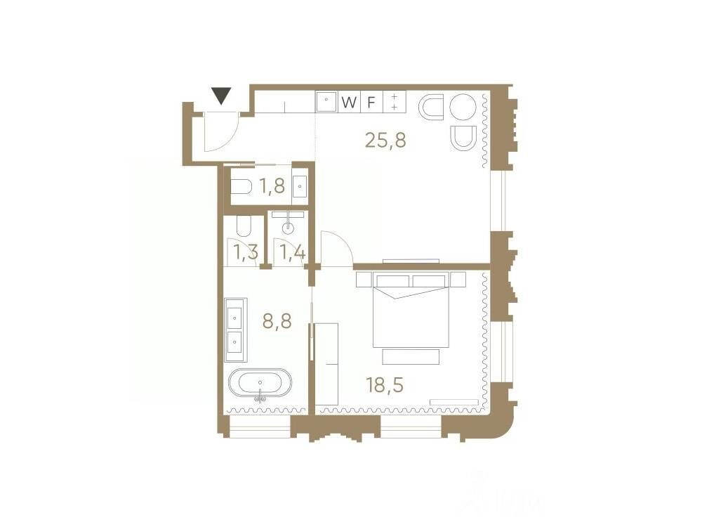 1-комнатная квартира, 93.90 м², 7 из 9 эт.