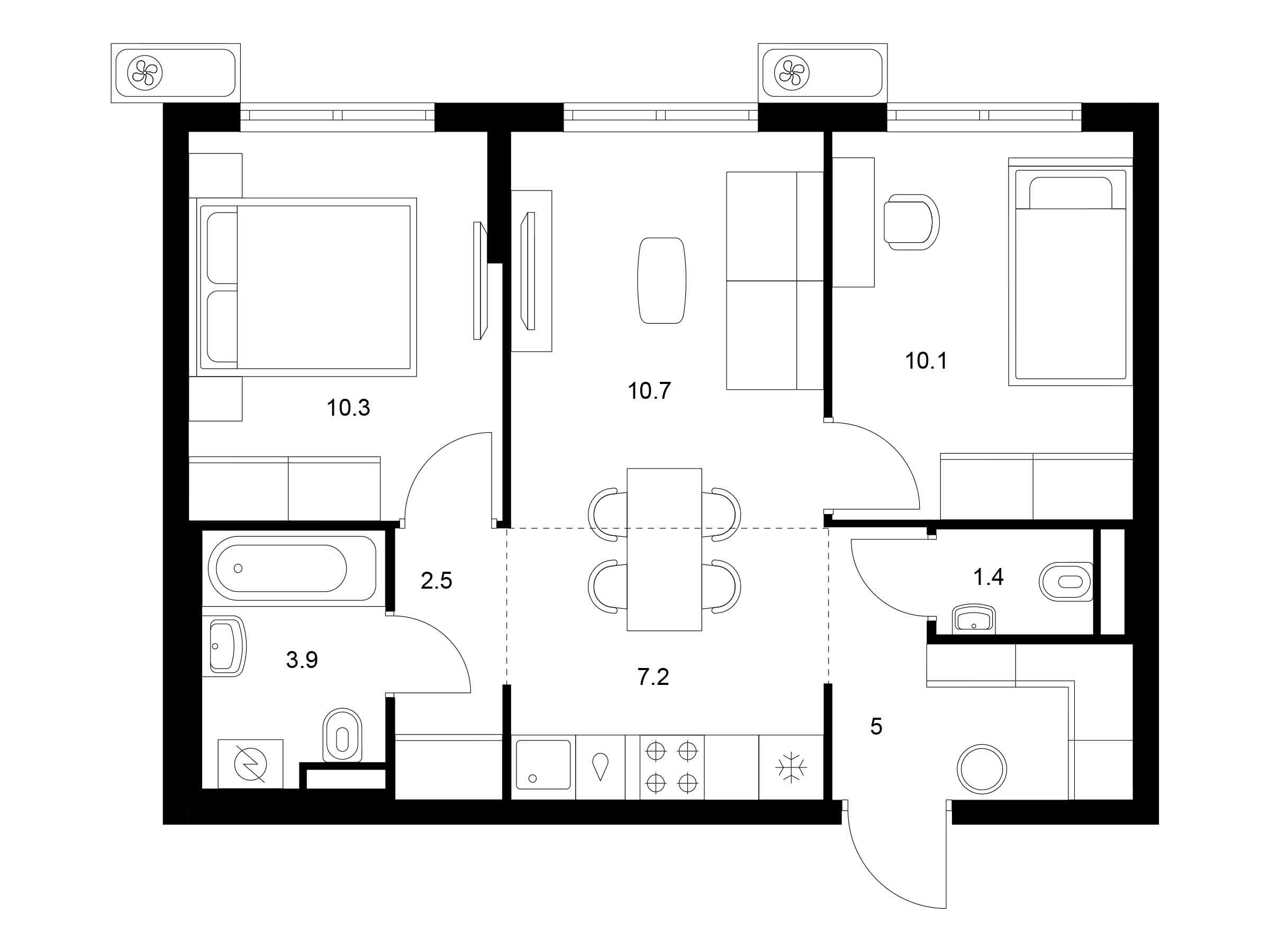 2-комнатная, 47.60 м²
