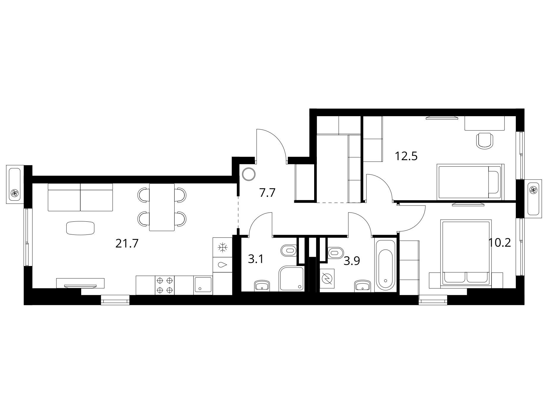 2-комнатная, 51.40 м²