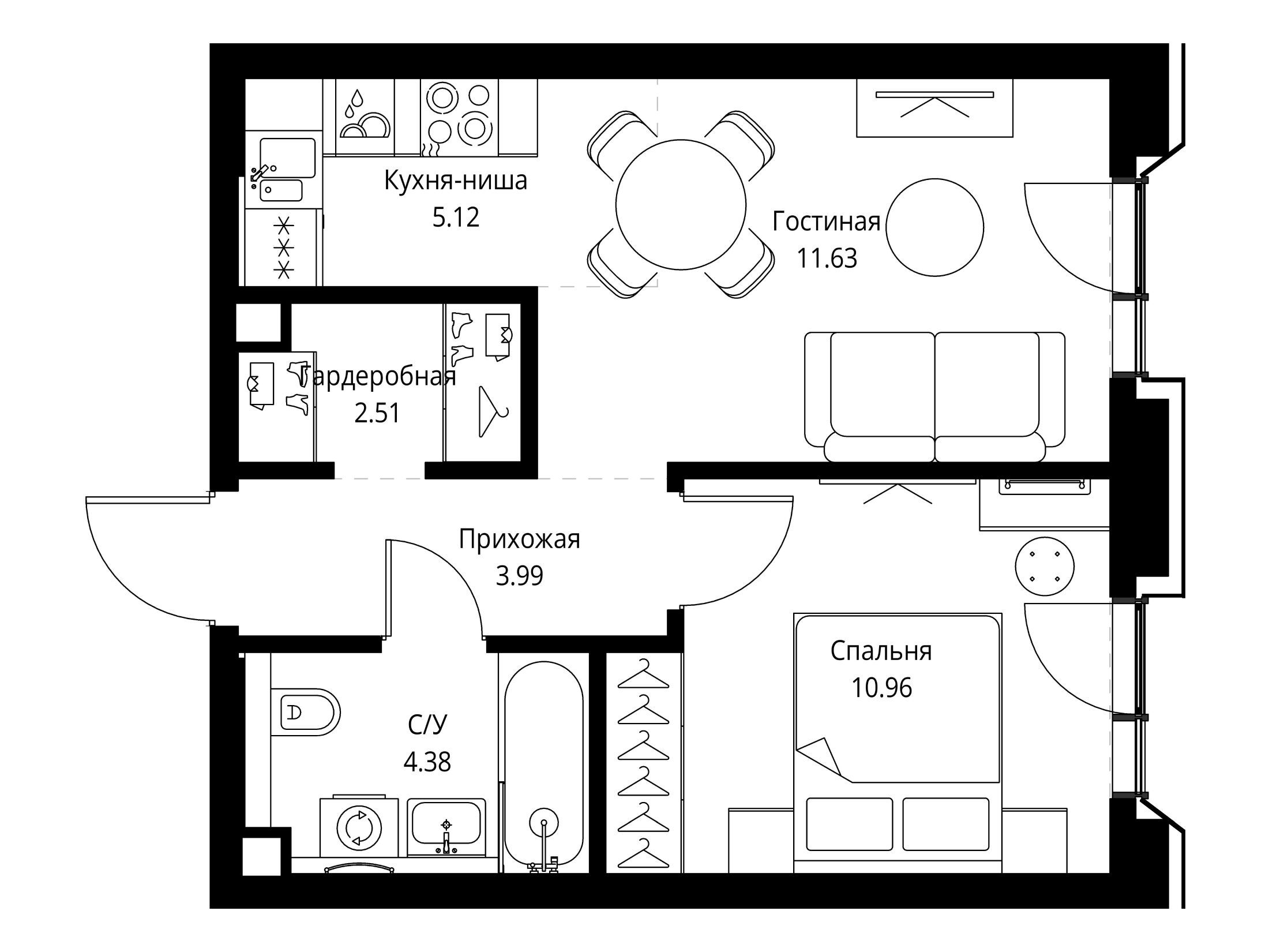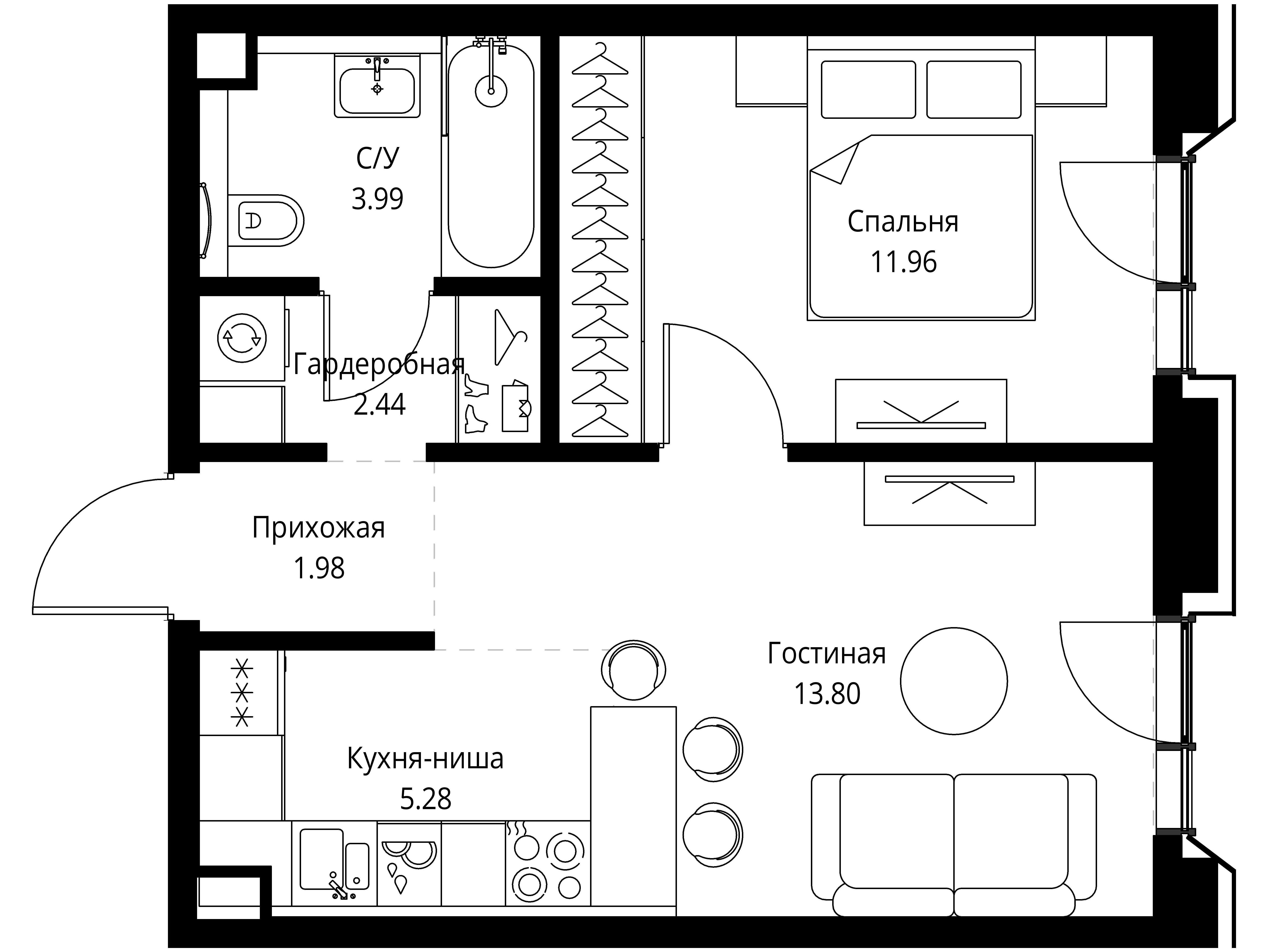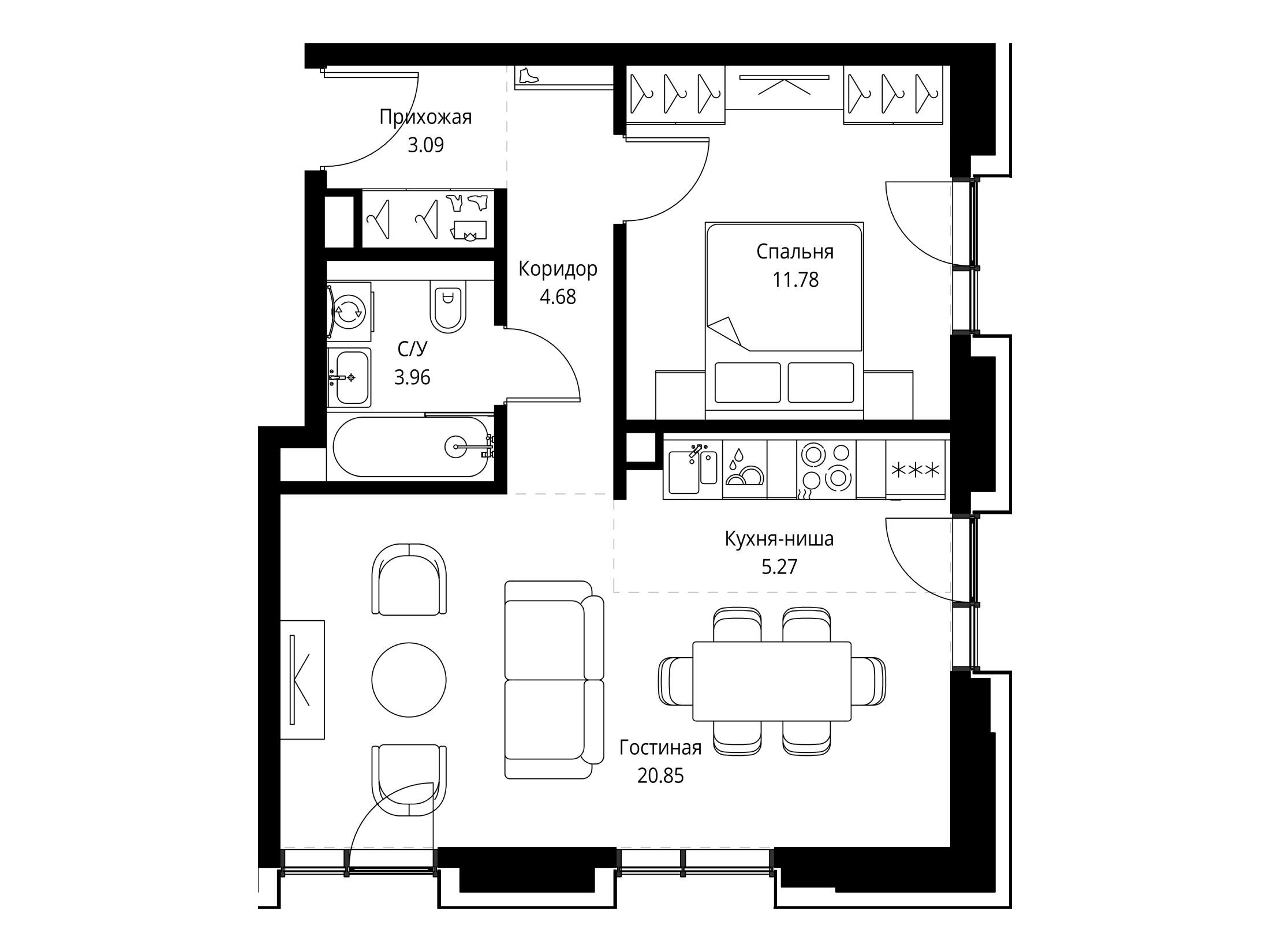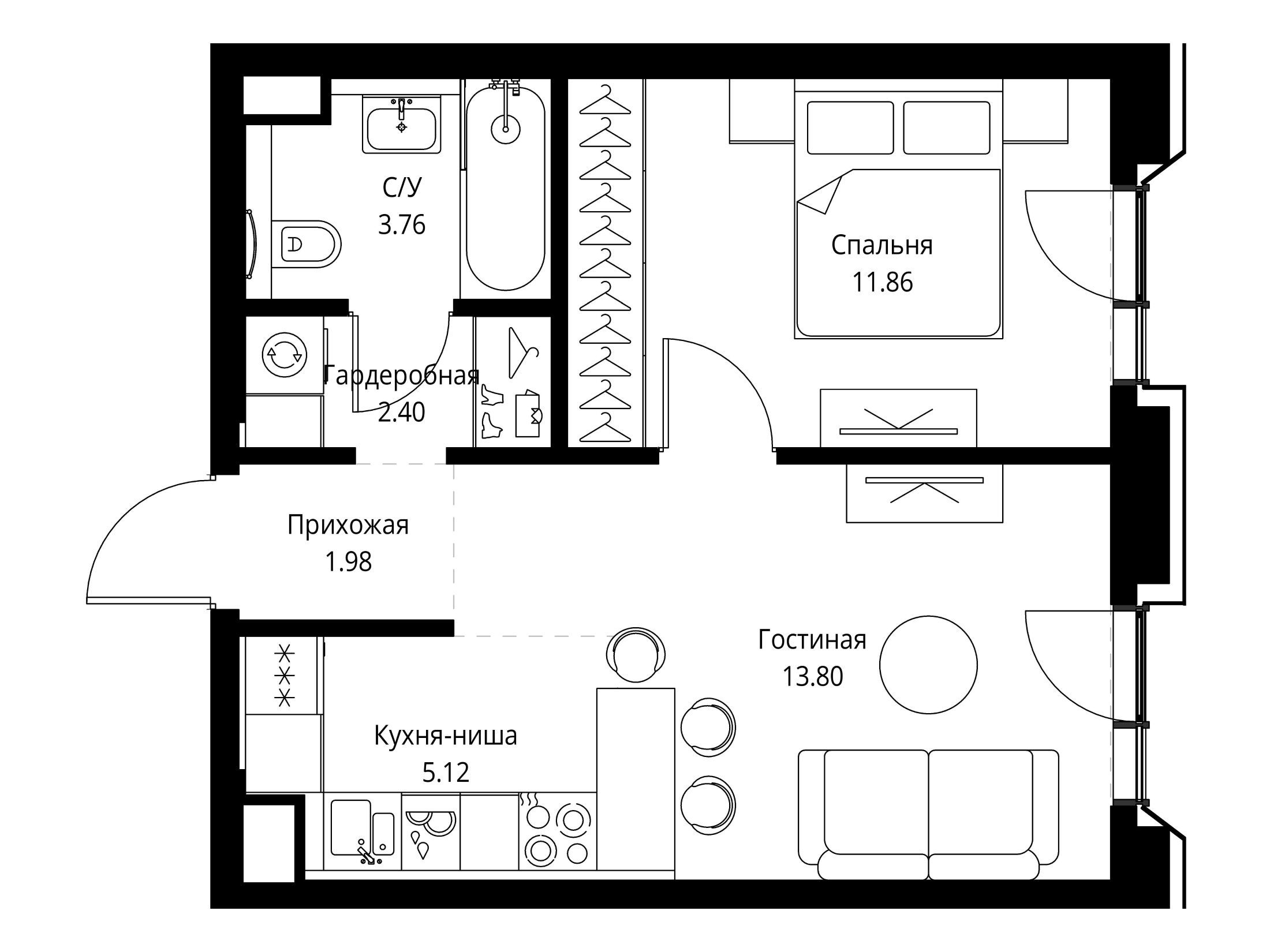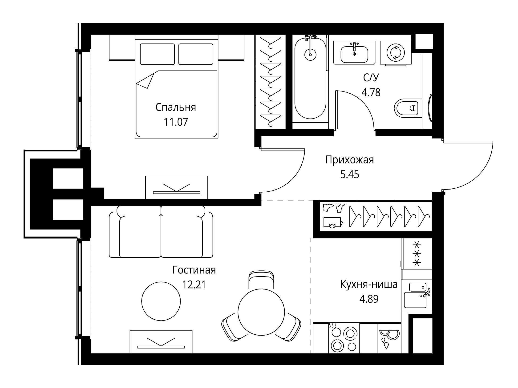 1-комнатная квартира, 42.67 м², 8 из 22 эт.