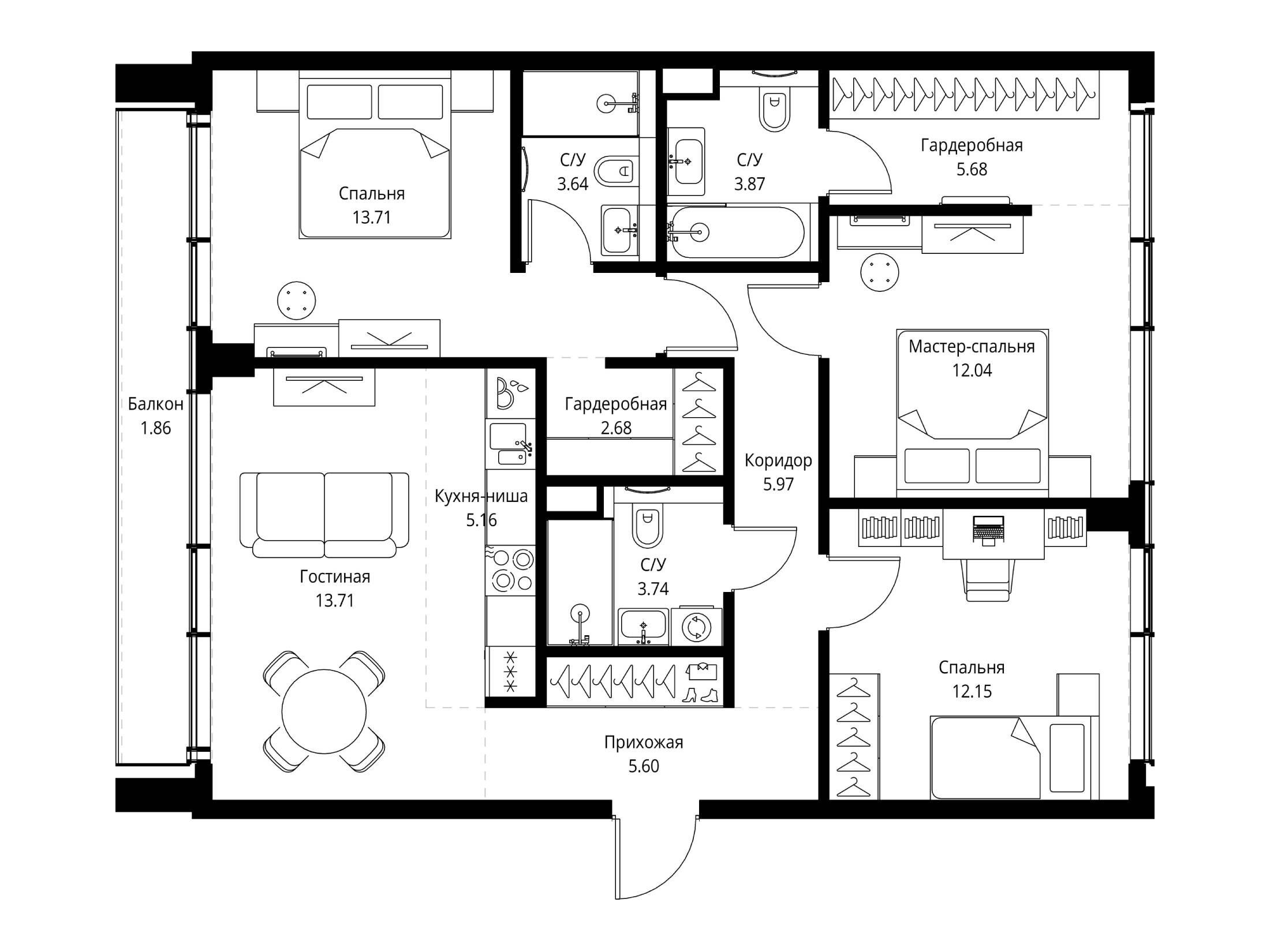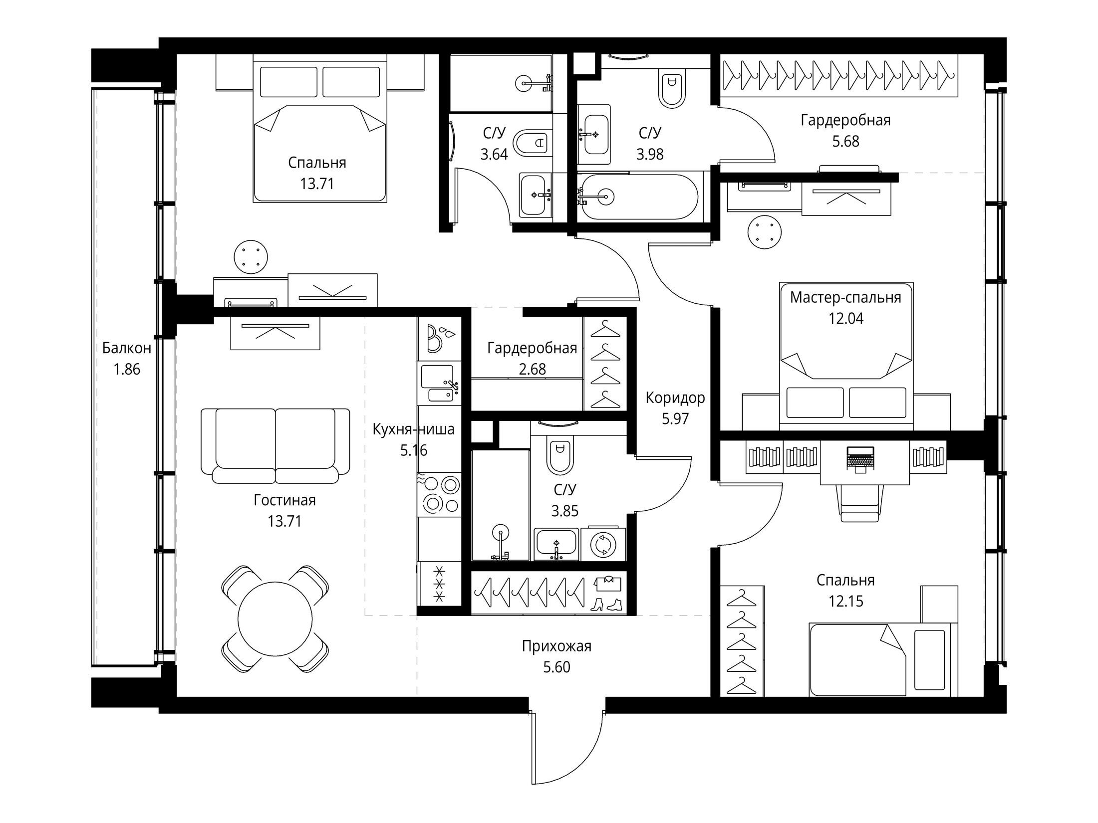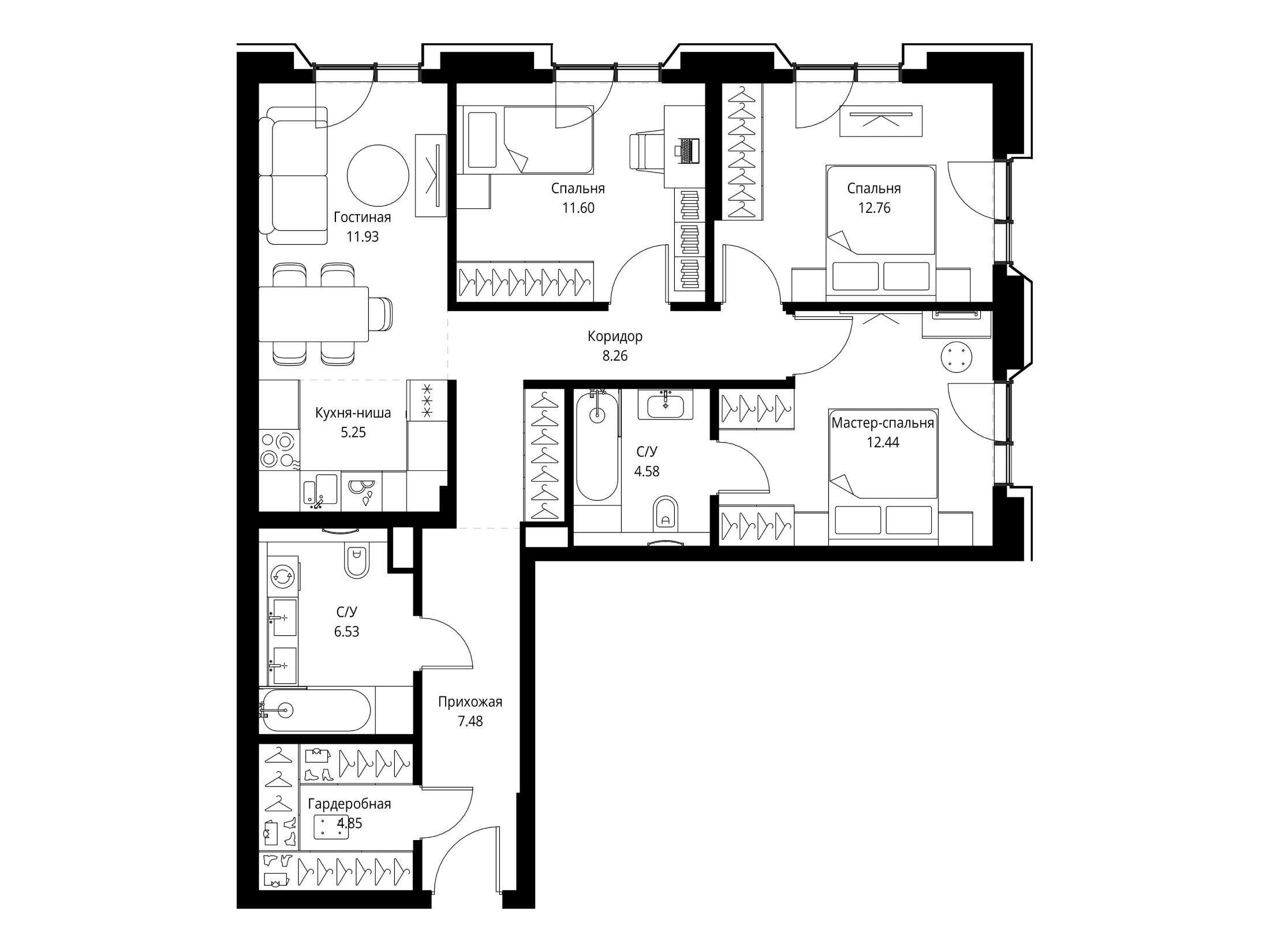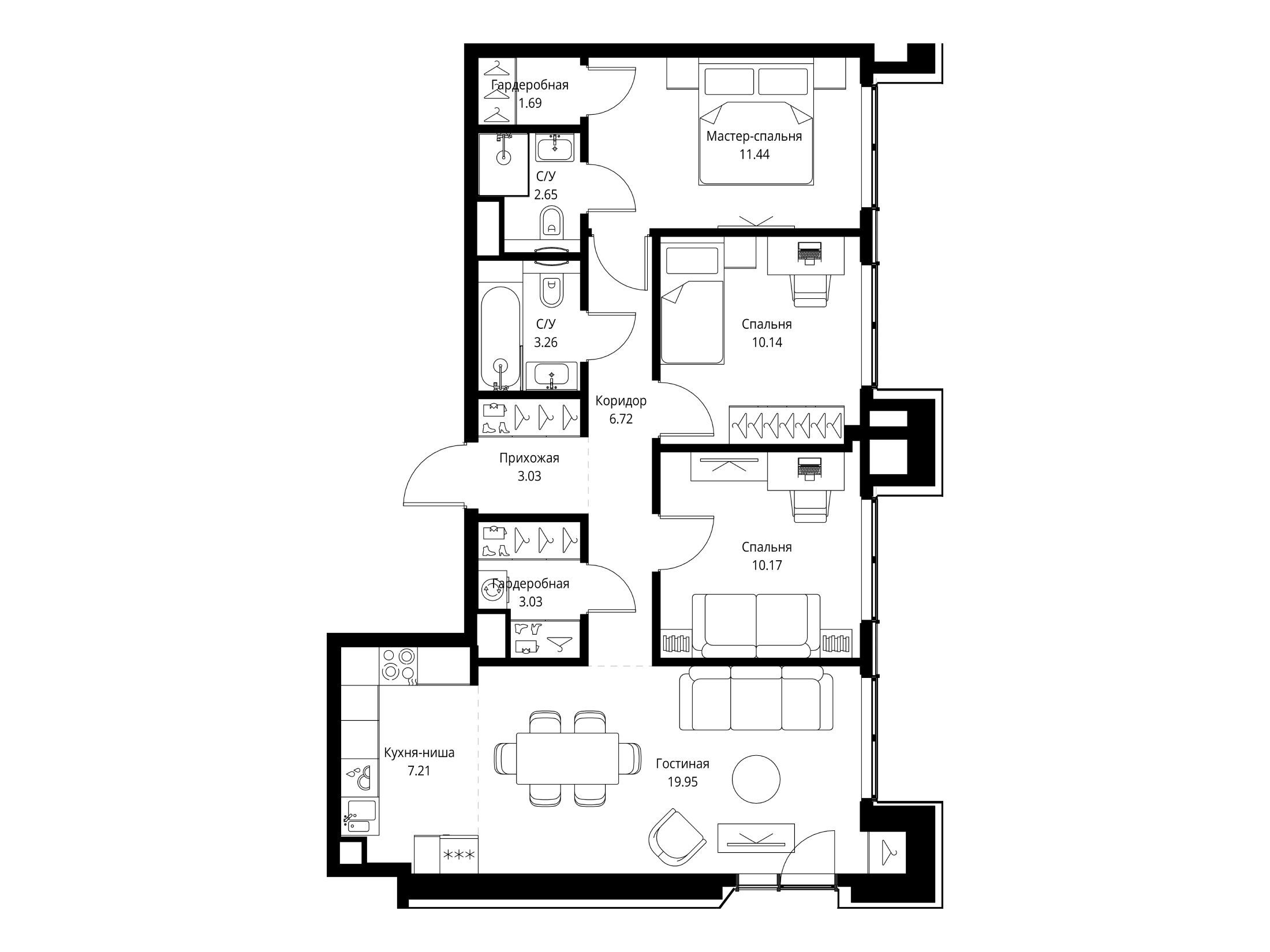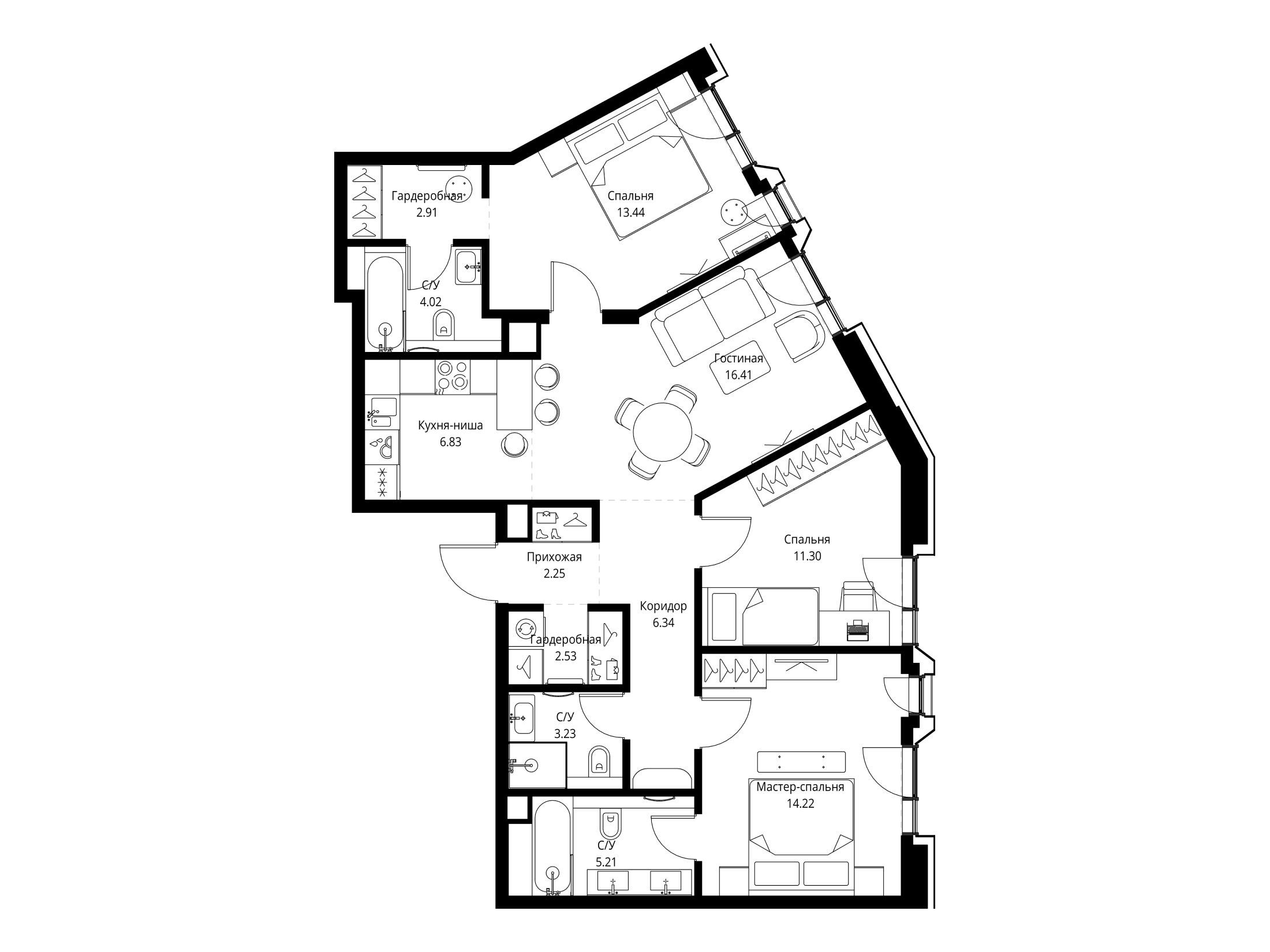 3-комнатная квартира, 89.46 м², 13 из 22 эт.