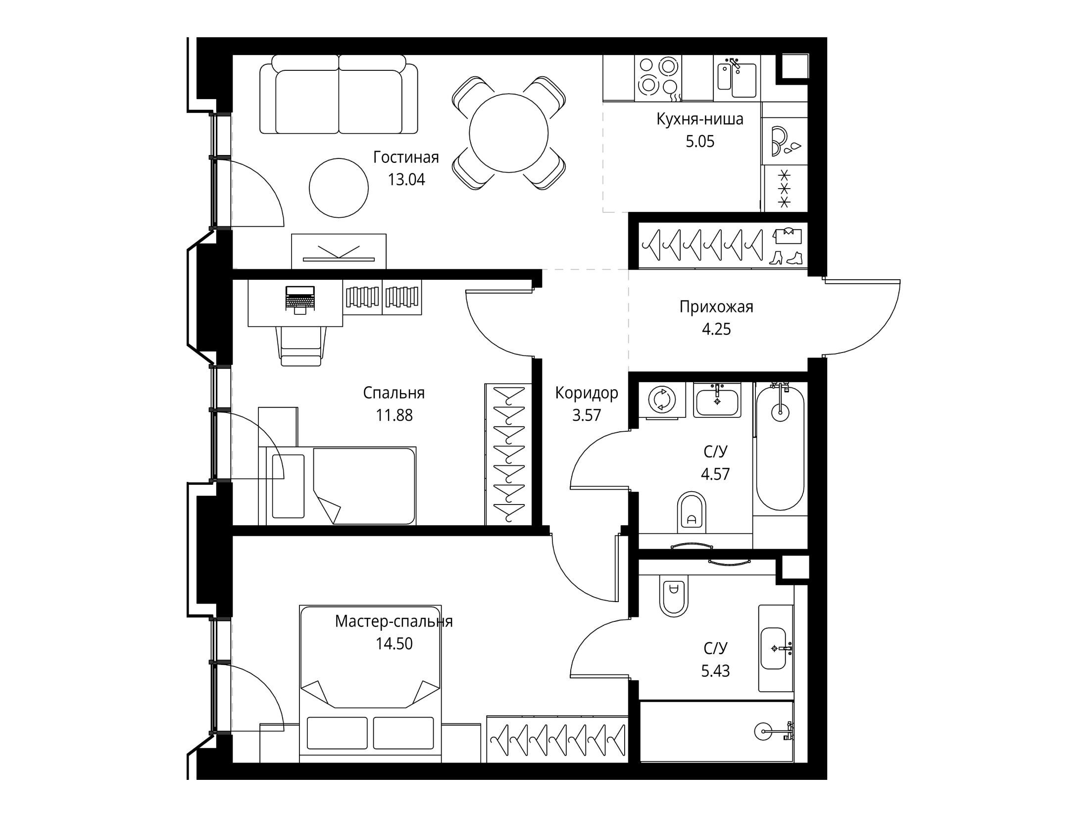2-комнатная, 58.32 м²
