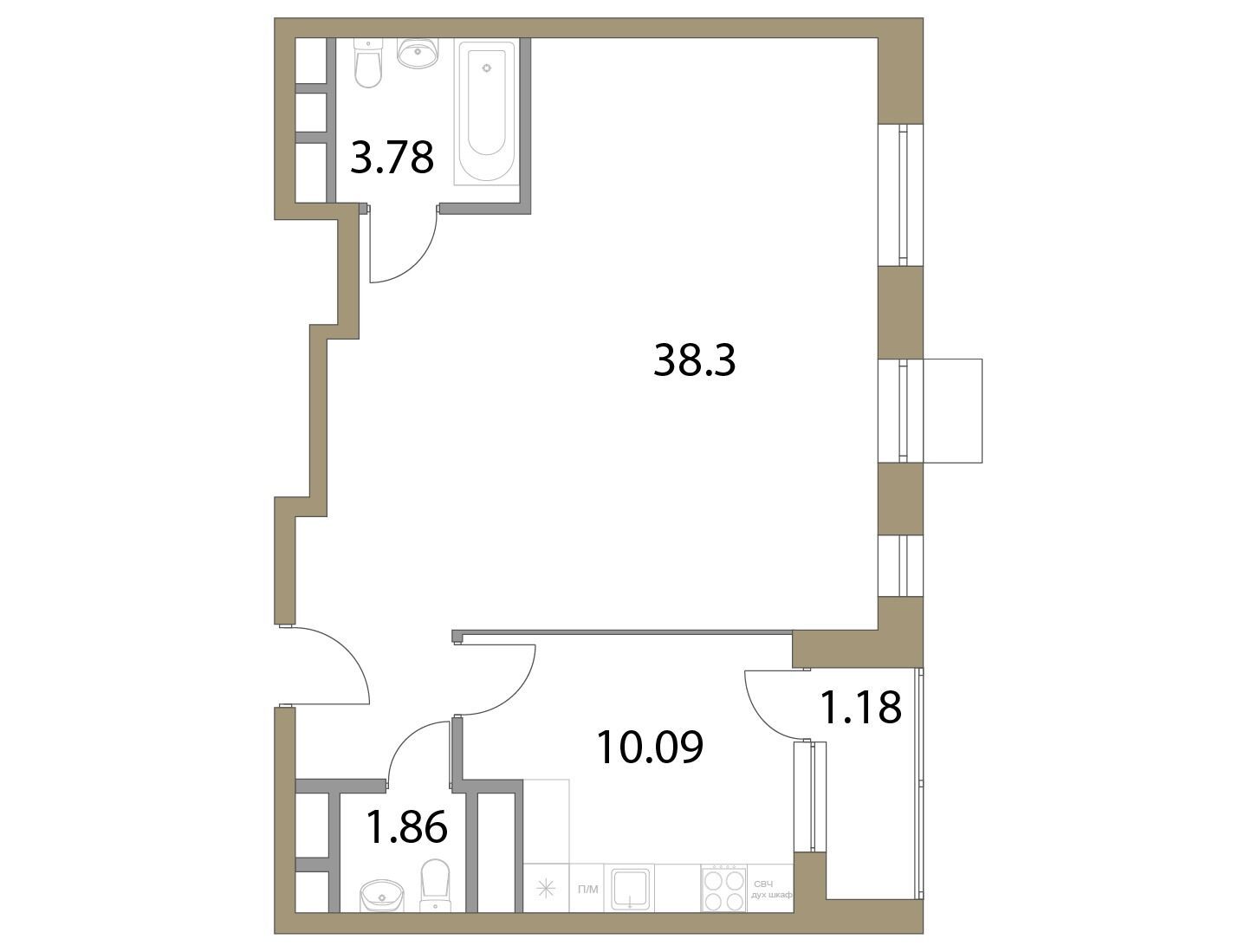 2-комнатная, 56.50 м²