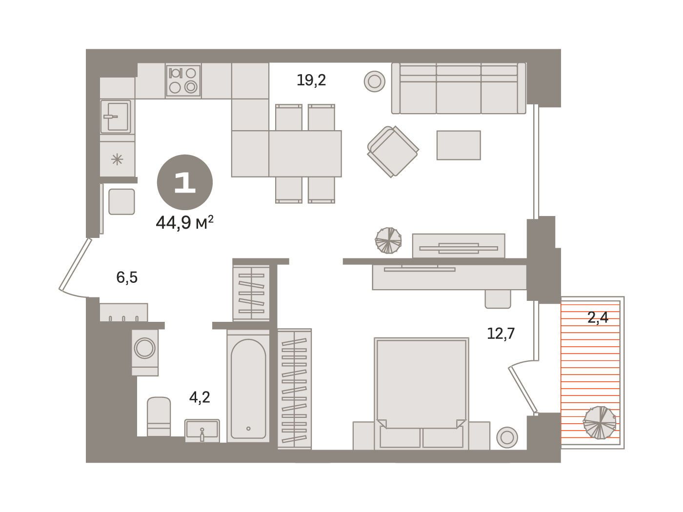 1-комнатная квартира, 42.50 м², 13 из 17 эт.