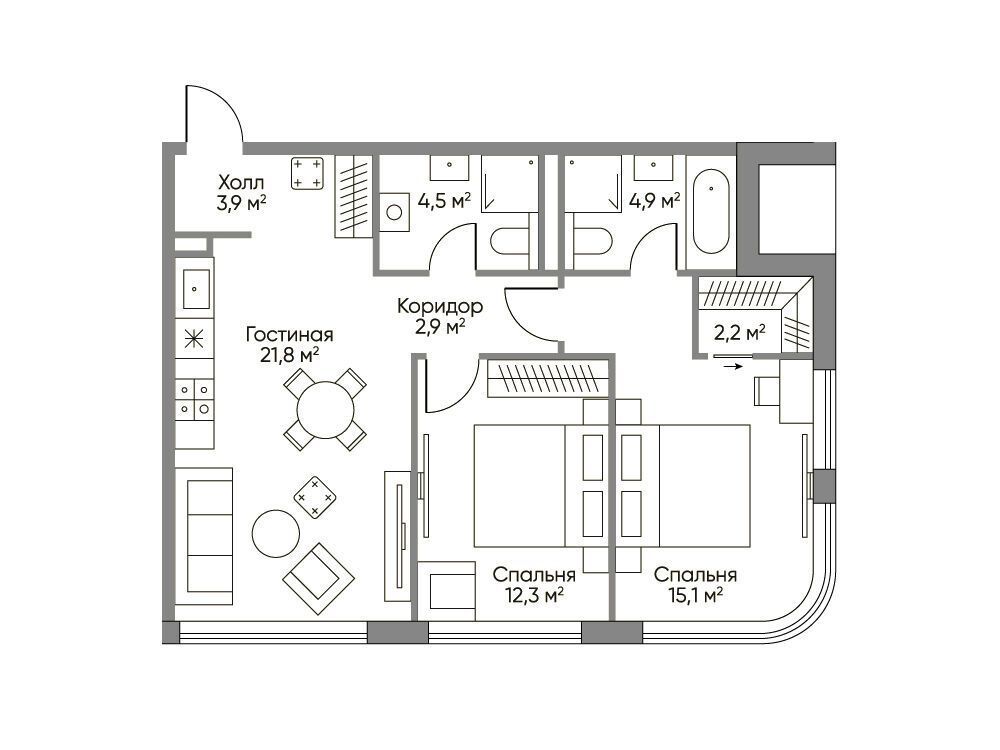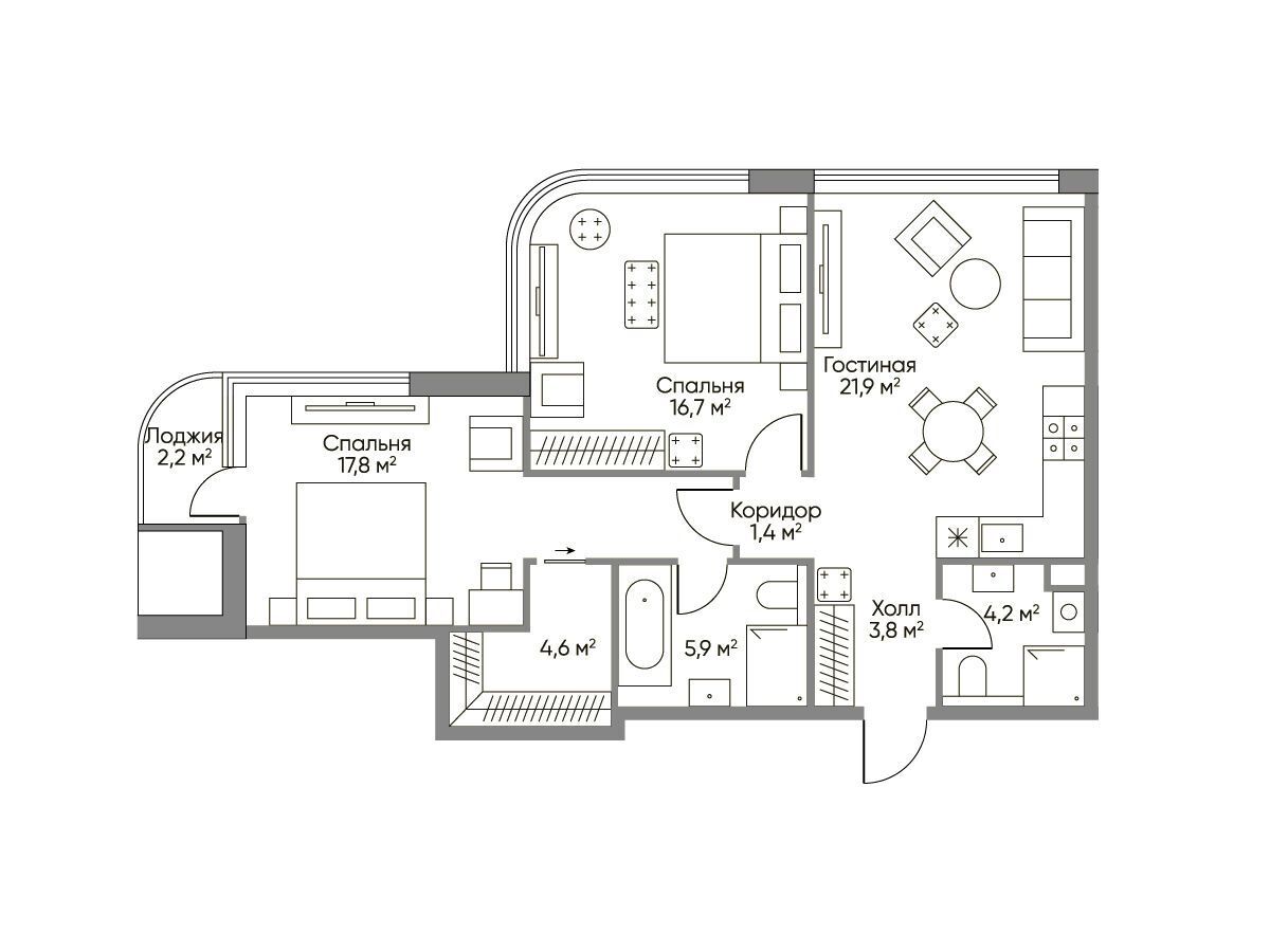 2-комнатная квартира, 76.30 м², 26 из 29 эт.