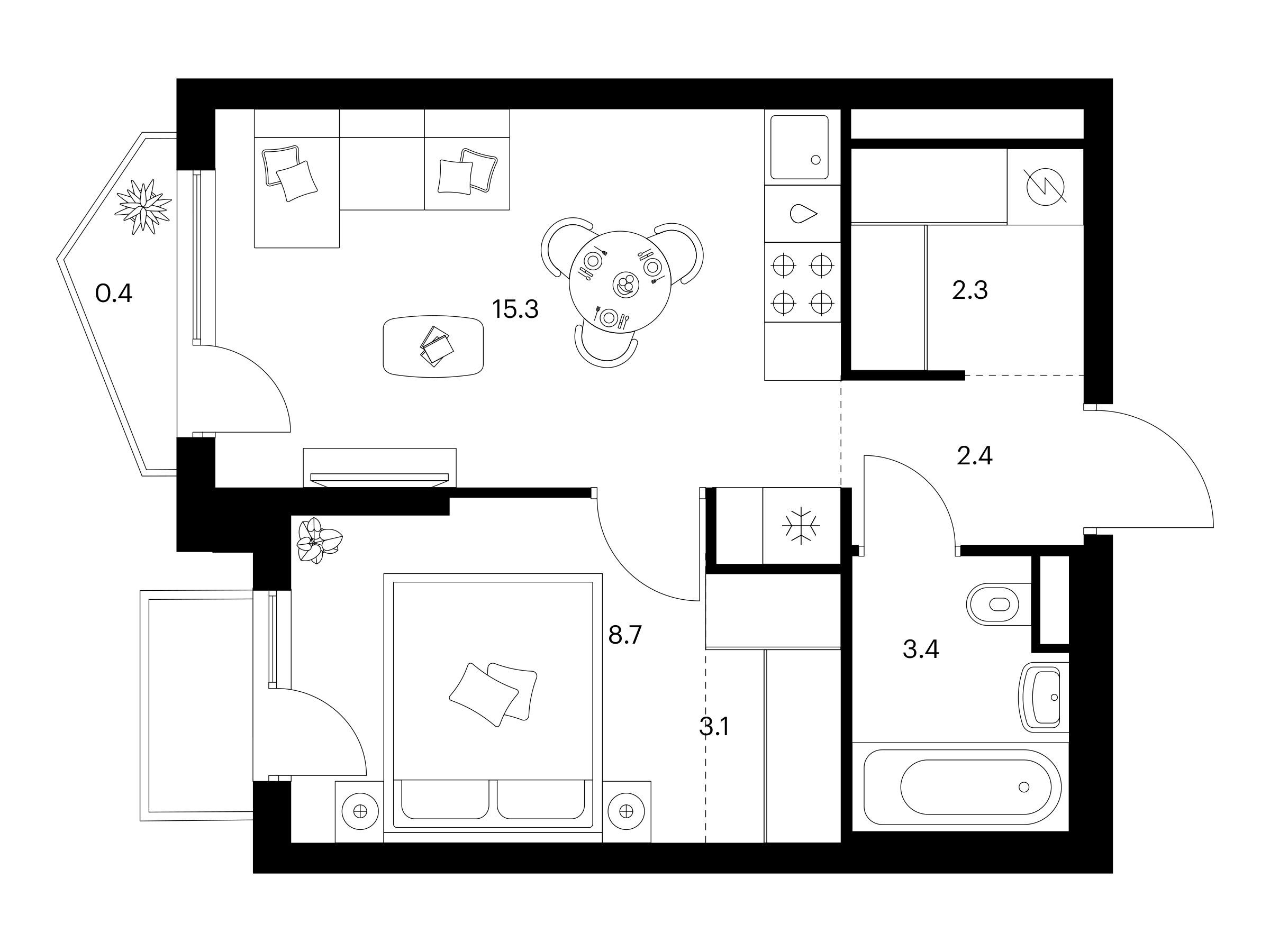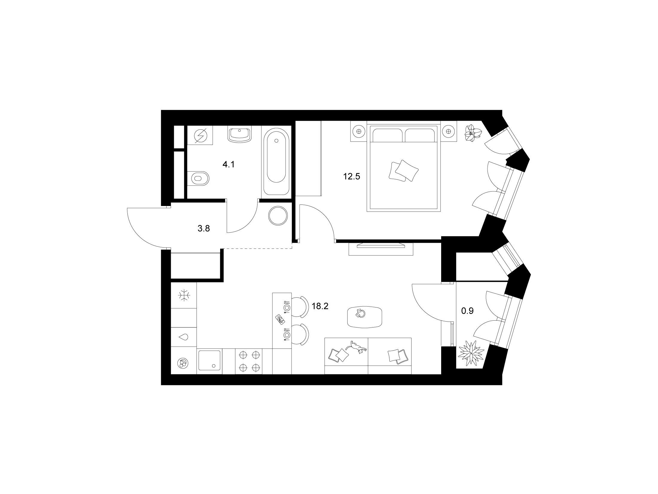 1-комнатная, 35.90 м²