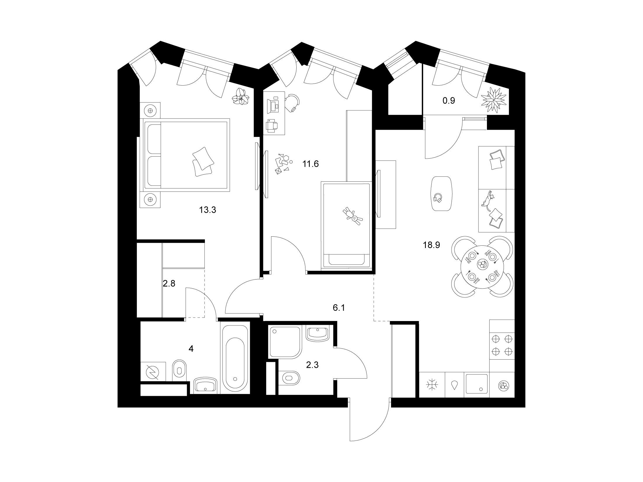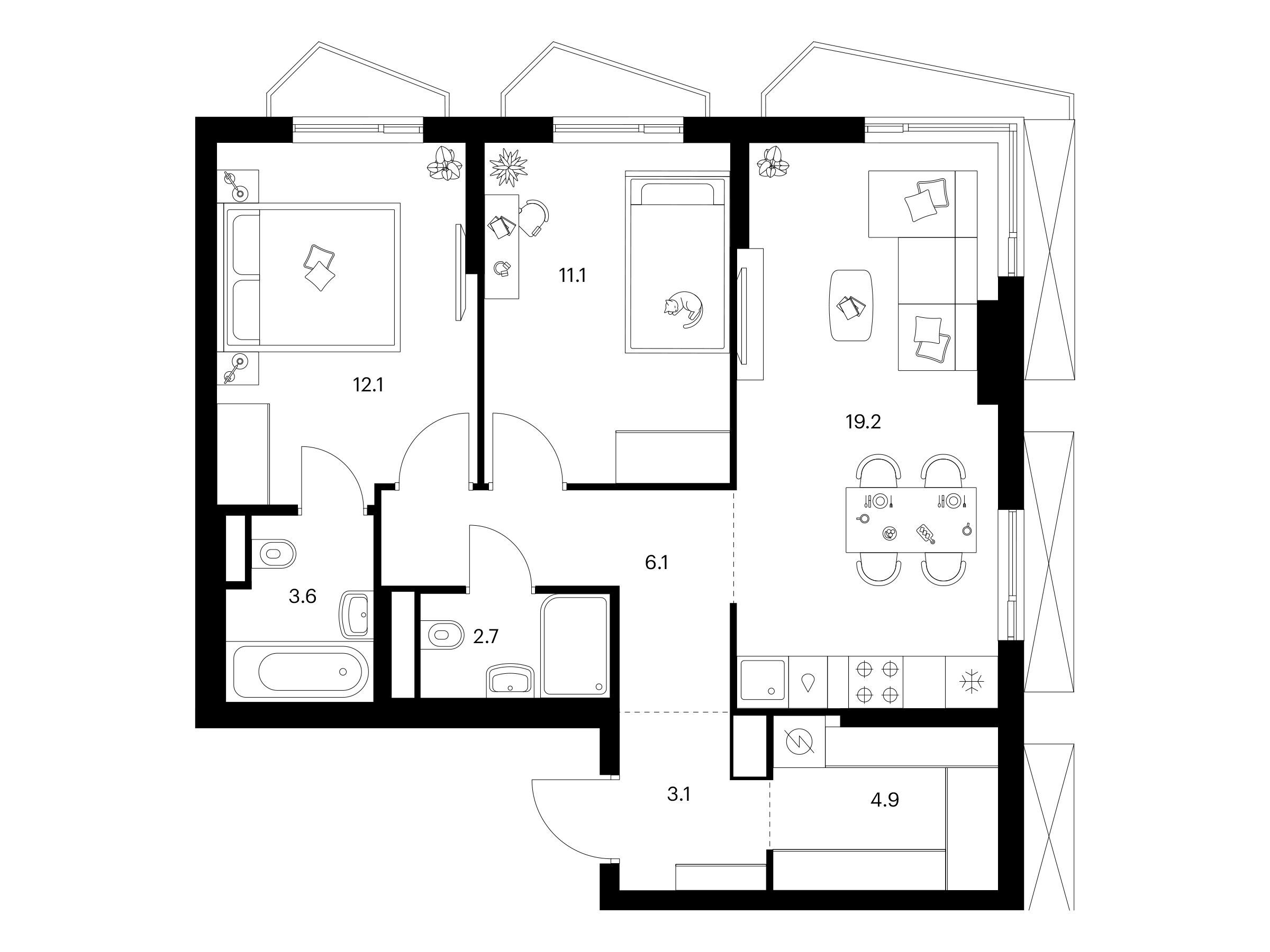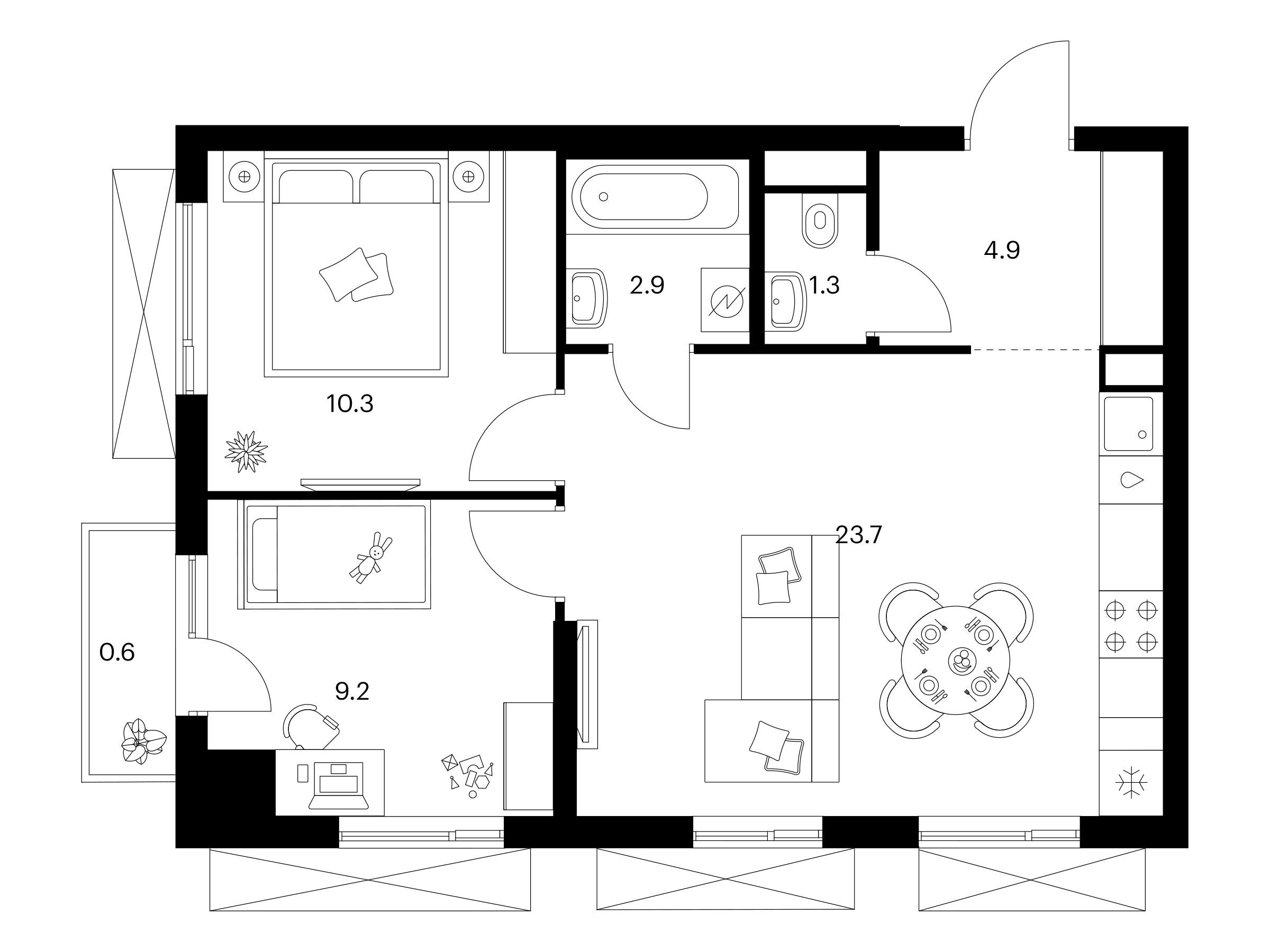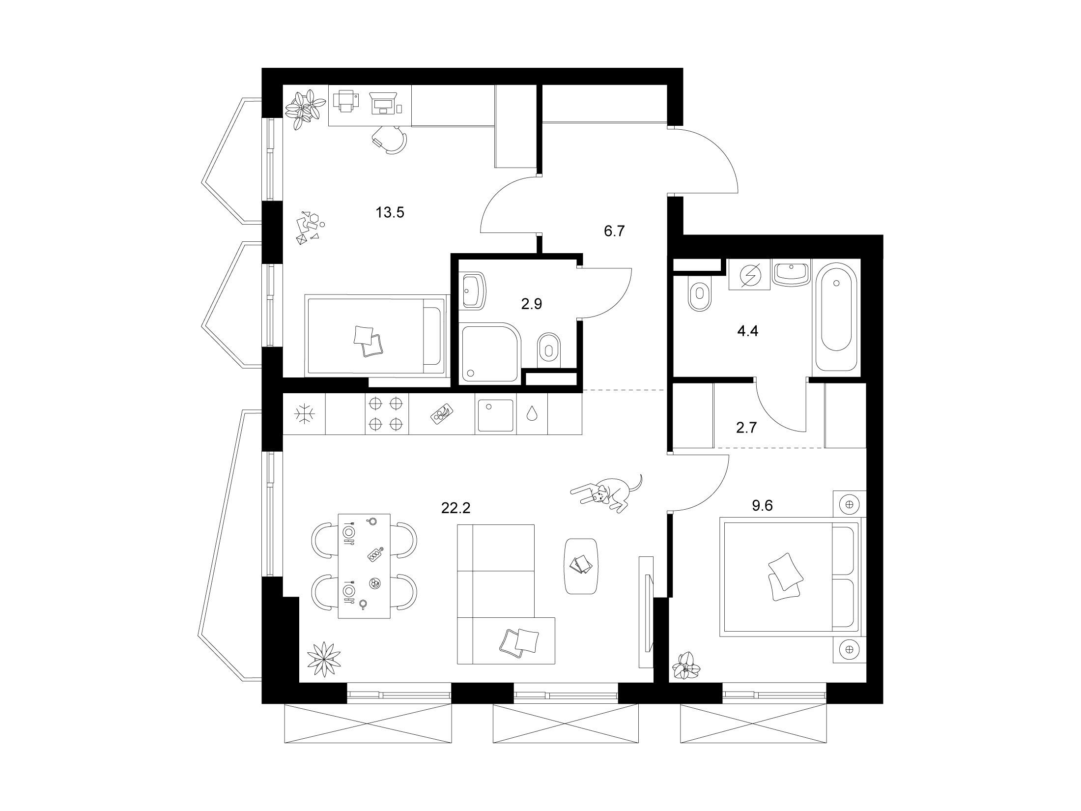 2-комнатная квартира, 57.50 м², 22 из 24 эт.
