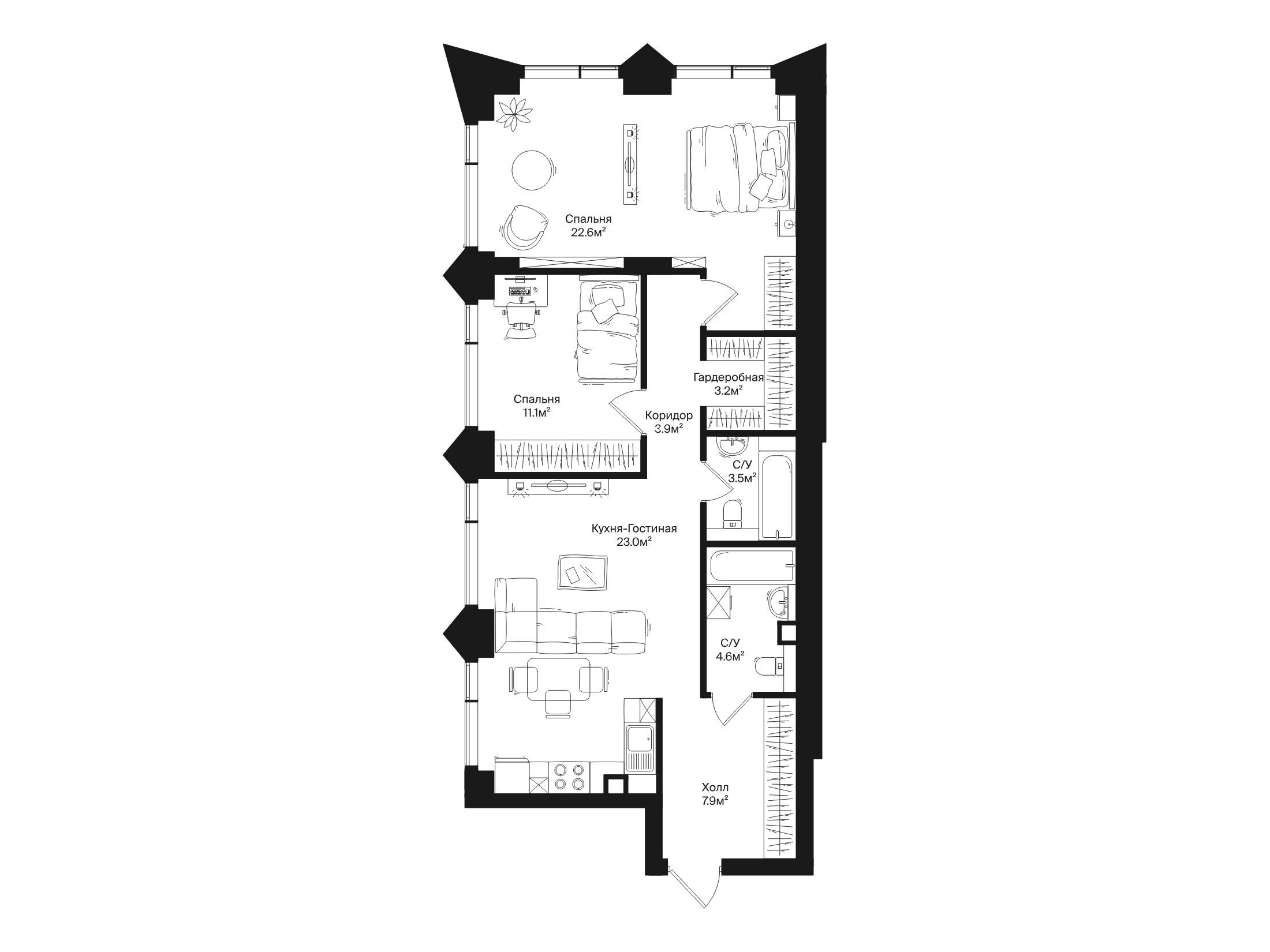 2-комнатная, 79.80 м²
