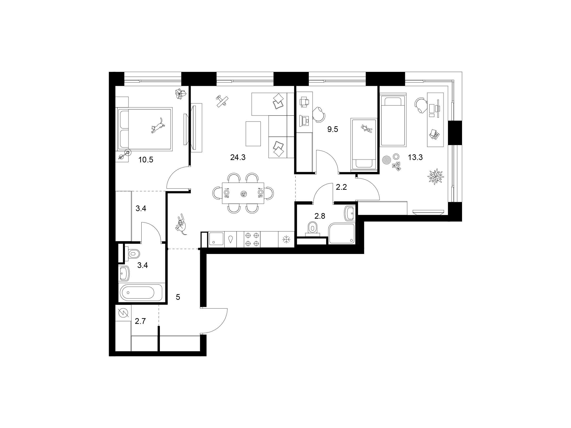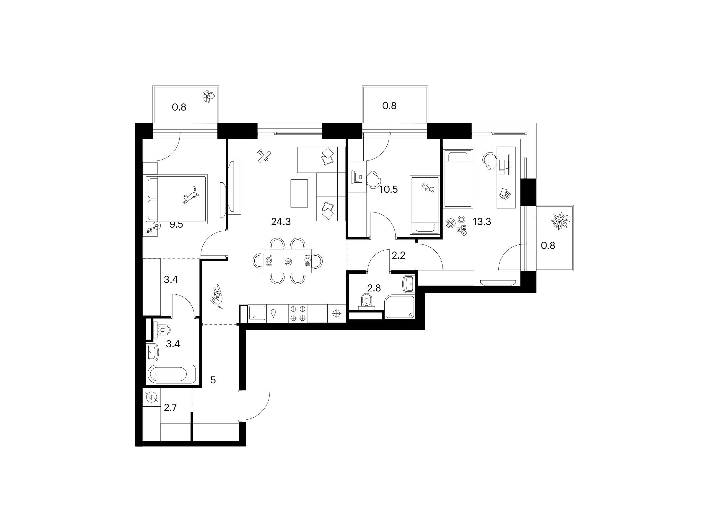3-комнатная, 79.50 м²