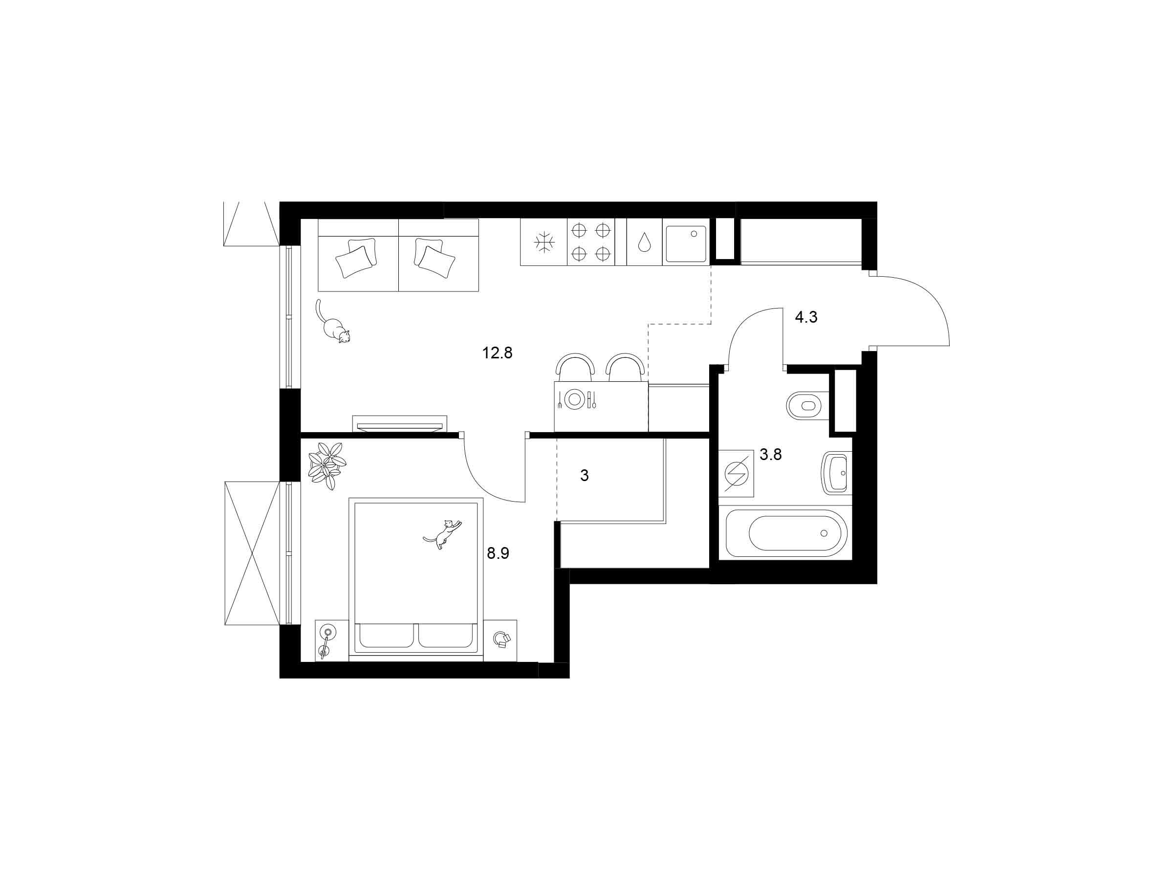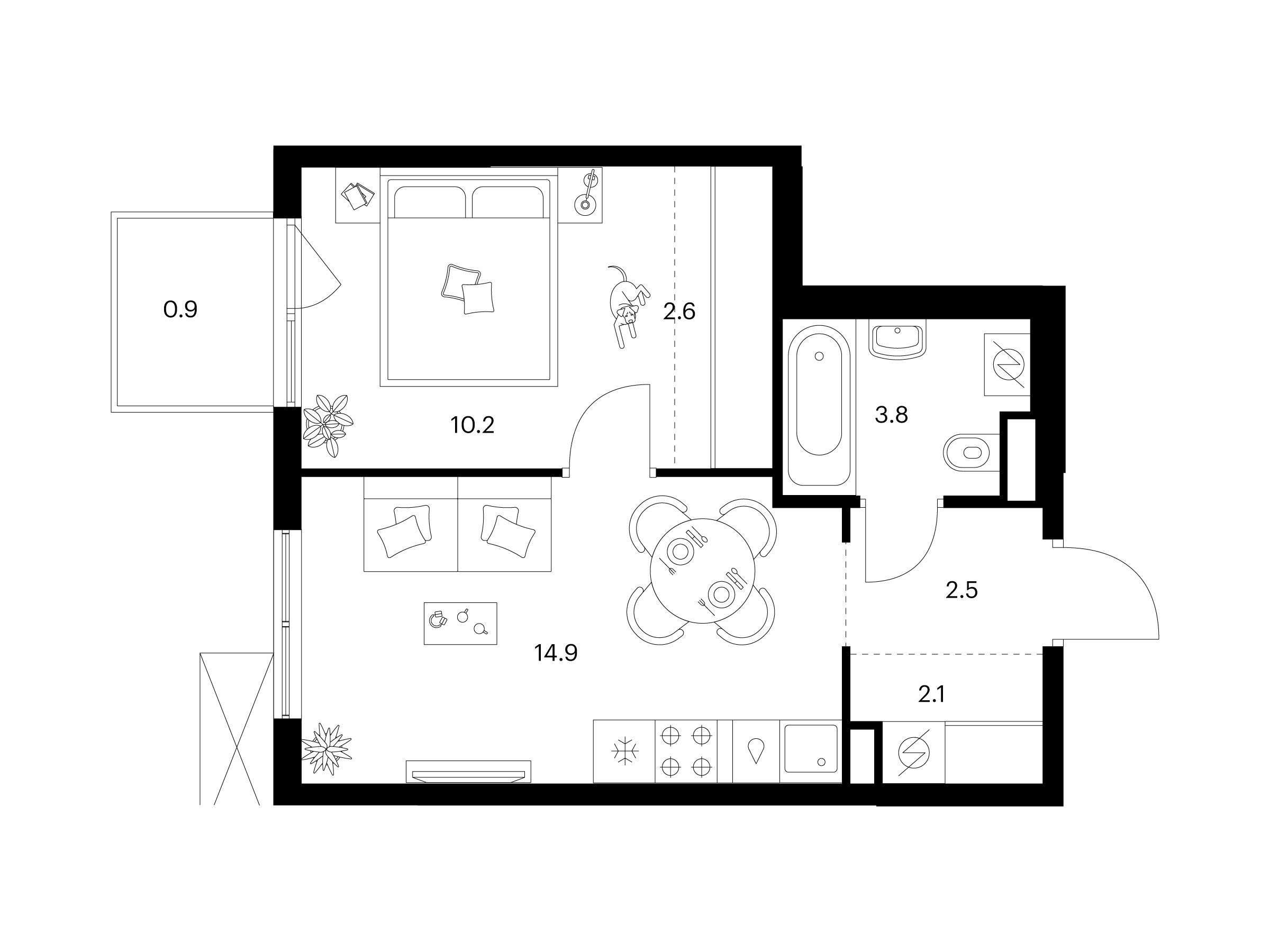 1-комнатная, 37.00 м²