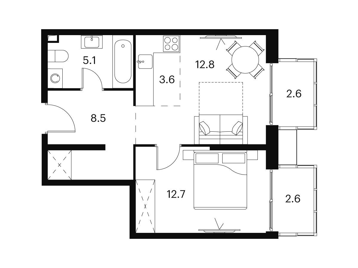 1-комнатная квартира, 47.90 м², 9 из 23 эт.
