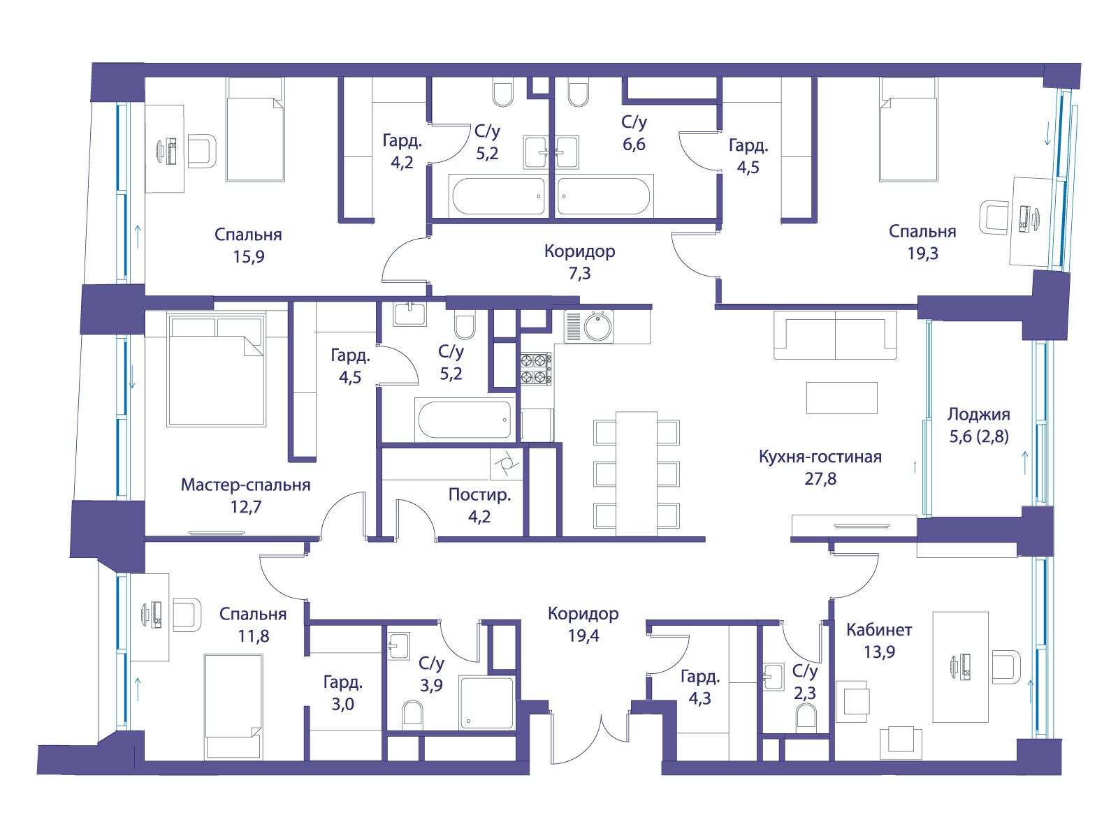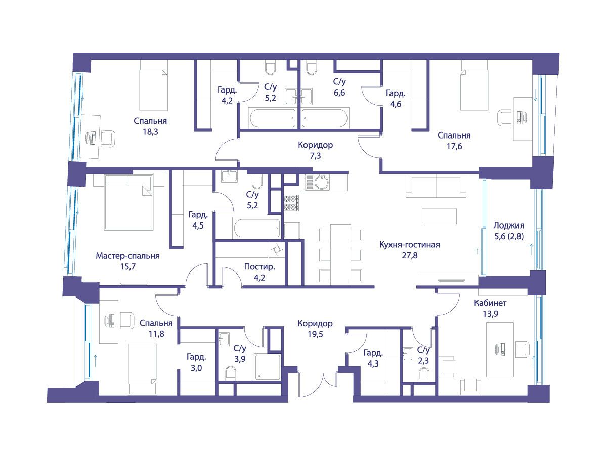 5-комнатная, 219.00 м²