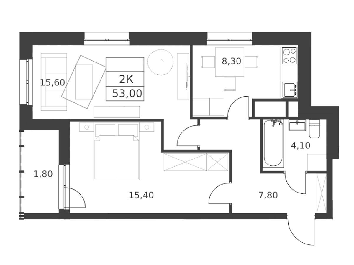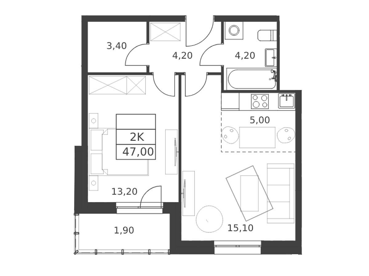 2-комнатная квартира, 47.00 м², 2 из 16 эт.