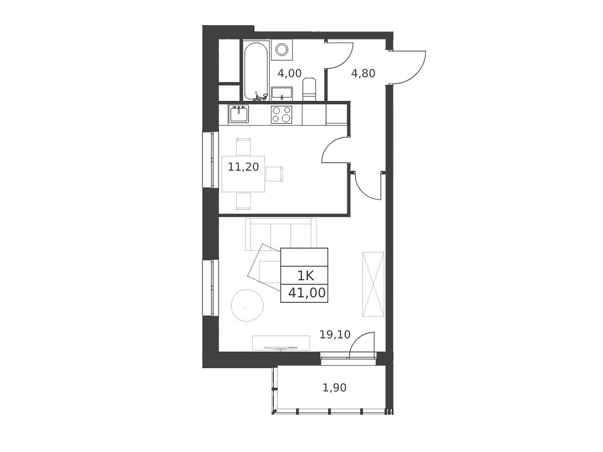 1-комнатная, 41.10 м²