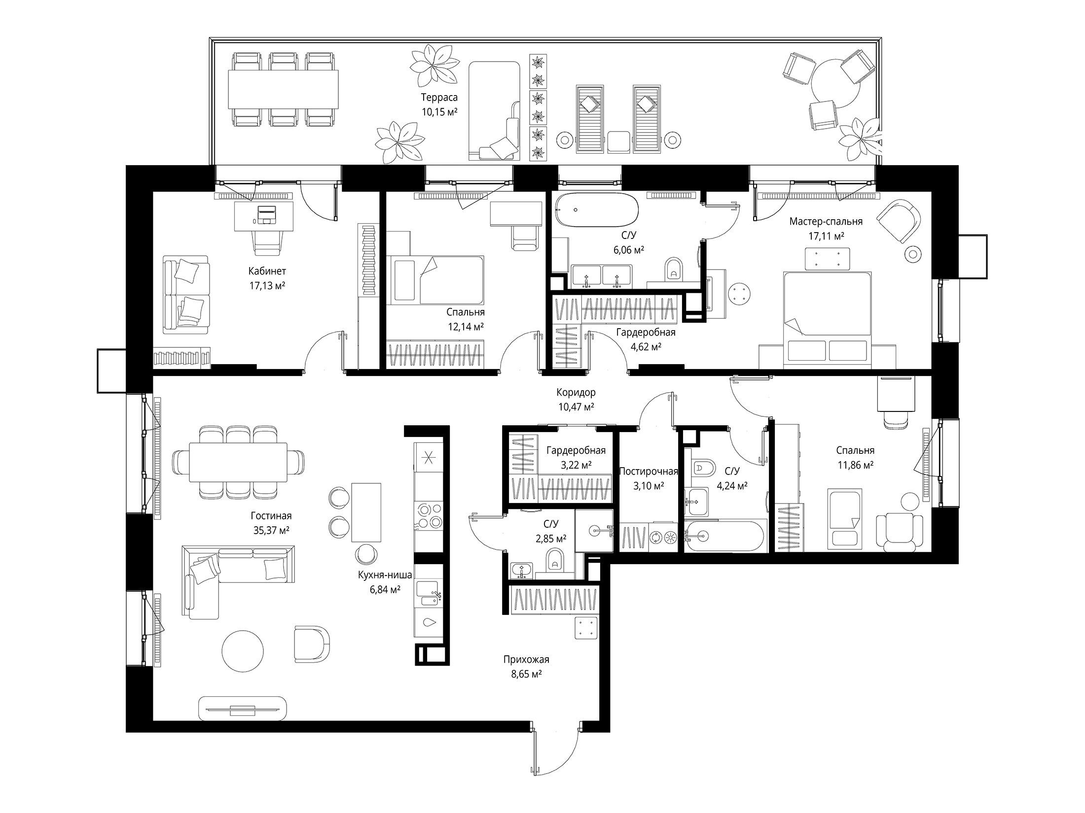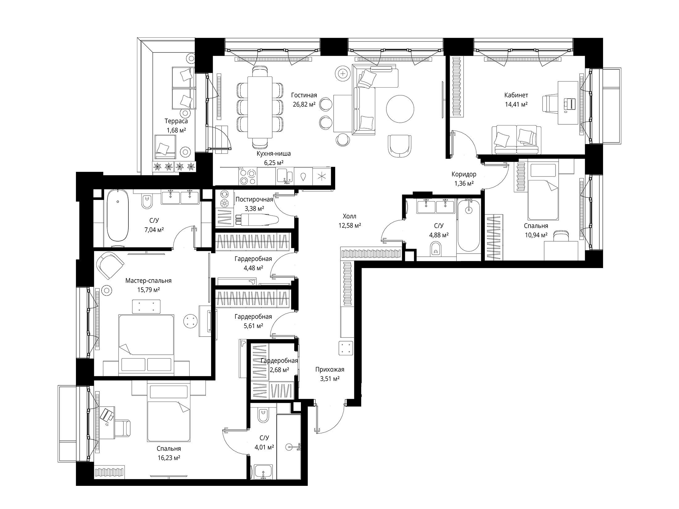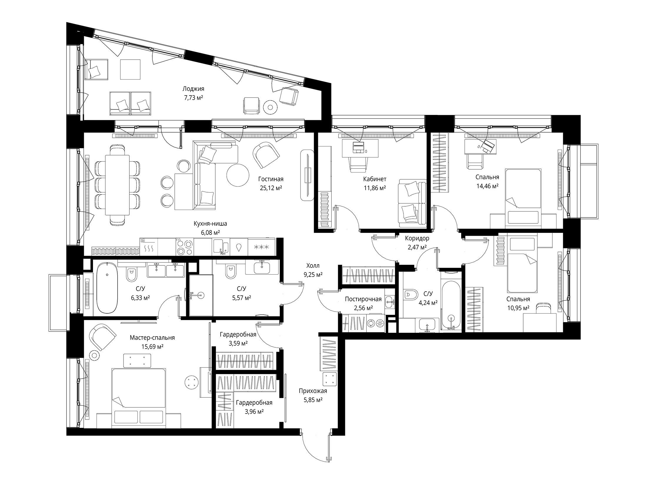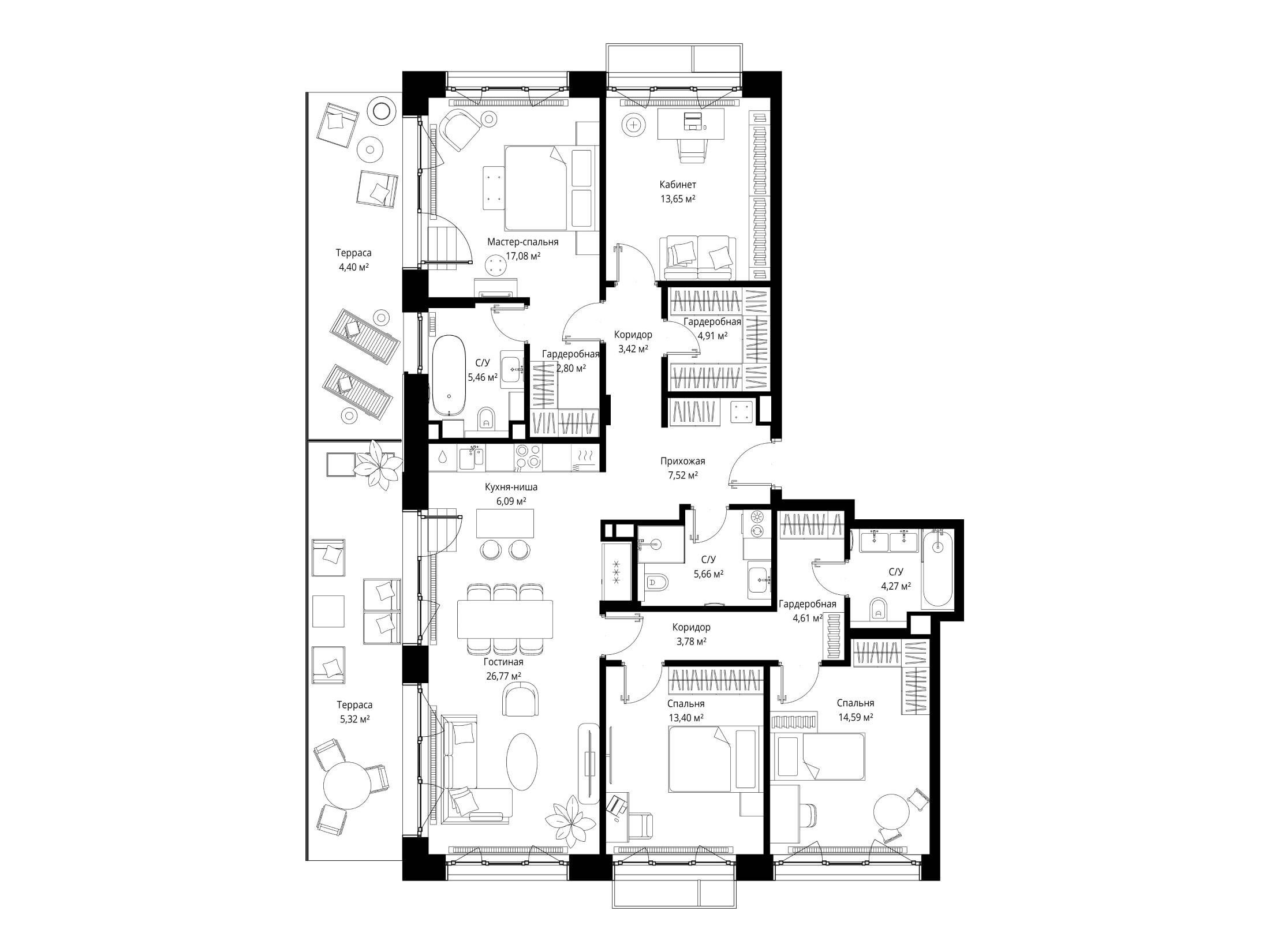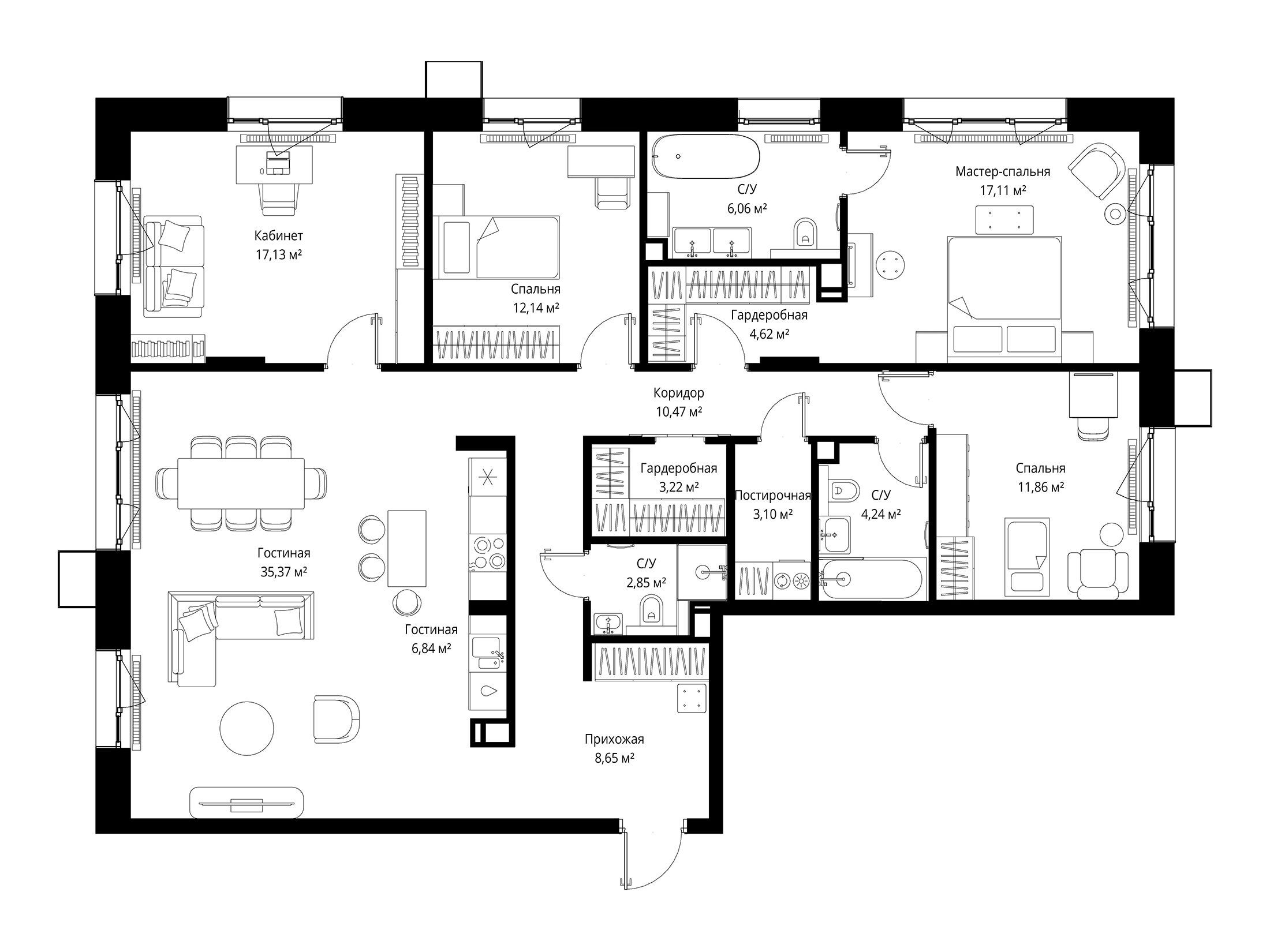 4-комнатная квартира, 169.66 м², 6 из 10 эт.