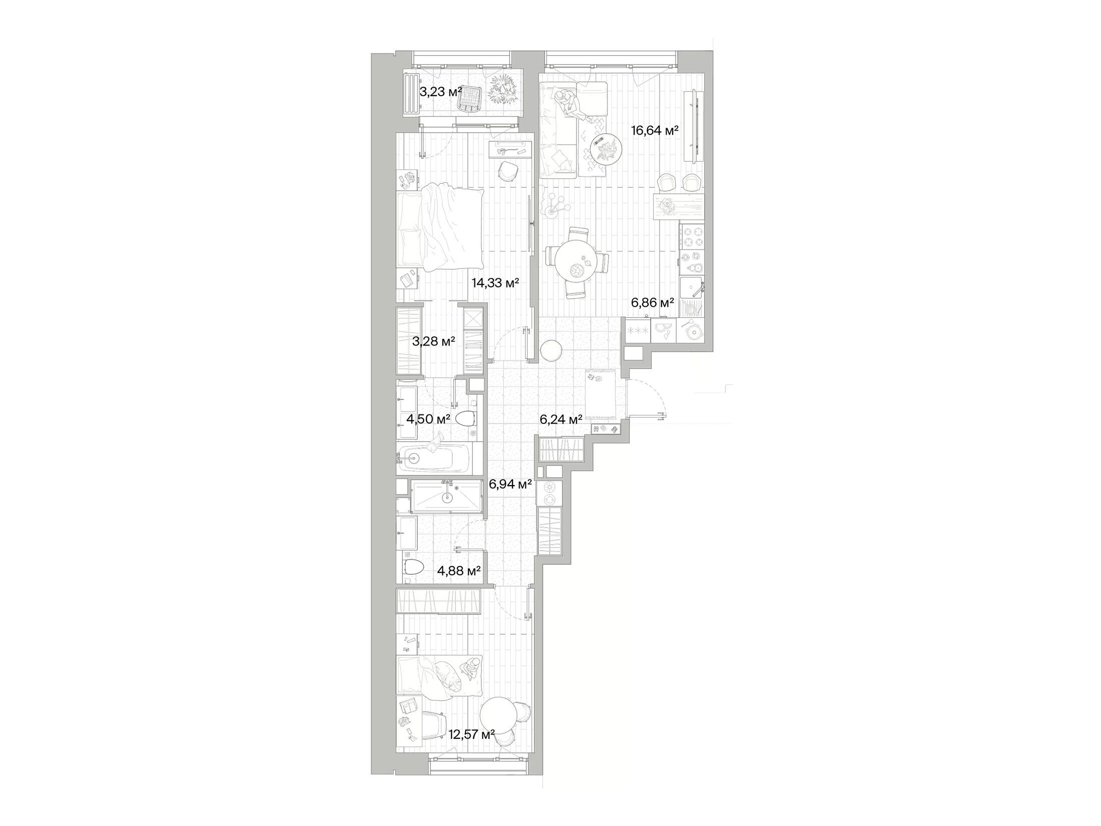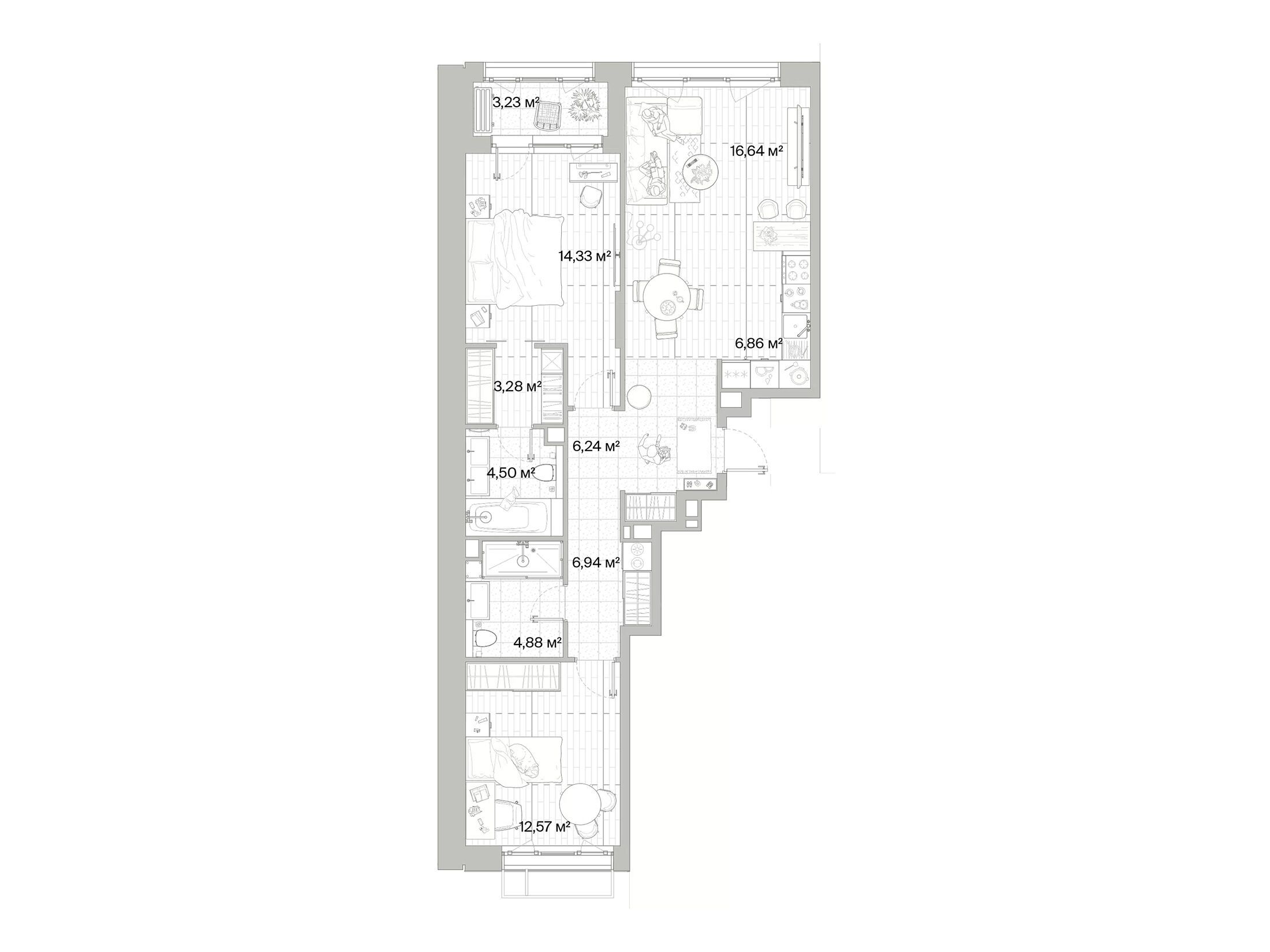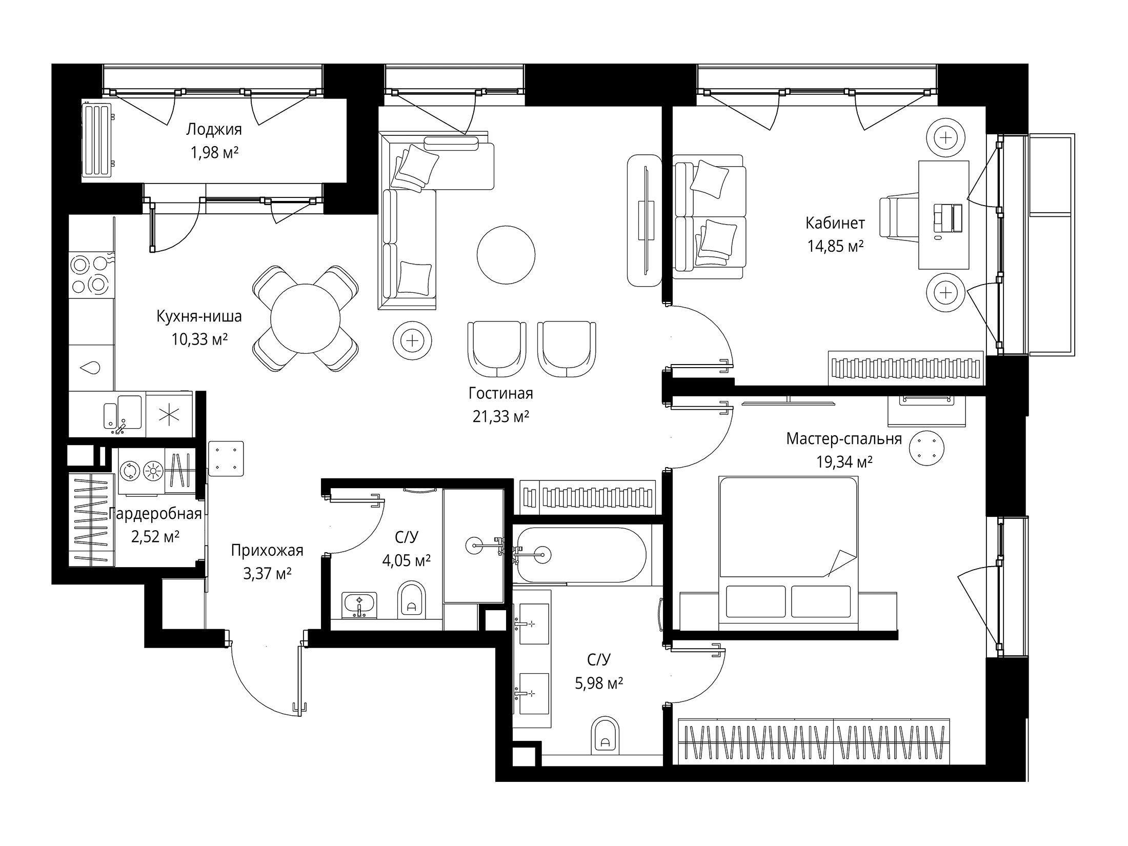 2-комнатная квартира, 64.60 м², 2 из 8 эт.