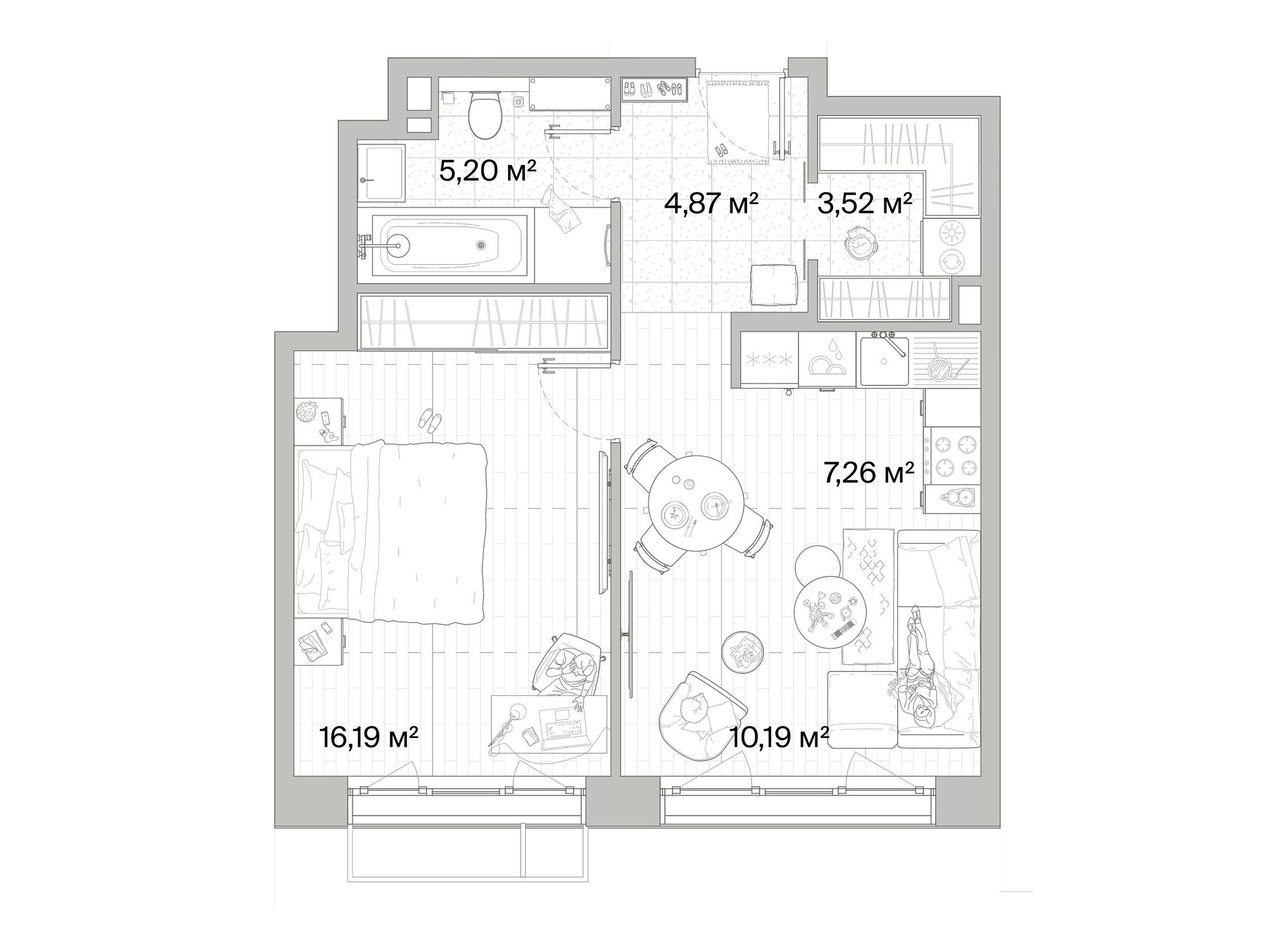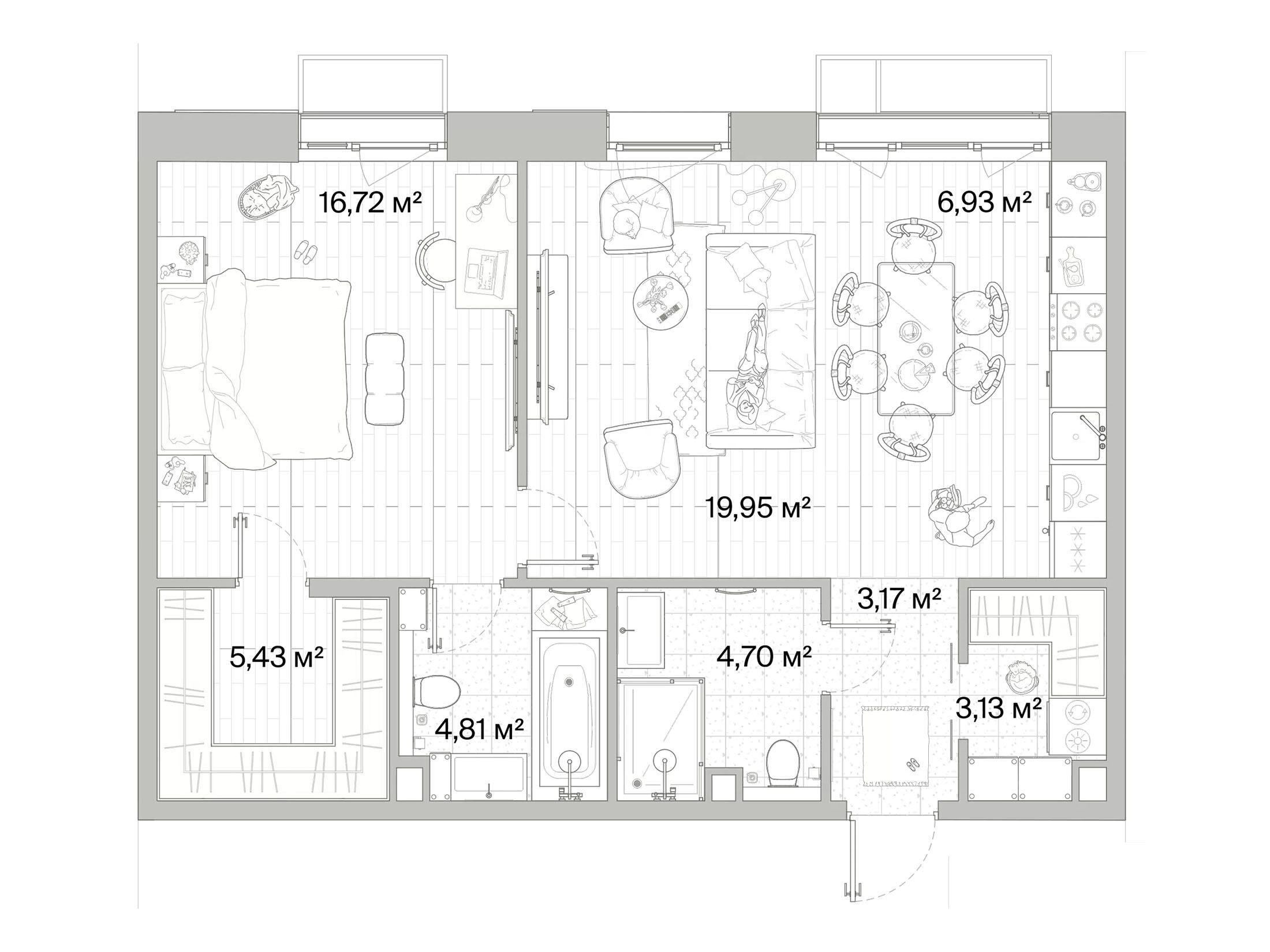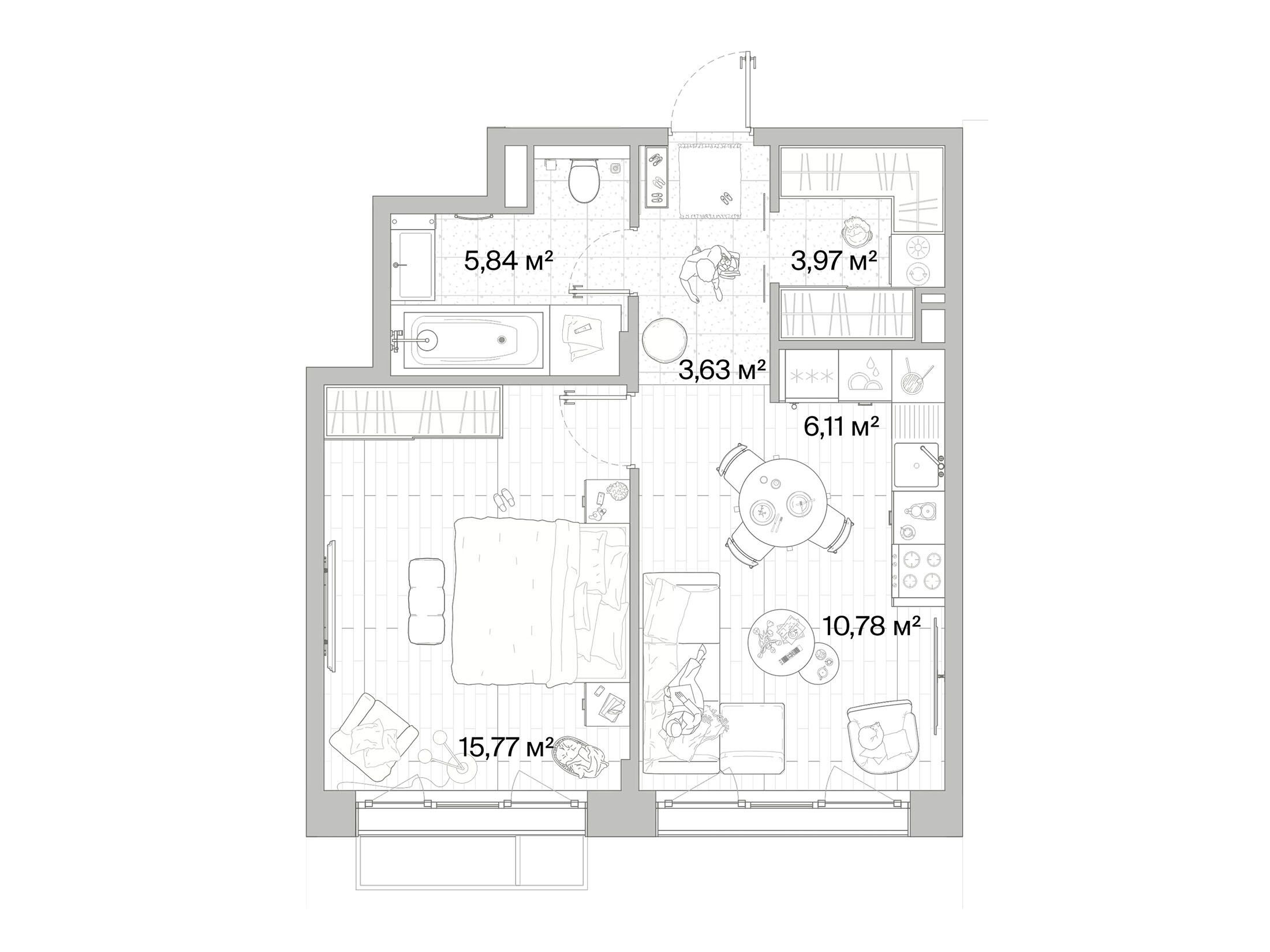 1-комнатная квартира, 64.84 м², 5 из 8 эт.