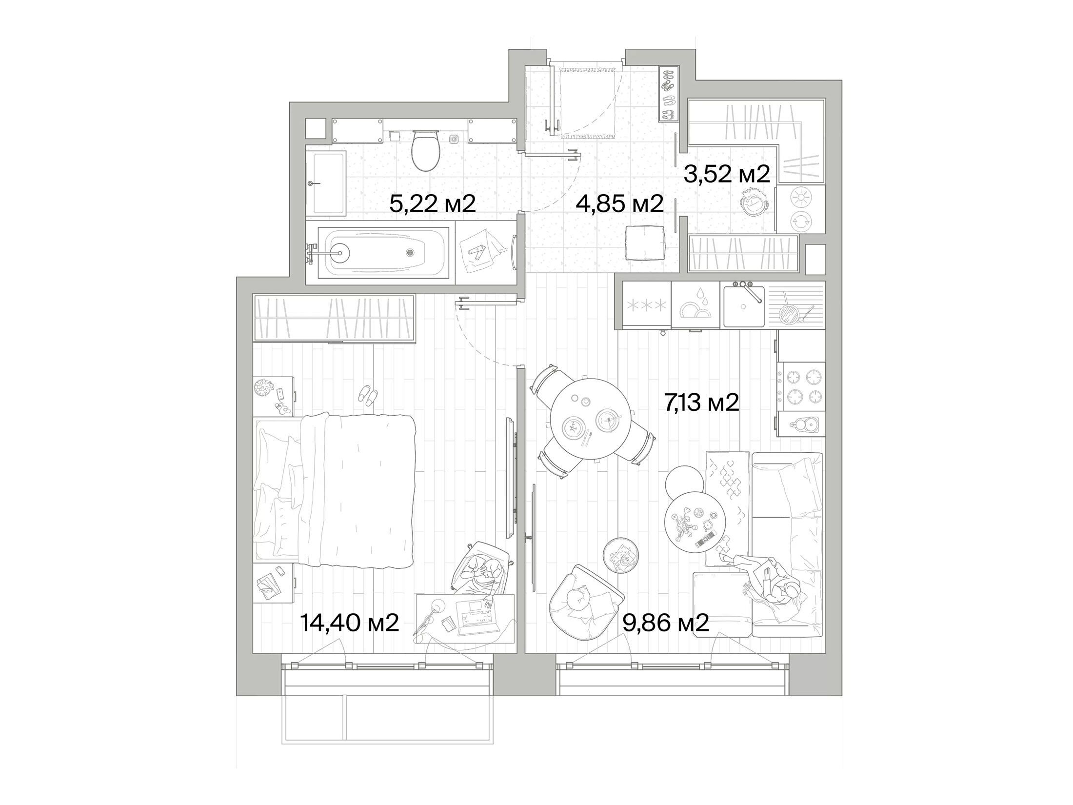 1-комнатная квартира, 61.32 м², 8 из 8 эт.