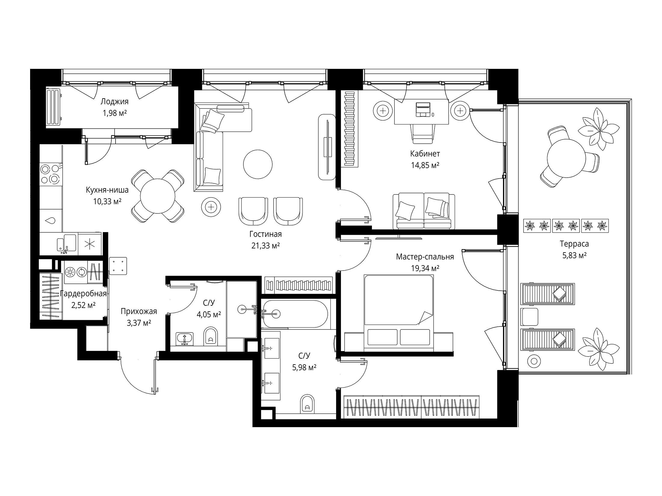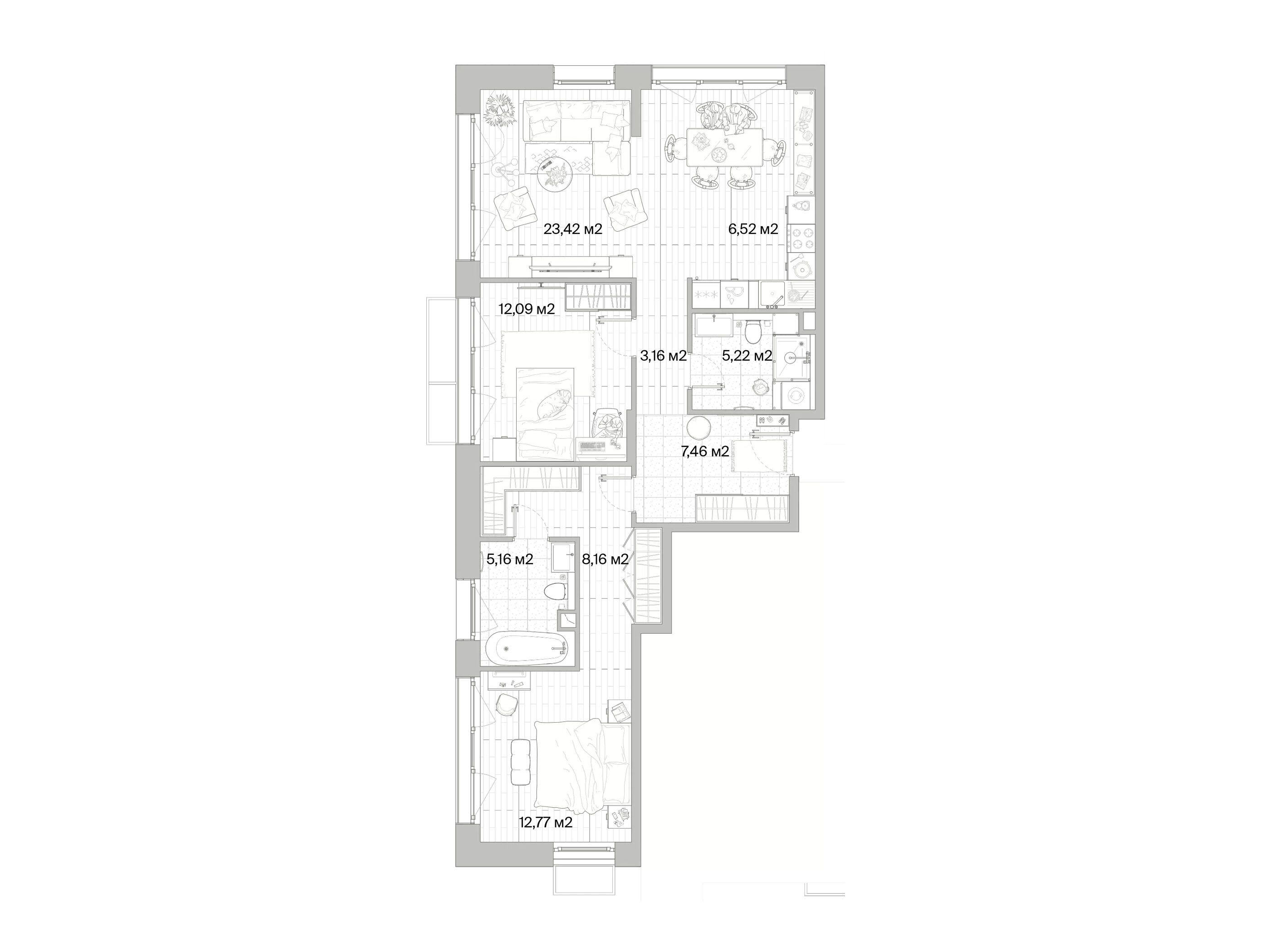 2-комнатная квартира, 79.36 м², 7 из 8 эт.