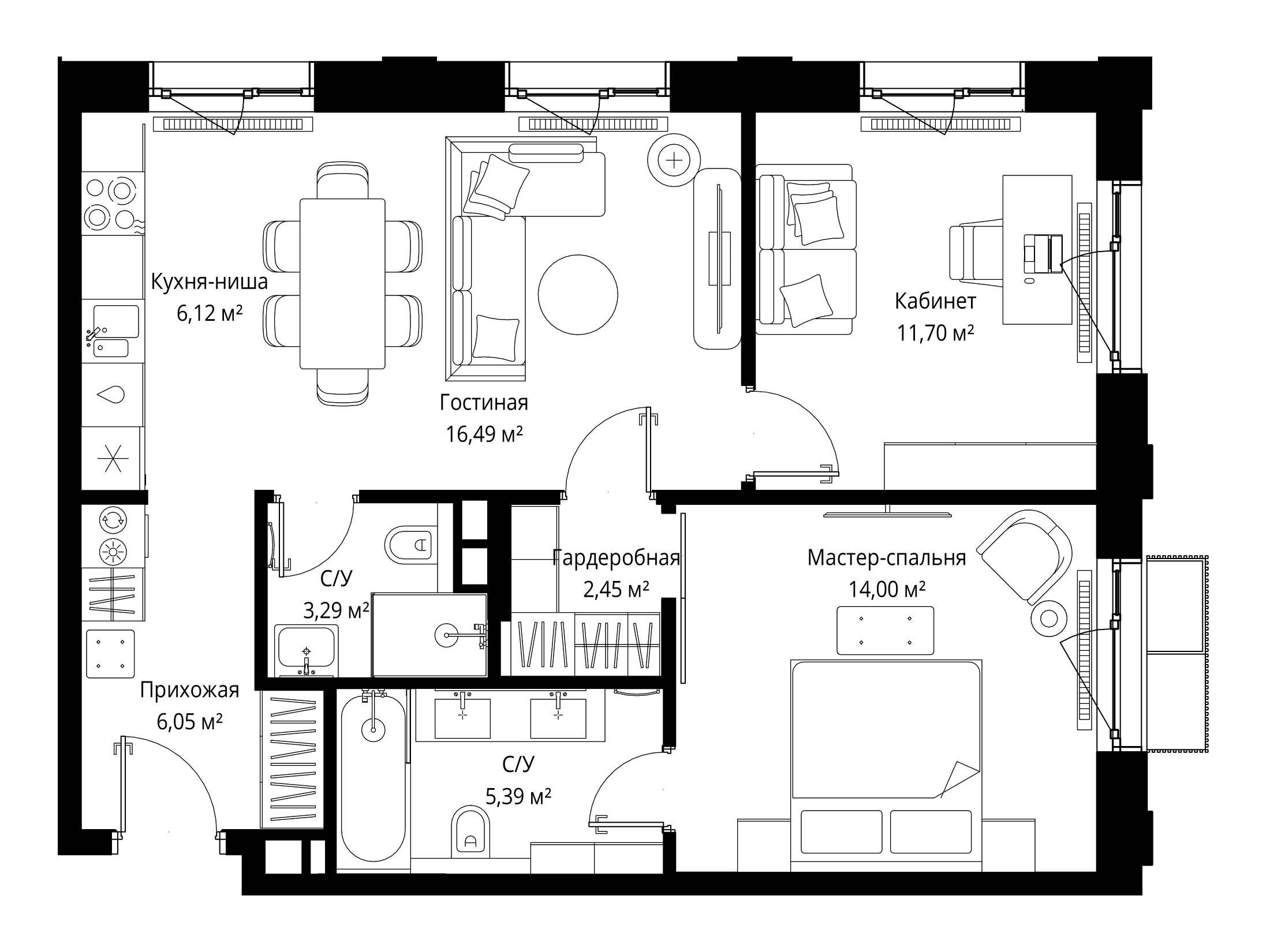 2-комнатная квартира, 84.03 м², 5 из 10 эт.