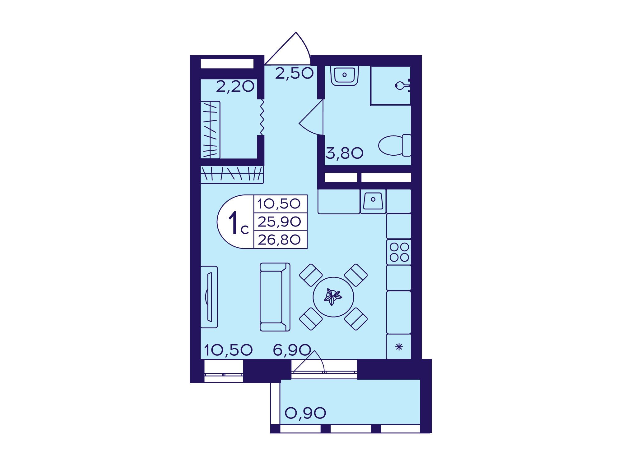 Студия, 25.10 м²